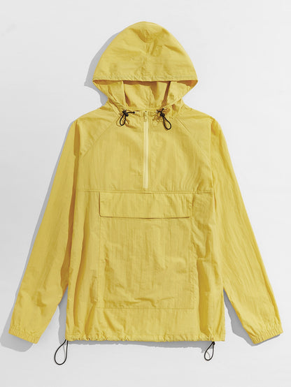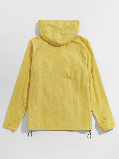 Men Zip Half Placket Hooded Jacket