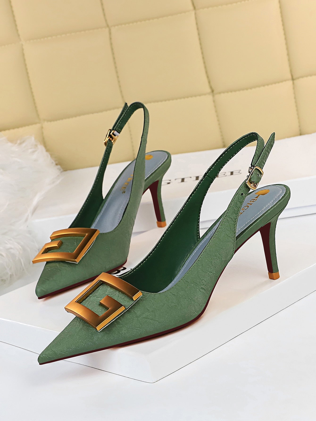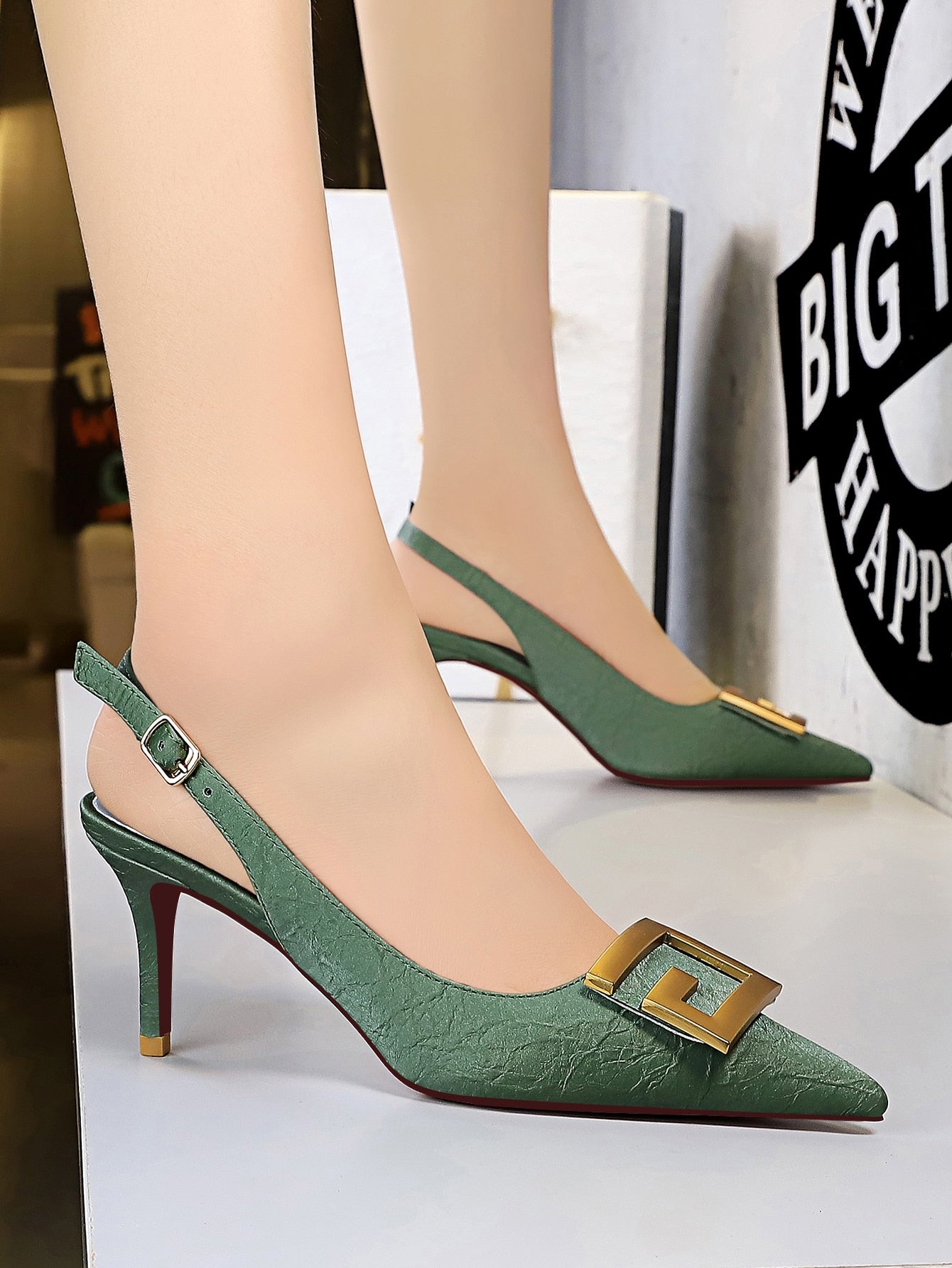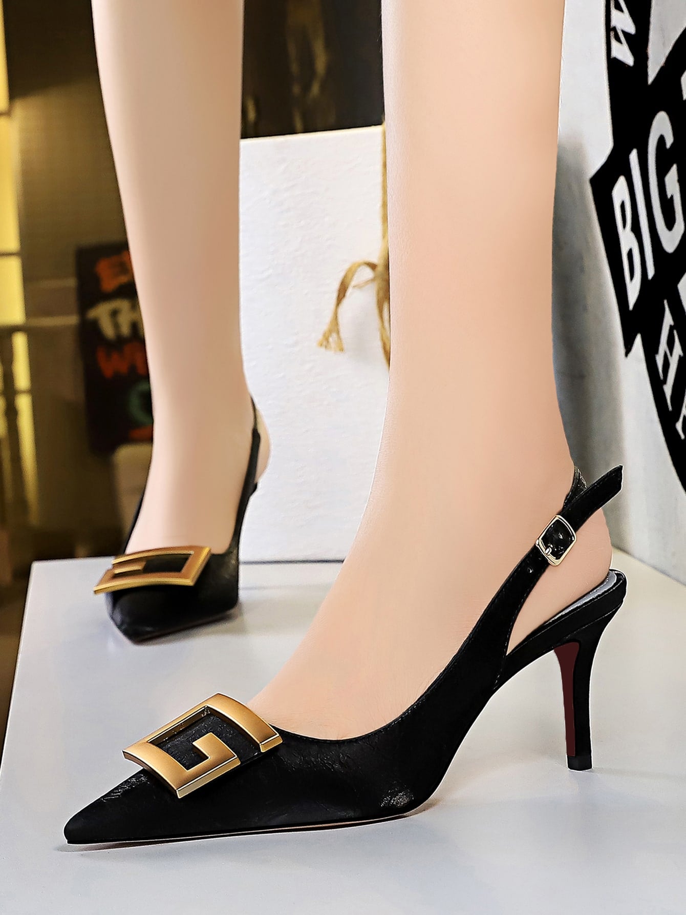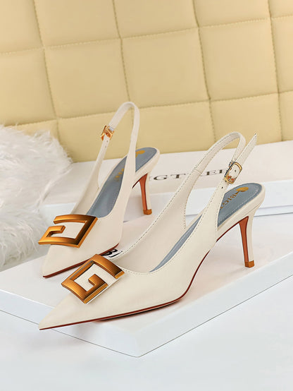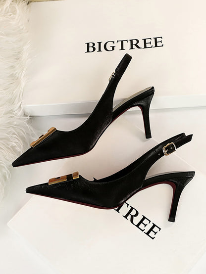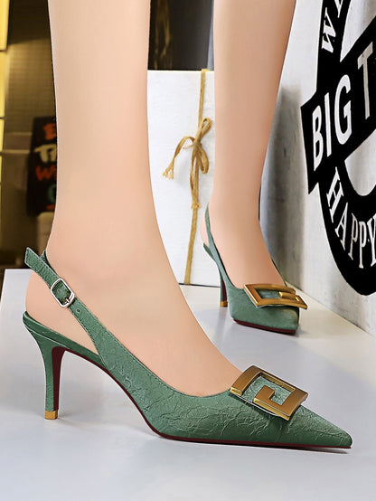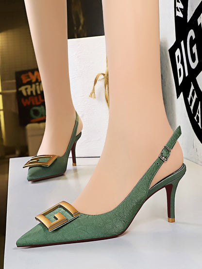 Metal Decor Stiletto Slingback Pumps