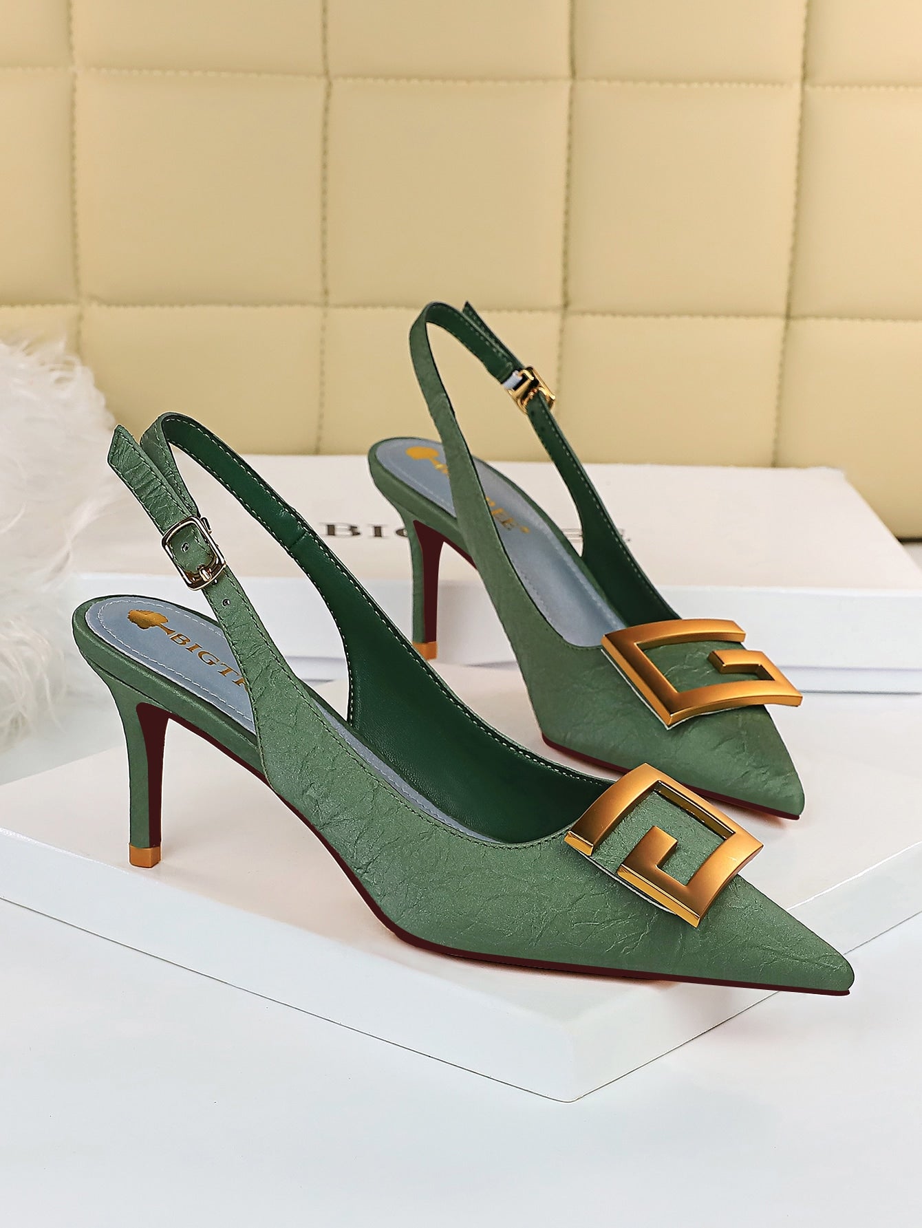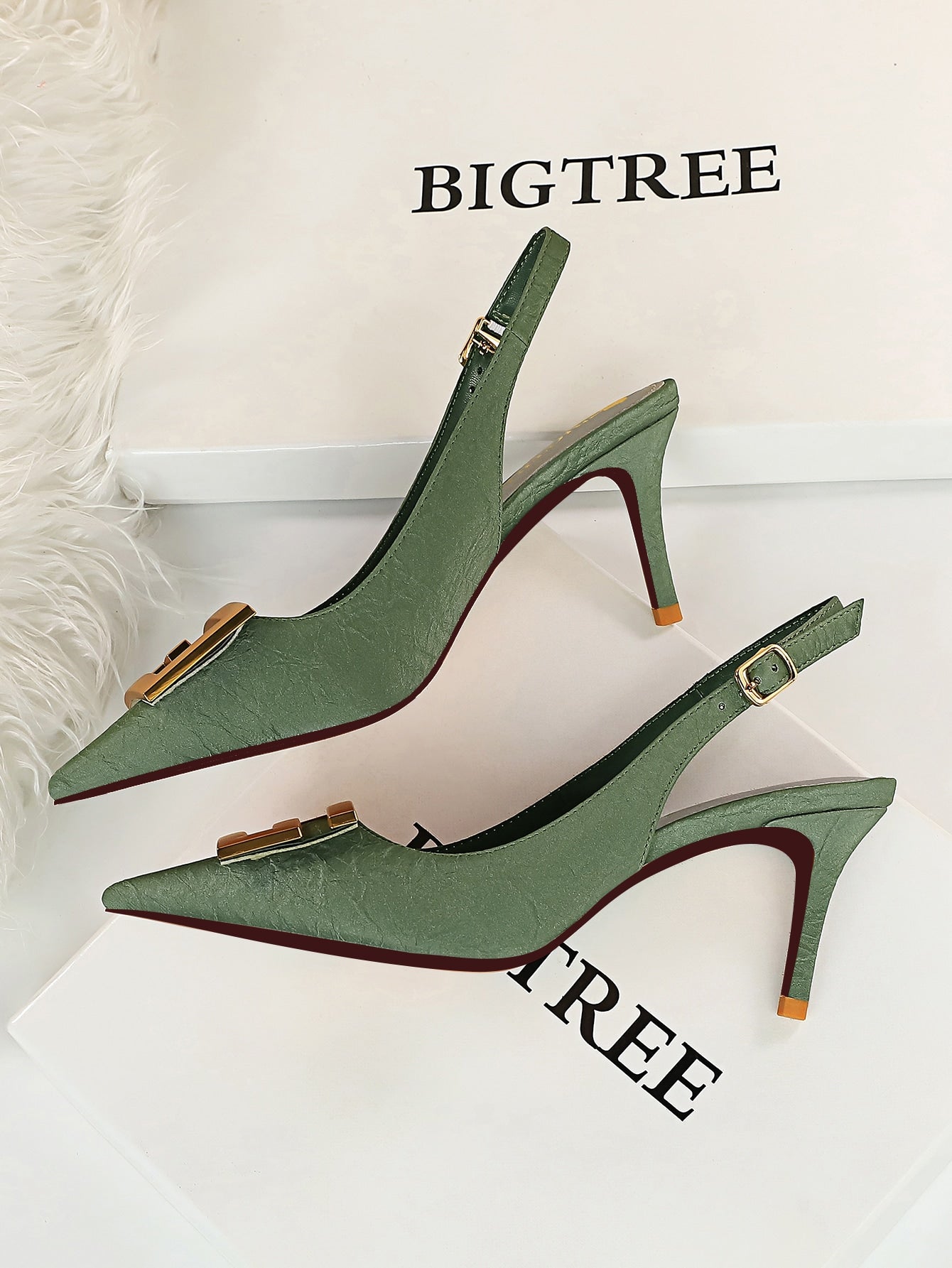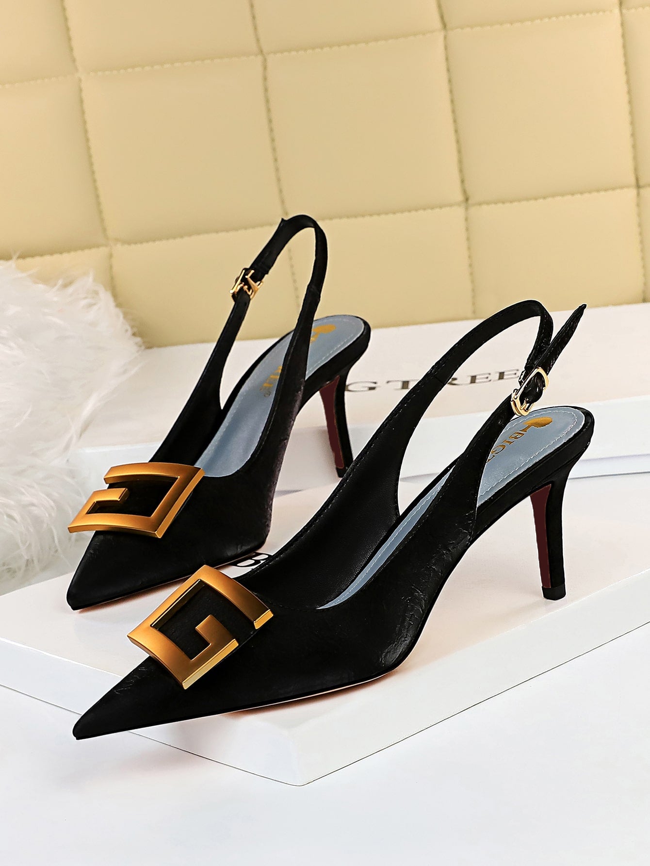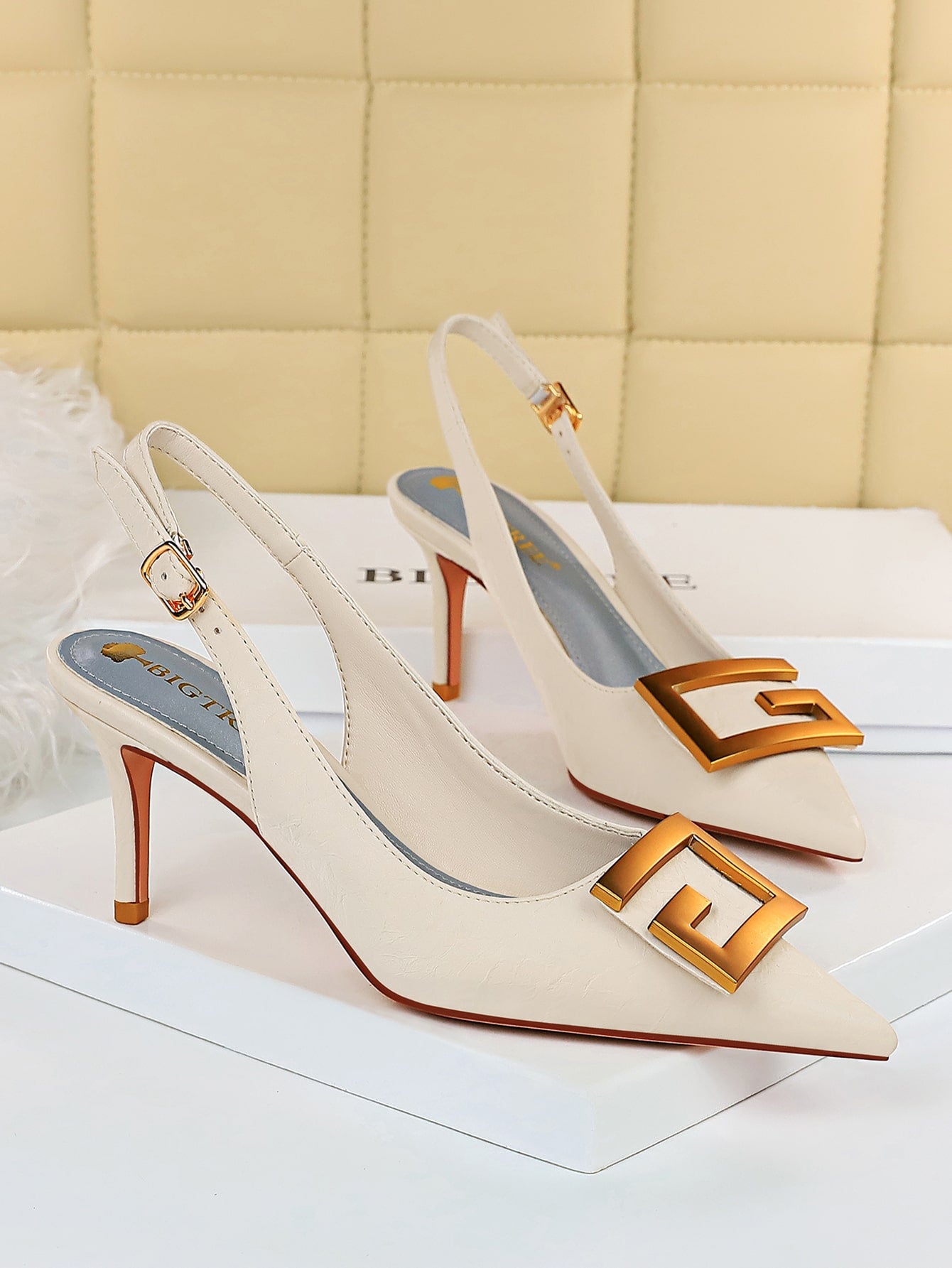 Metal Decor Stiletto Slingback Pumps