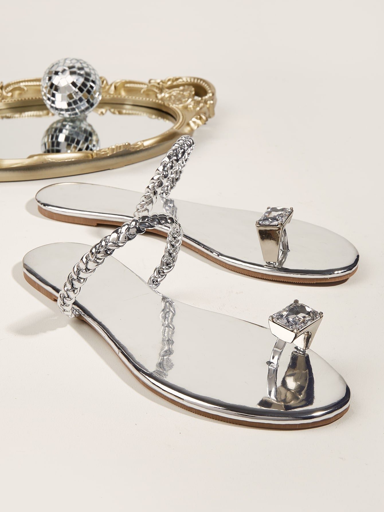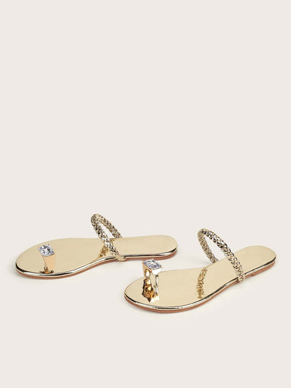 Metallic Rhinestone Decor Braided Thong Sandals