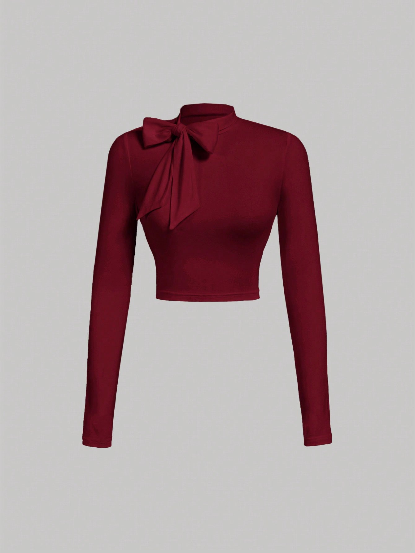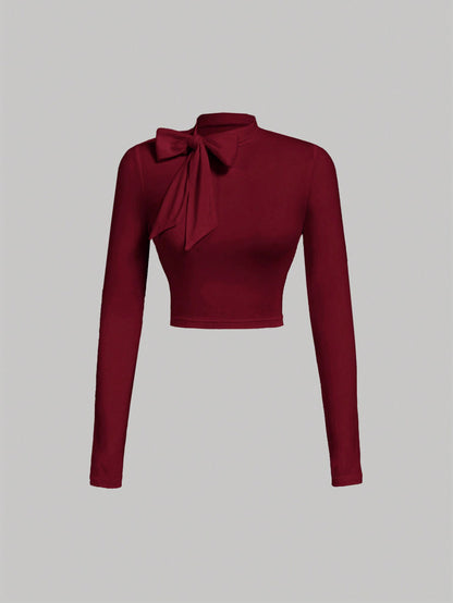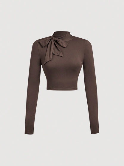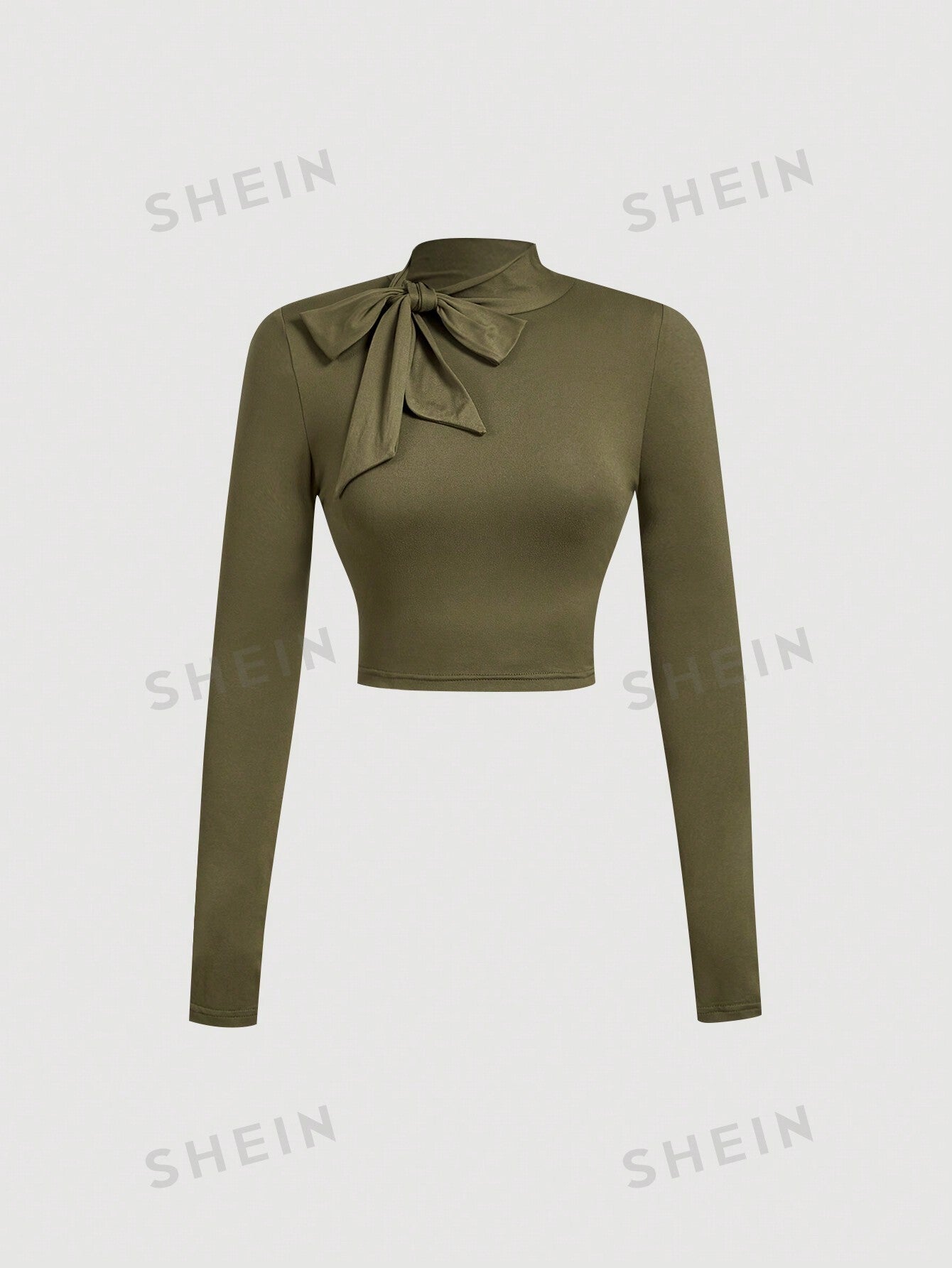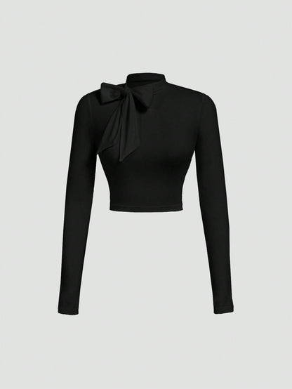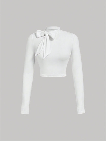 MOD Women's Spring And Autumn Casual White Bow Tie T-Shirt