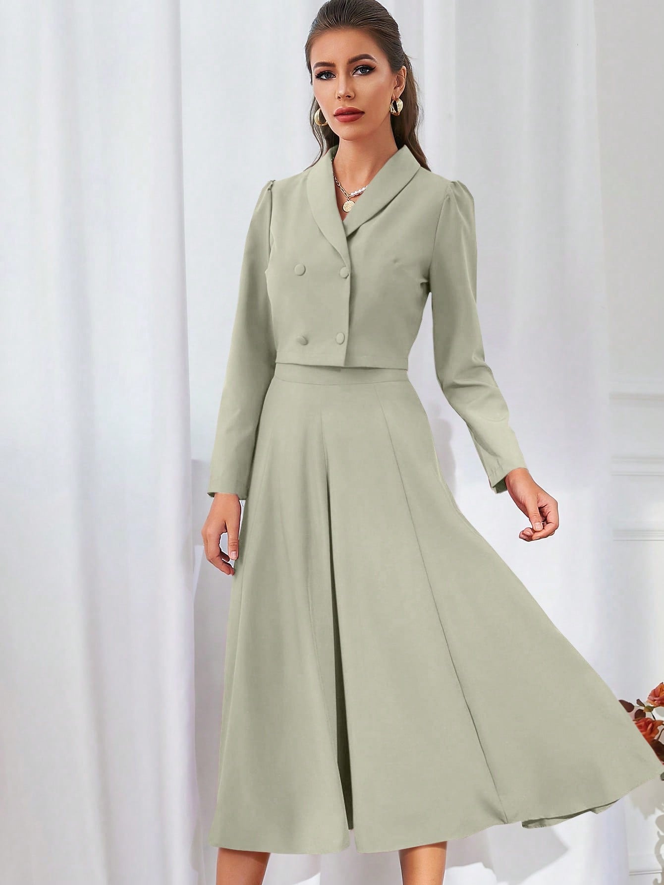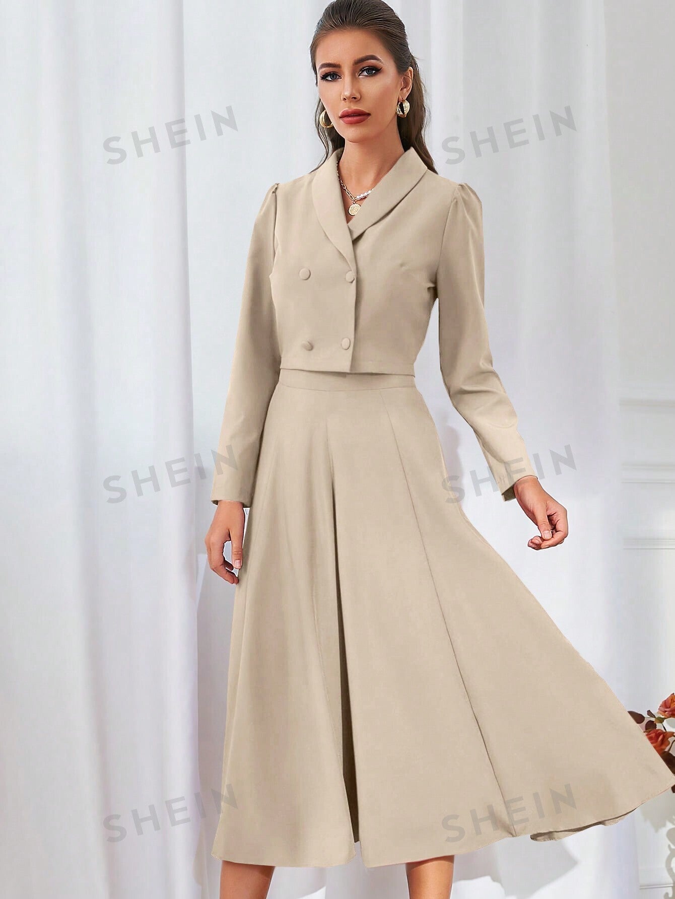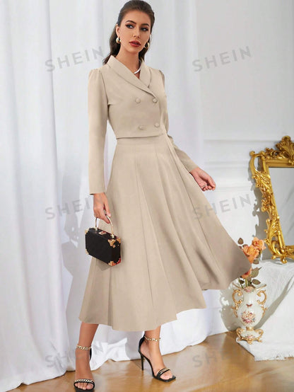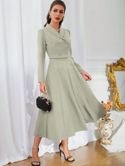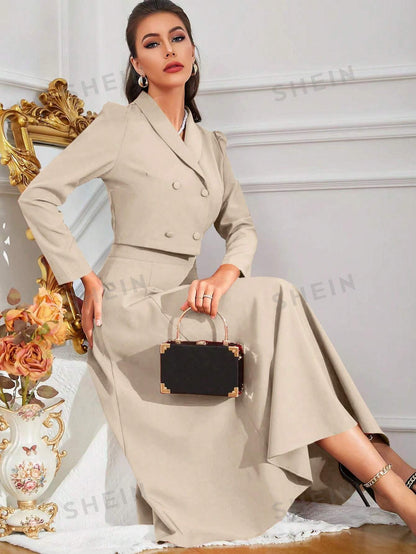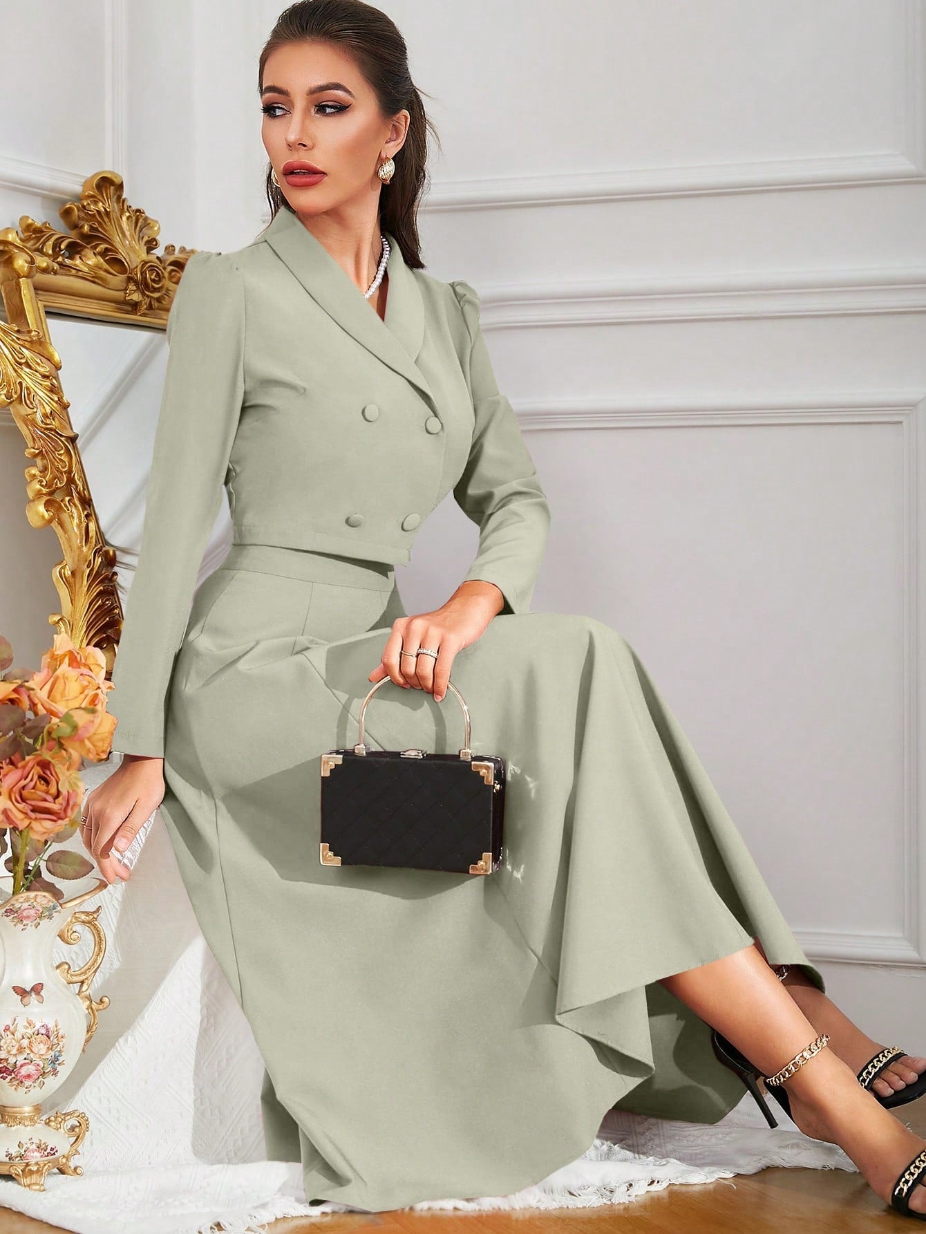 Modely Shawl Collar Double Breasted Crop Blazer & Skirt
