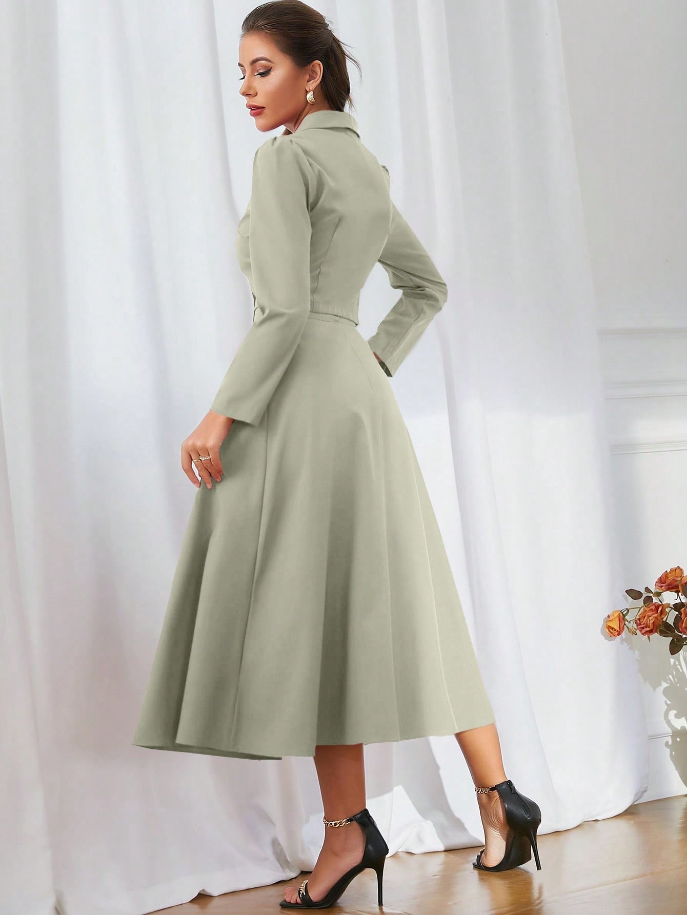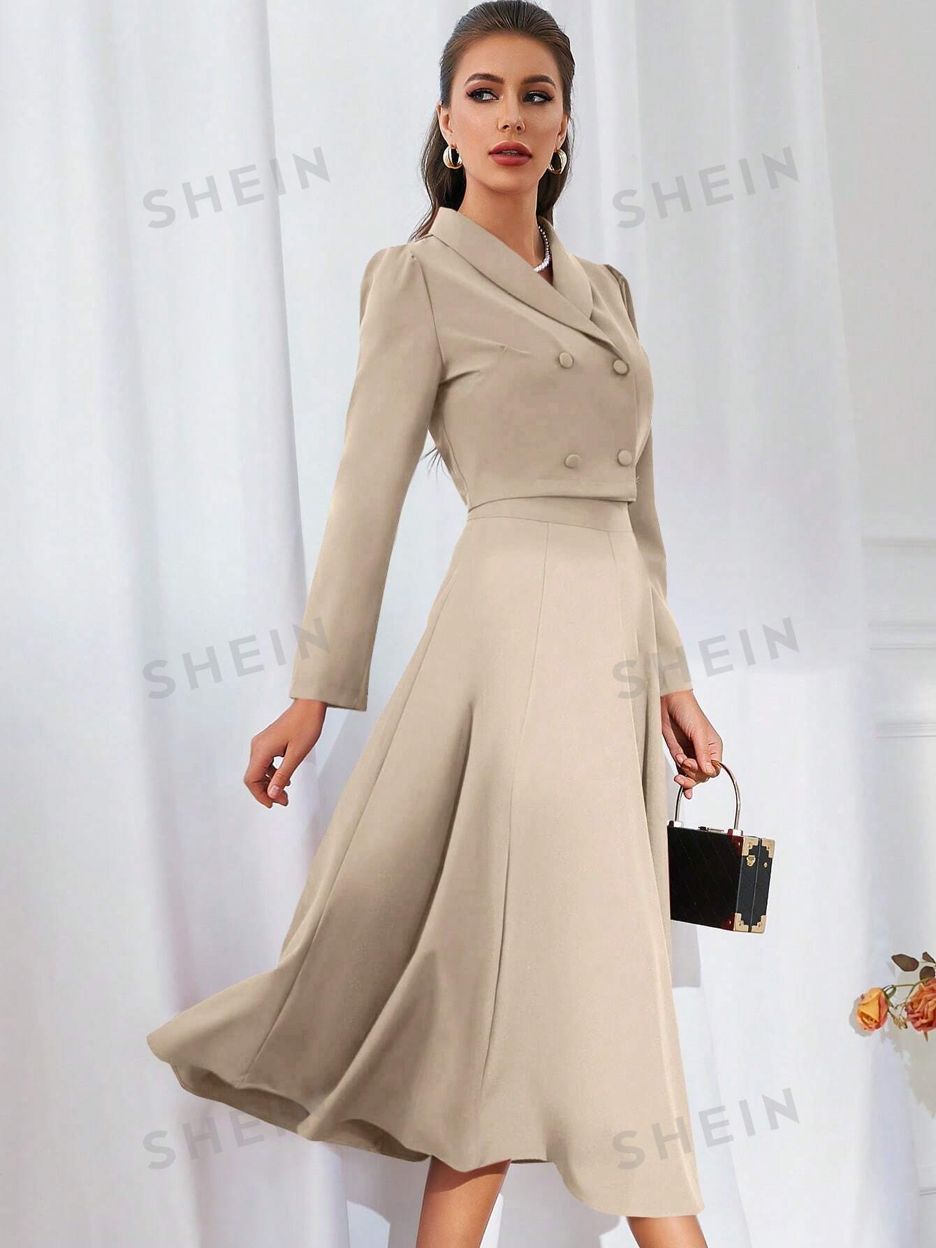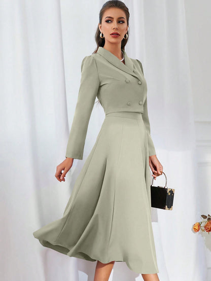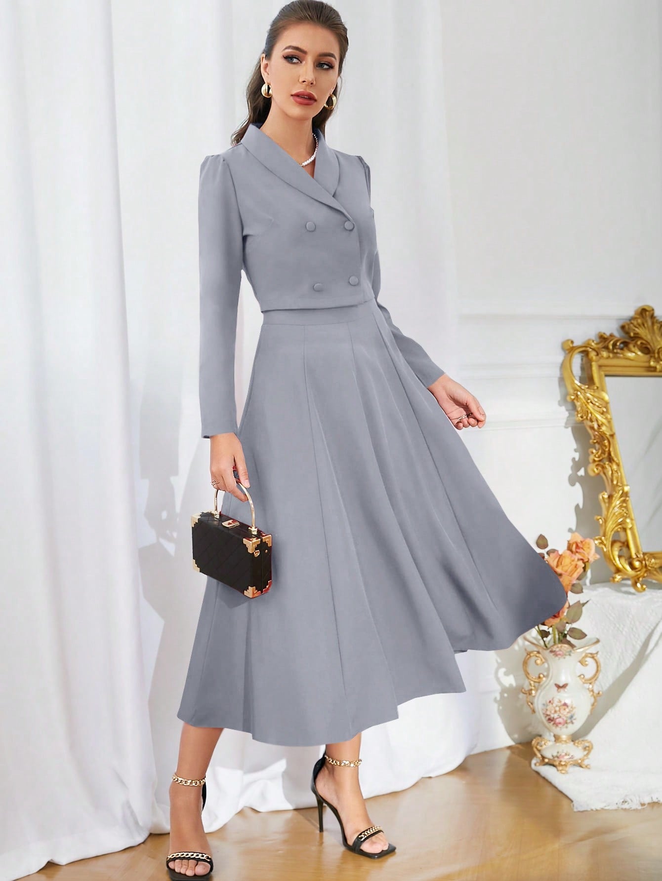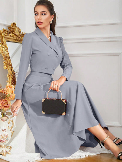 Modely Shawl Collar Double Breasted Crop Blazer & Skirt