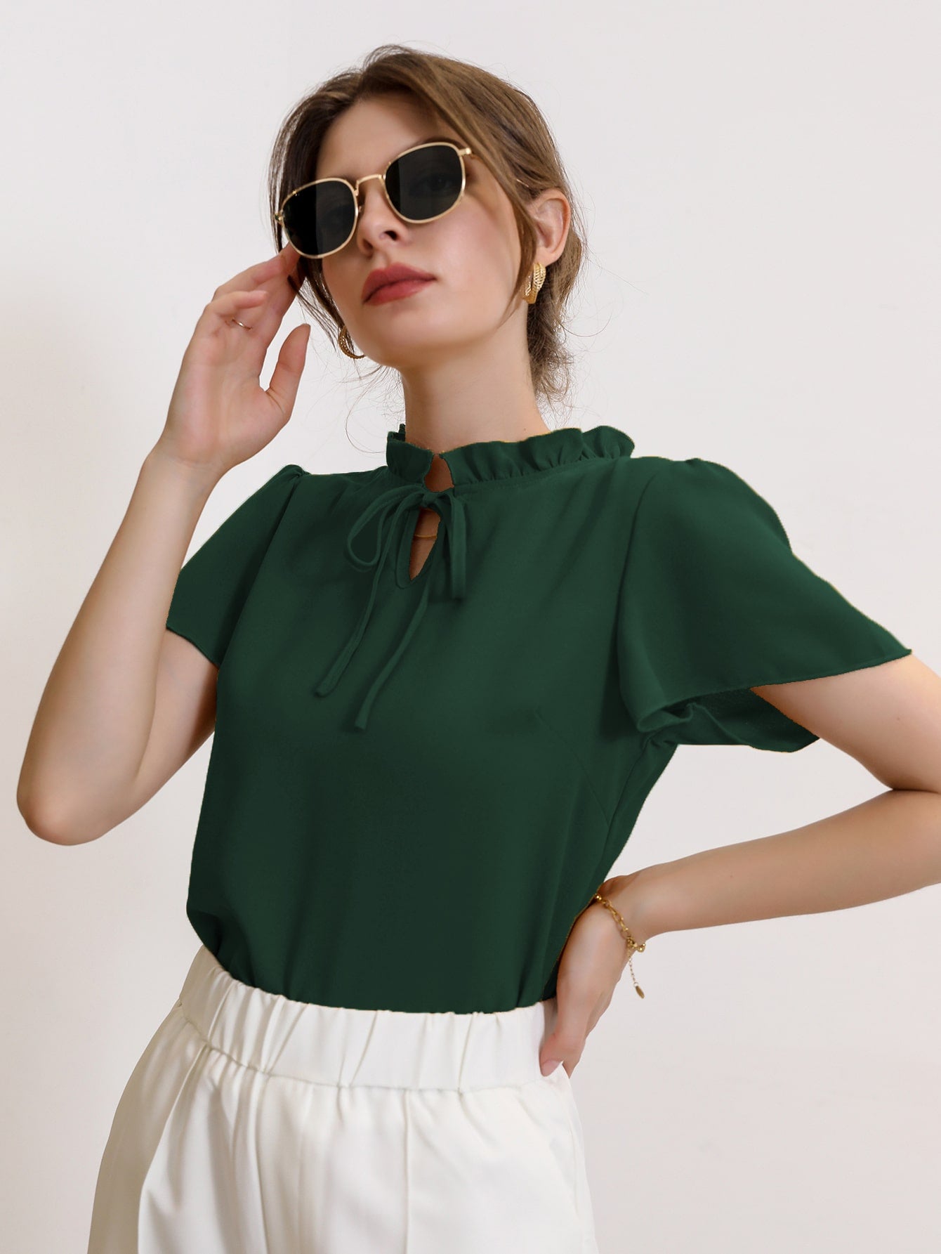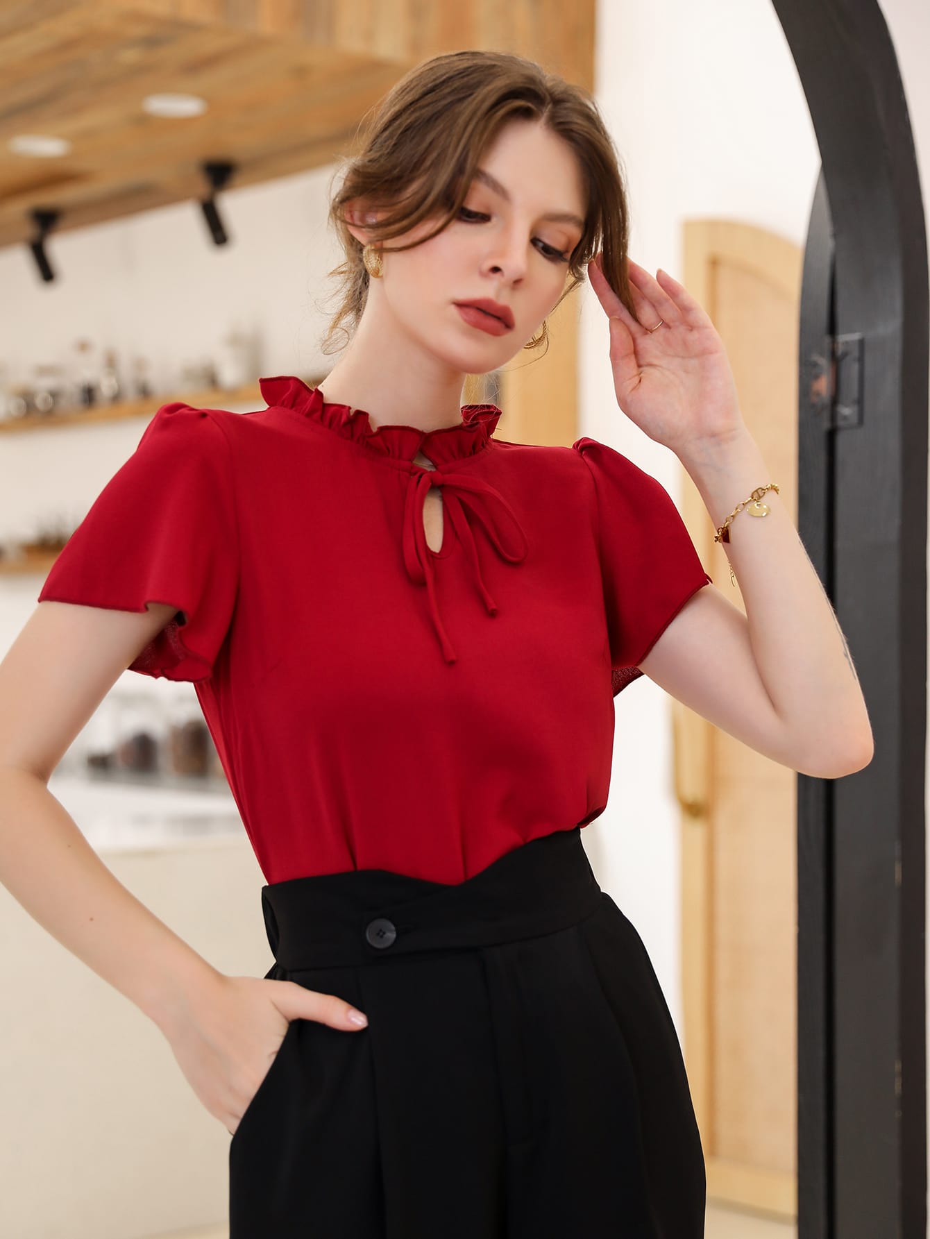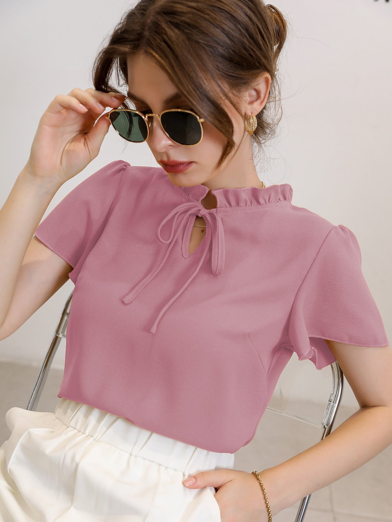 Modely Tie Neck Puff Sleeve Blouse