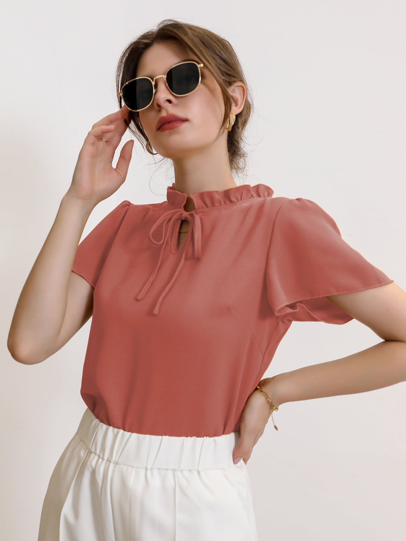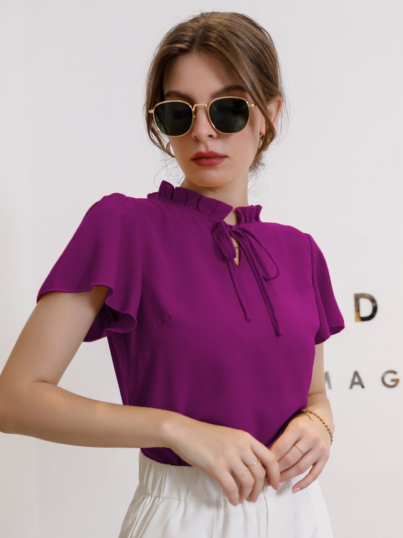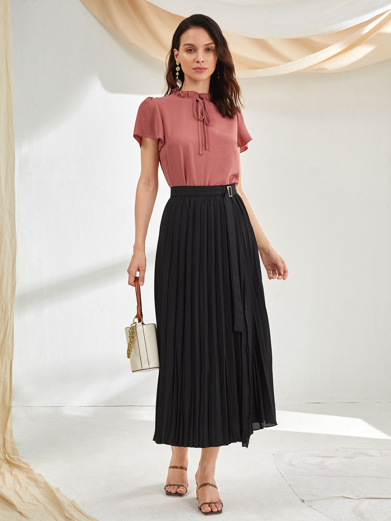 Modely Tie Neck Puff Sleeve Blouse