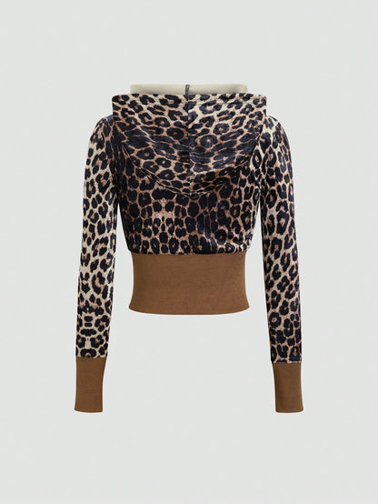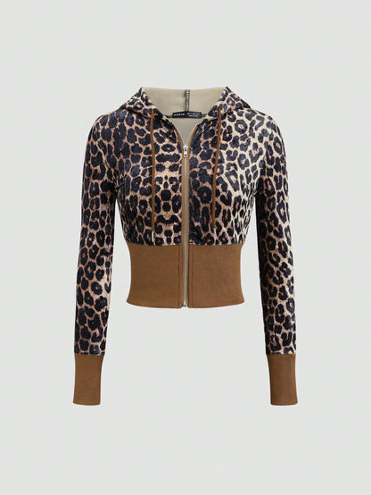 MOOSTA Women Cheetah Leopard Print Hoodie Sweatshirt, Slim Fit Casual Streetwear