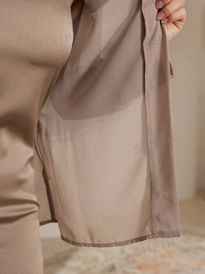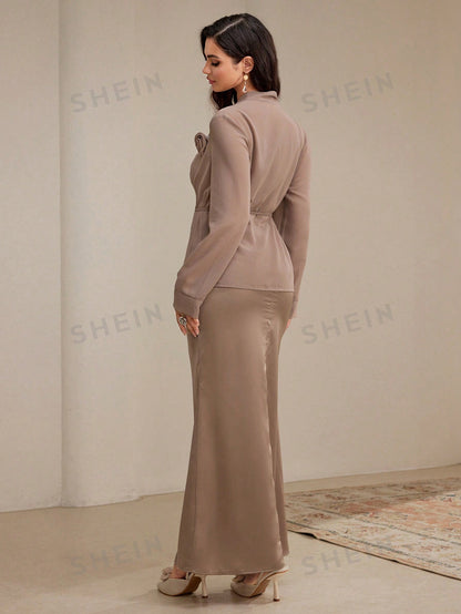 Mulvari 2pcs Women Elegant Set: Solid Color Applique Waist Belt Cardigan & Sleeveless Midi Dress