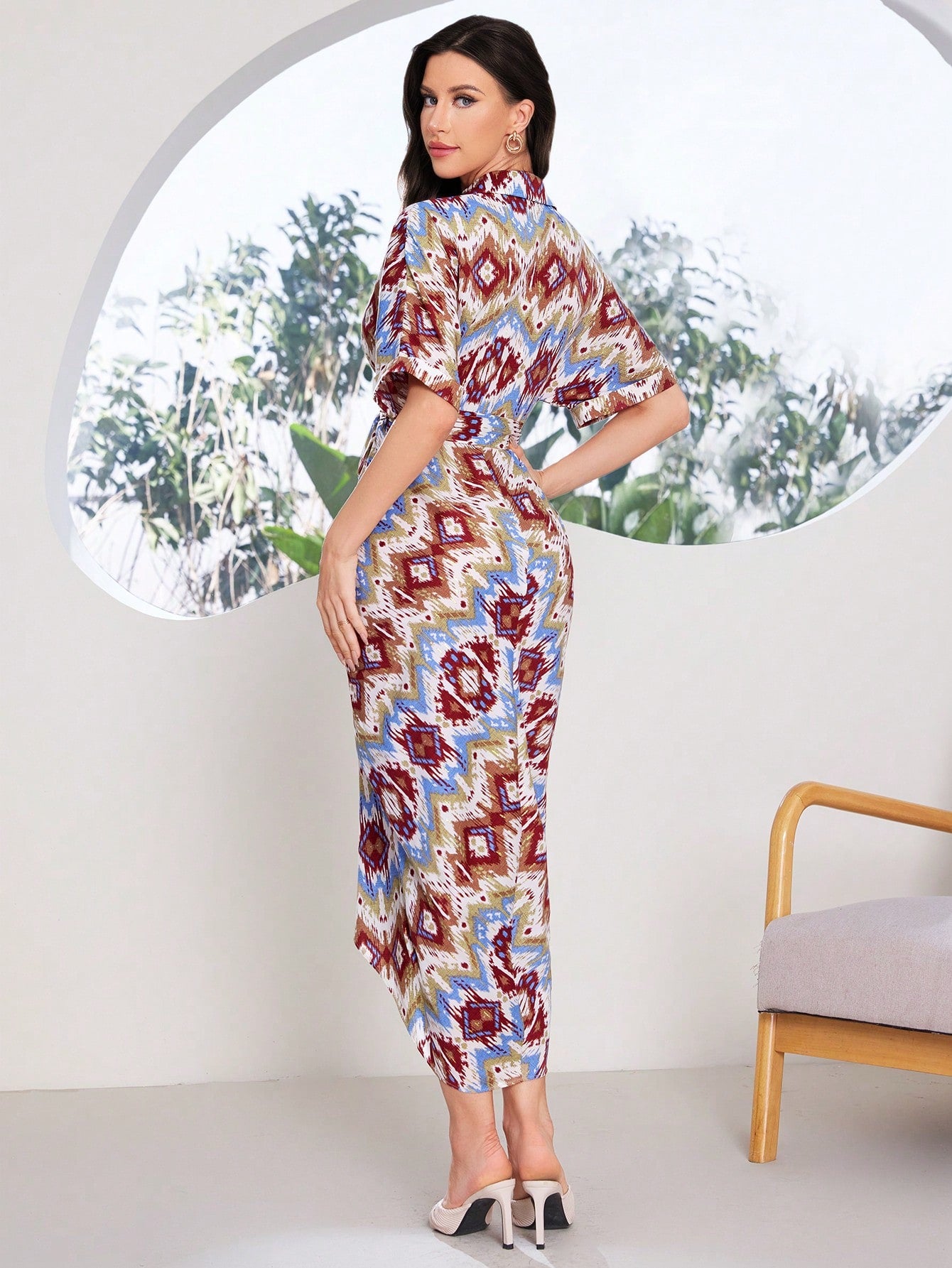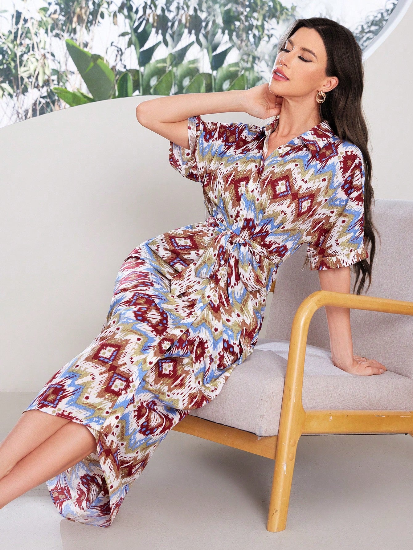 Mulvari Women Geometric Pattern Shirt Dress, Perfect For Summer Music Festivals