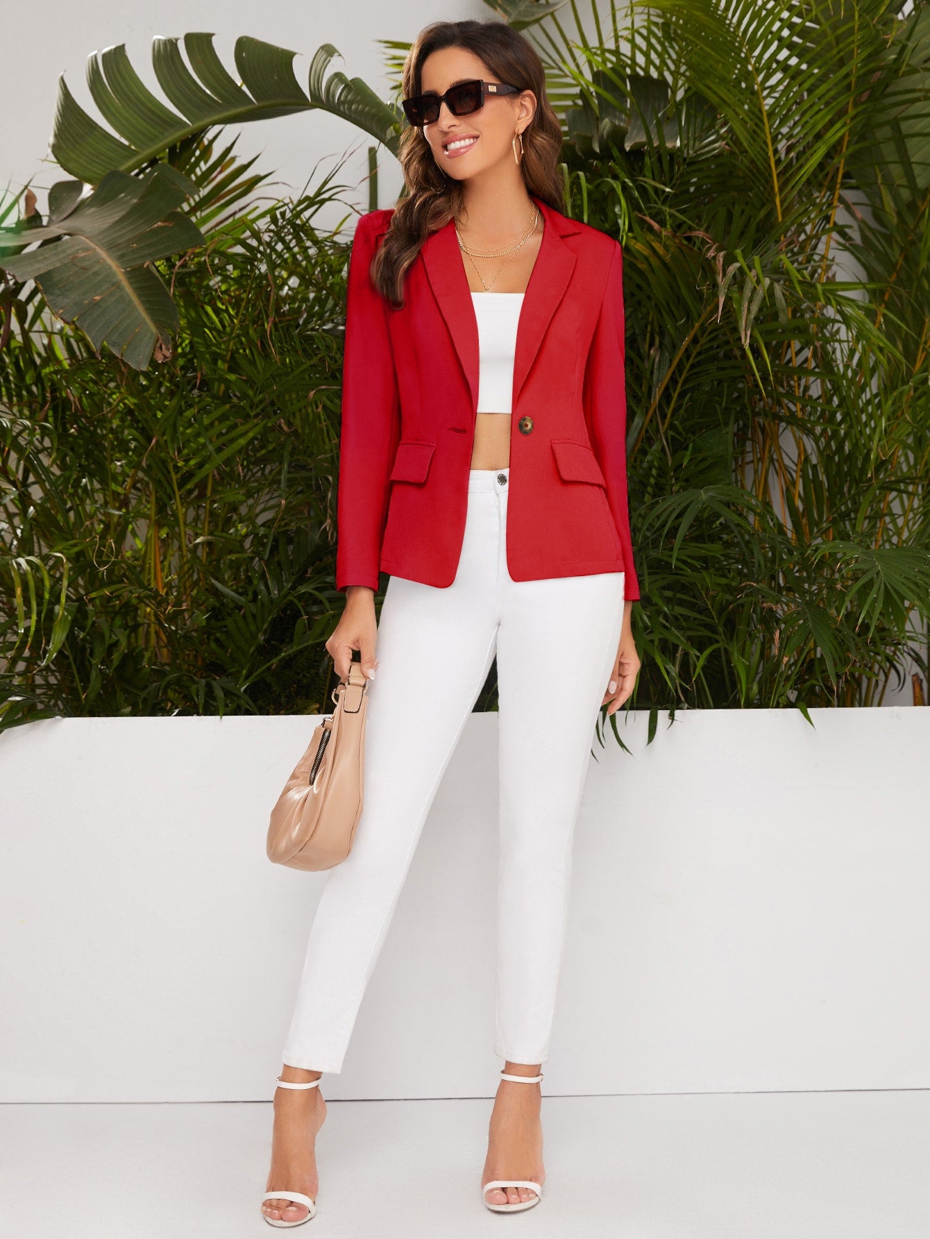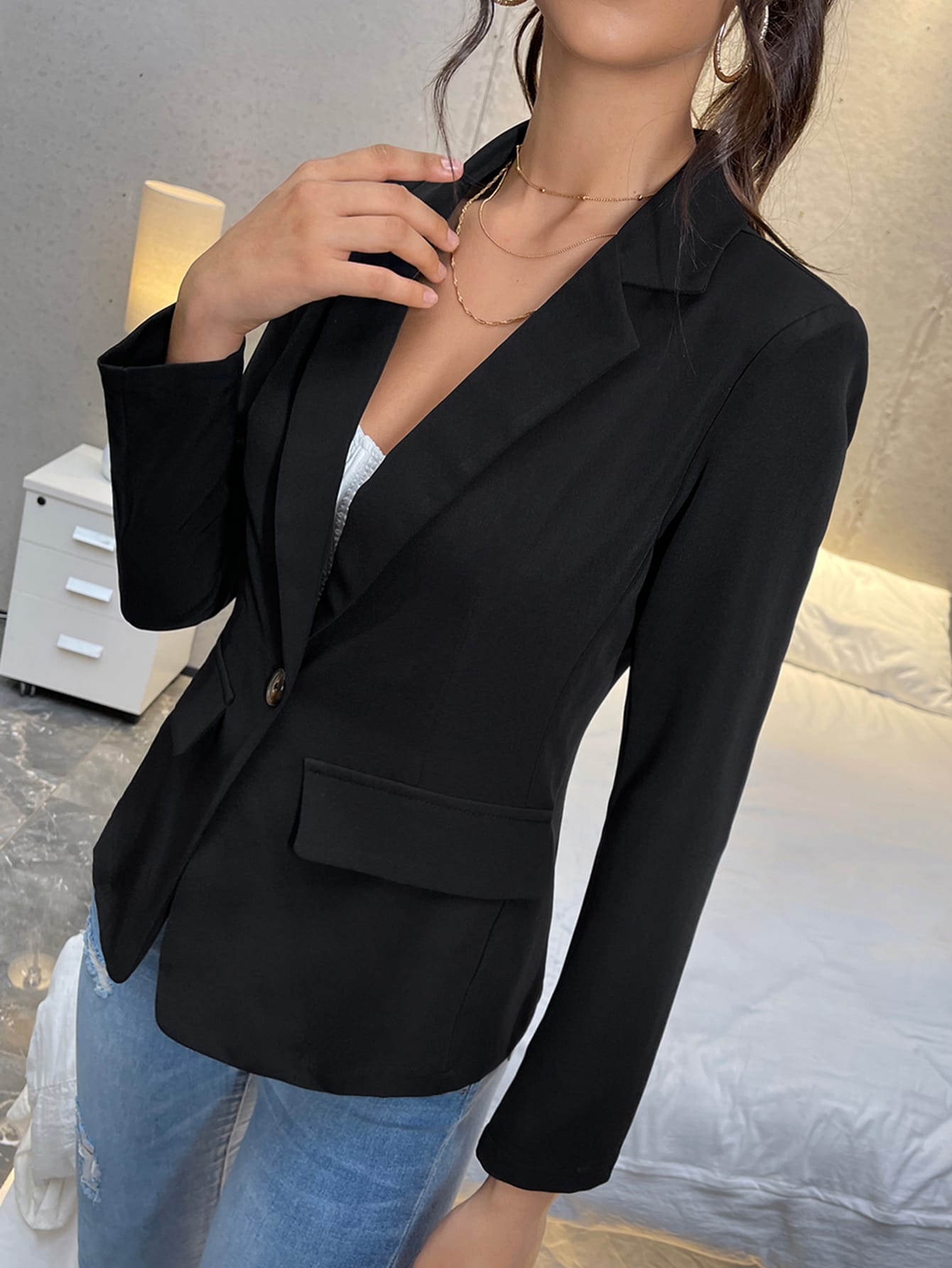 Notched Collar Single Buttoned Blazer