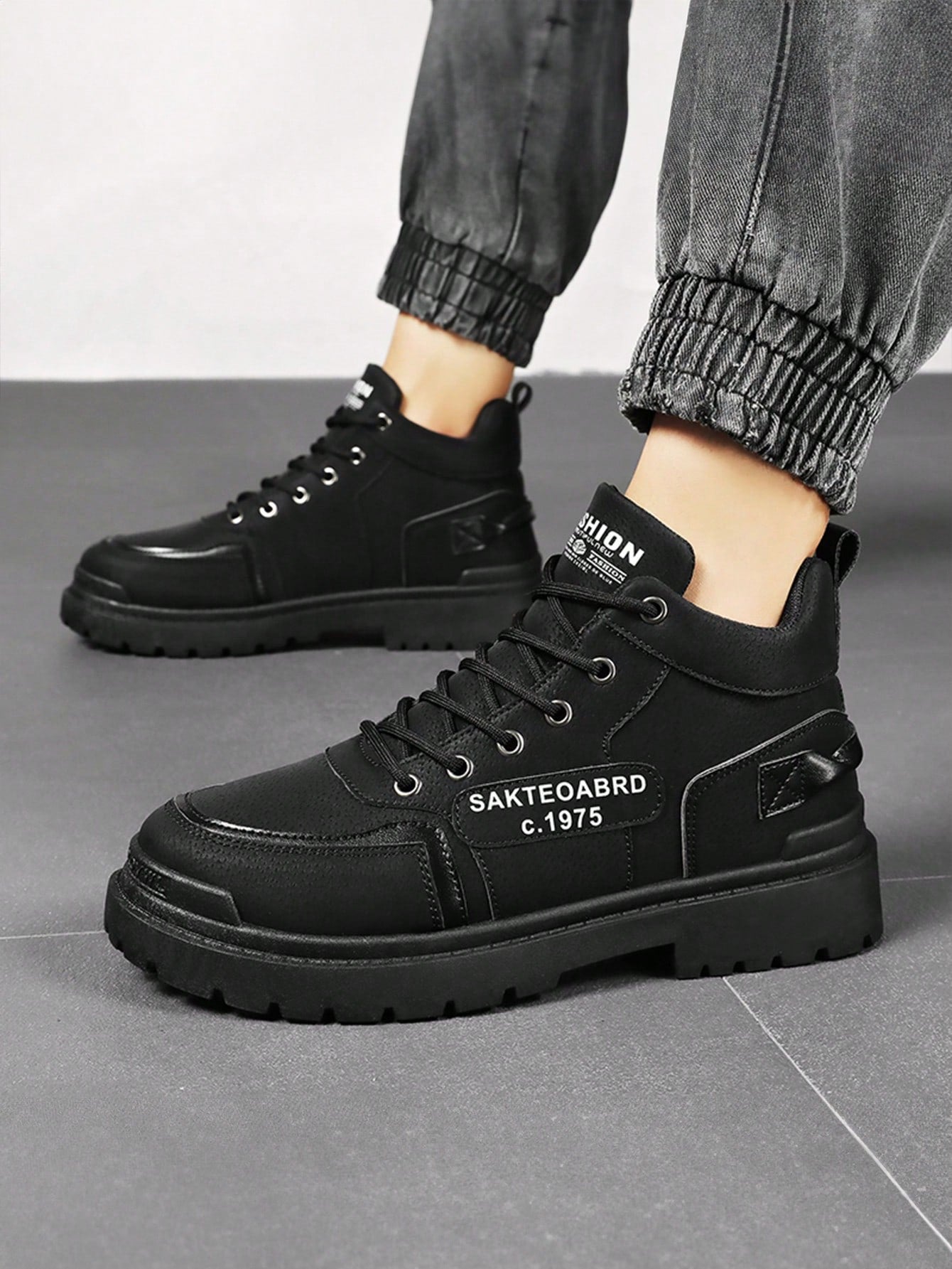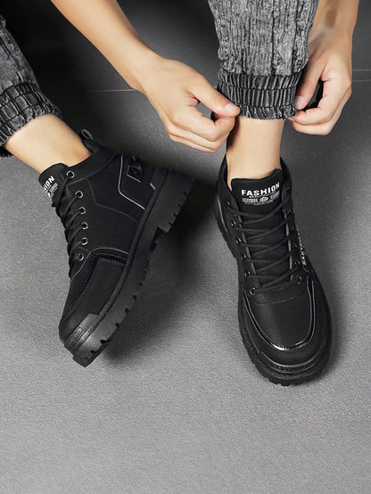 Outdoor Desert Retro Work Boots With Fleece Lining, High Top Winter Warm Shoes