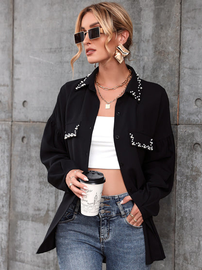 Pearls Beaded Drop Shoulder Blouse