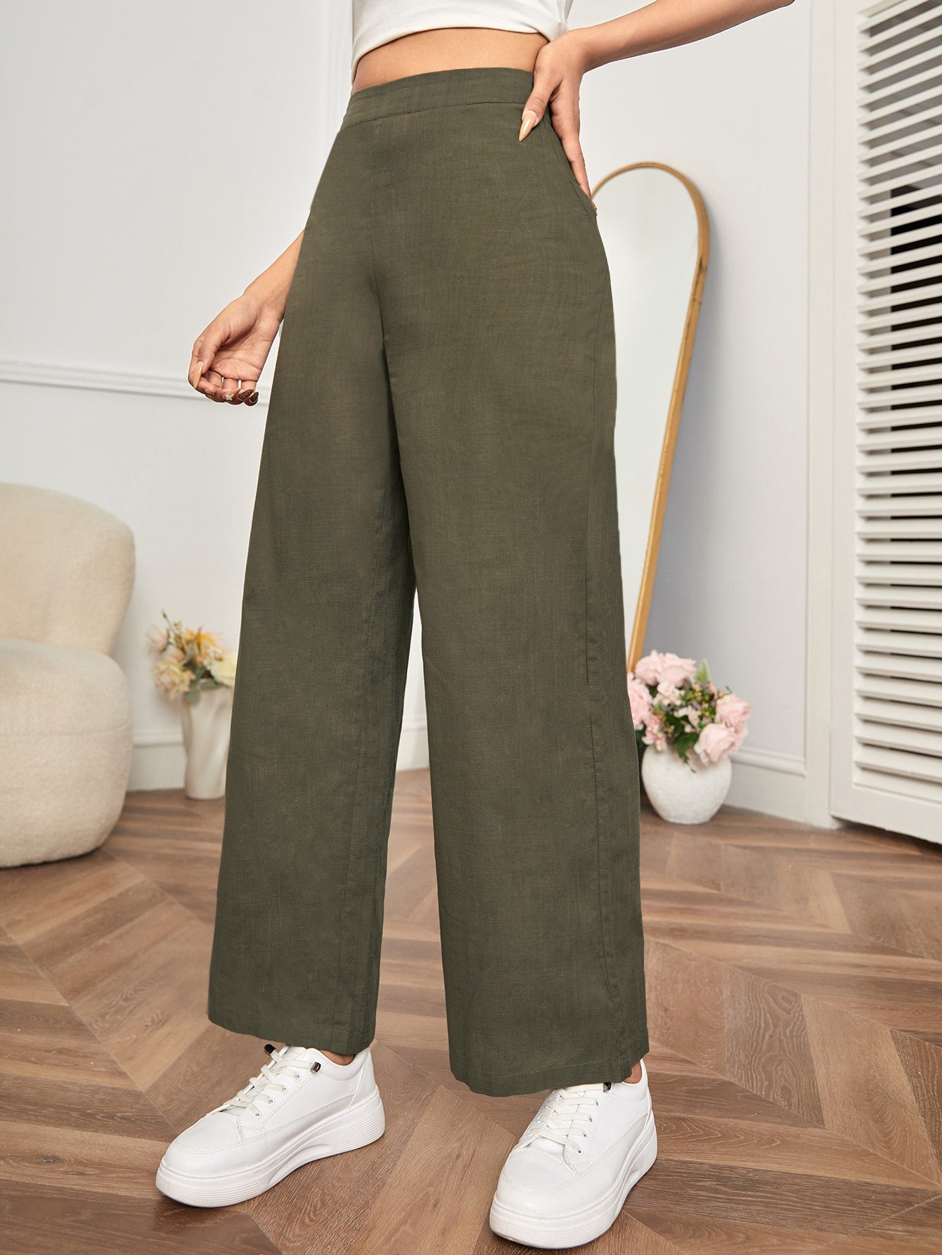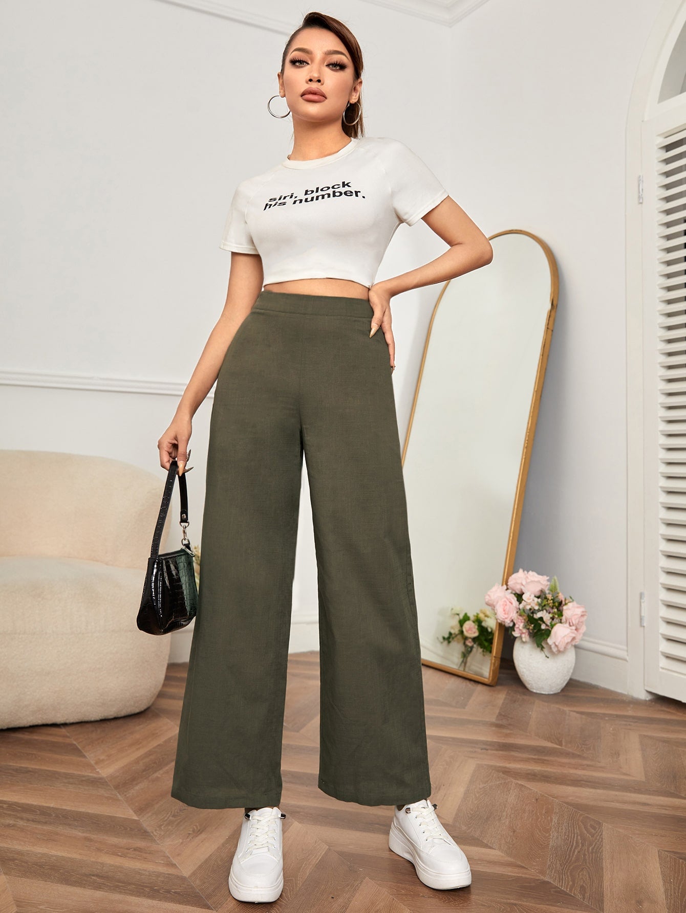 PETITE High Waist Wide Leg Pants