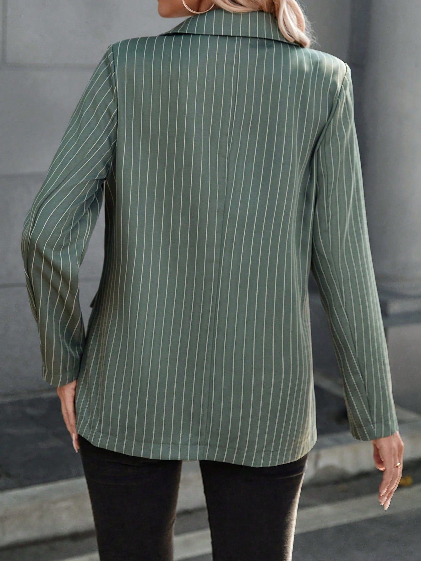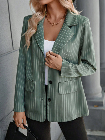 Pinstriped Print Lapel Neck Flap Detail Blazer