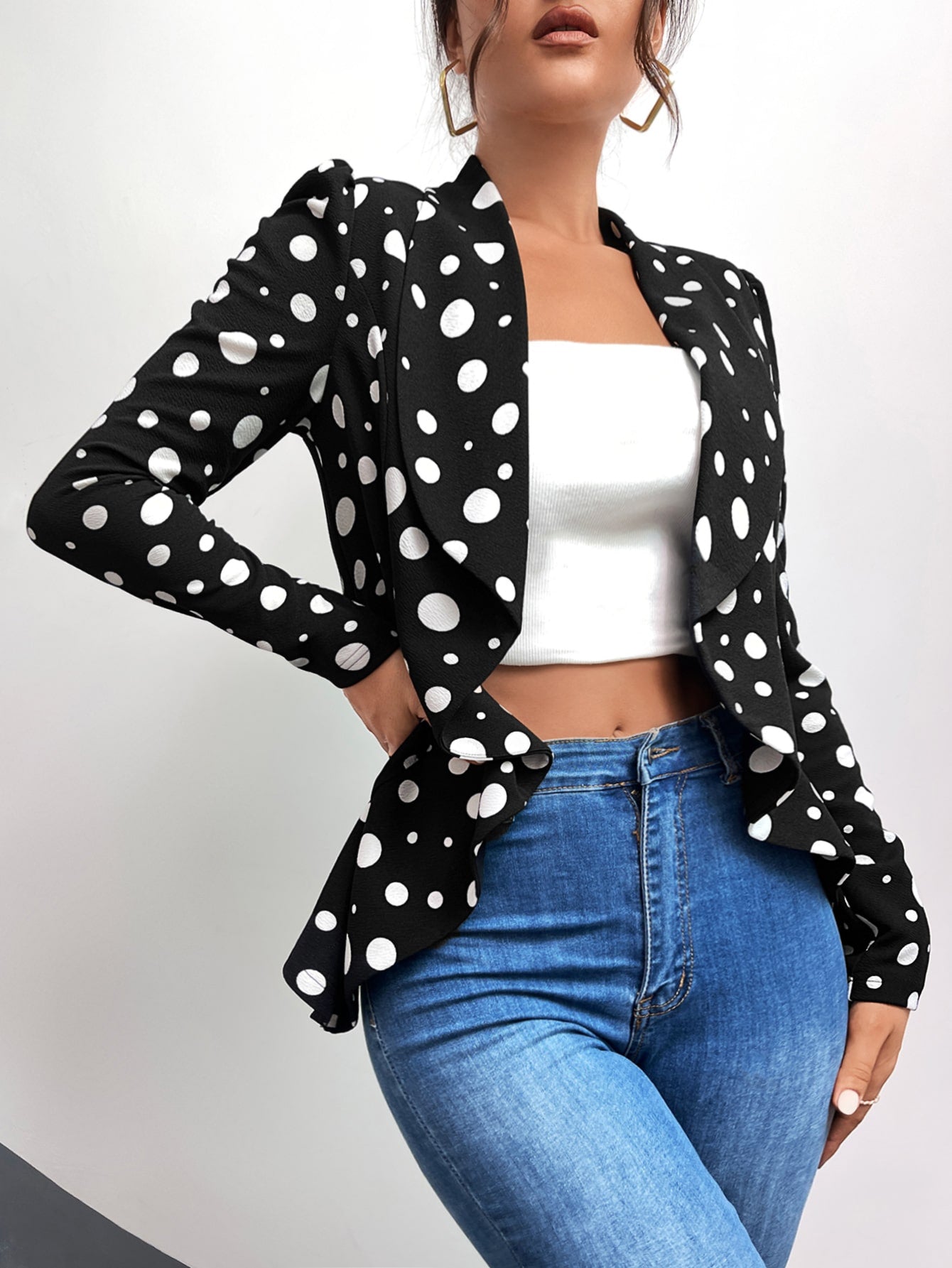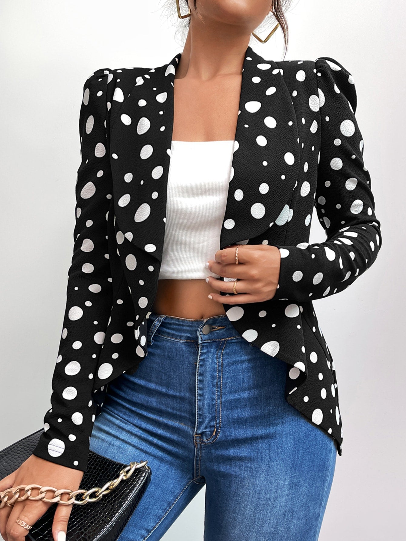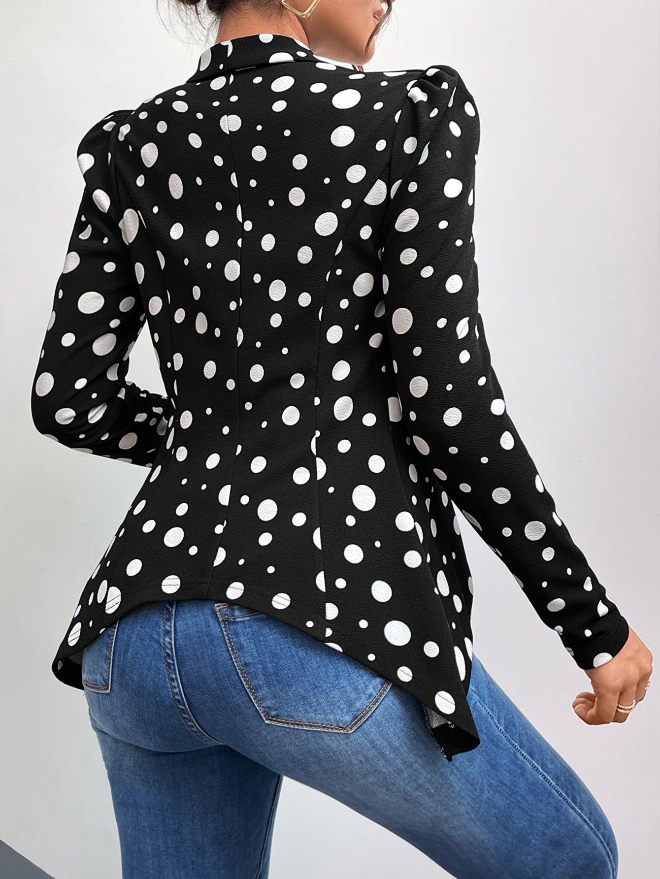 Polka Dot Shawl Collar Puff Sleeve Blazer