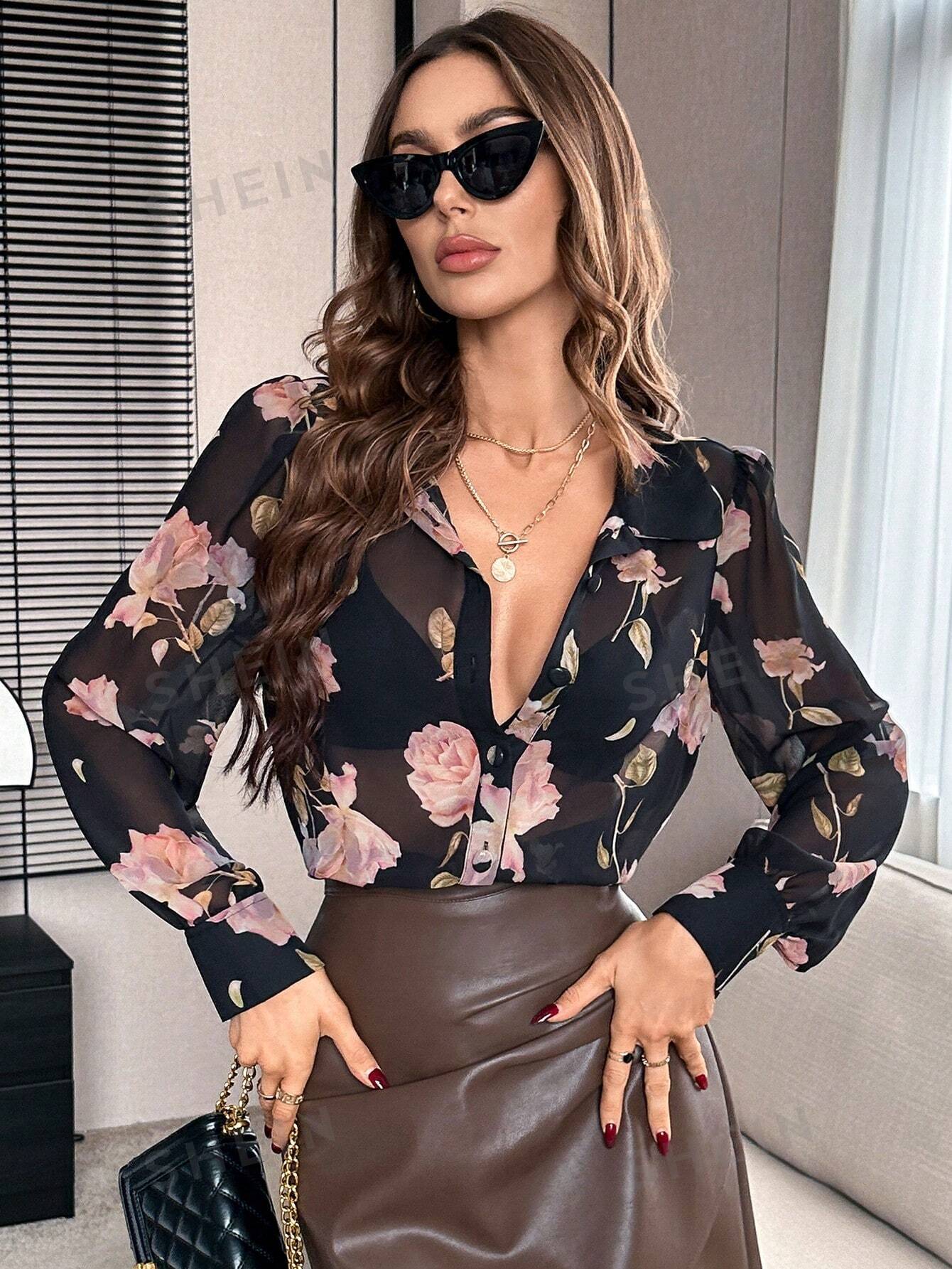 Privé Floral Print Button Front Blouse Without Bra