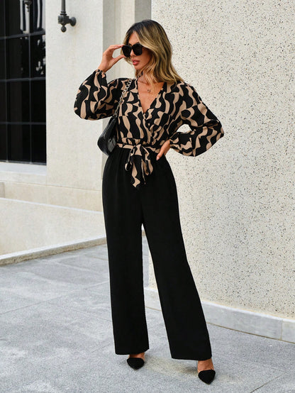 Privé Graphic Print Belted Wide Leg Jumpsuit