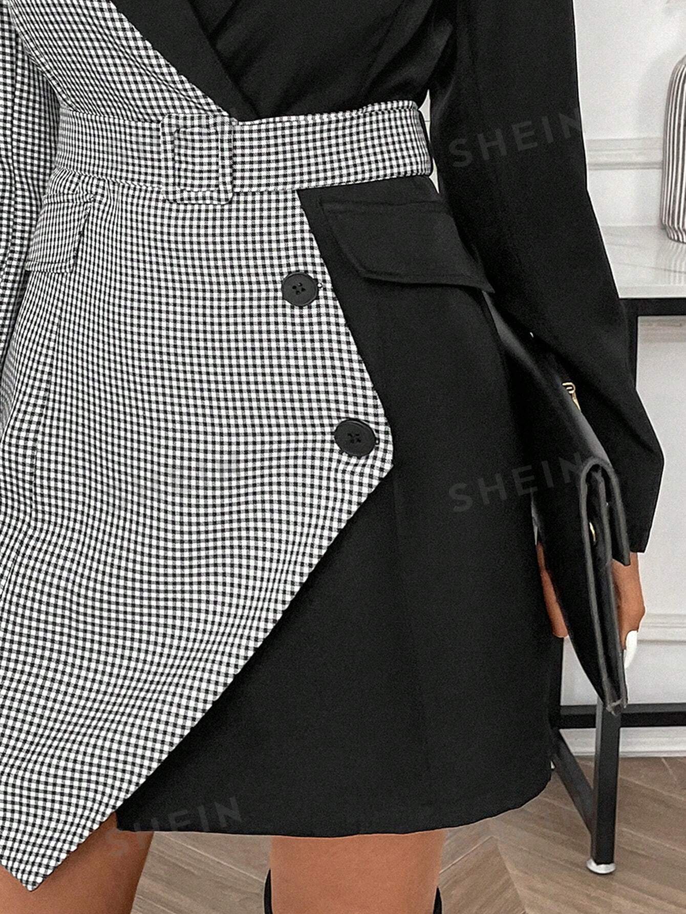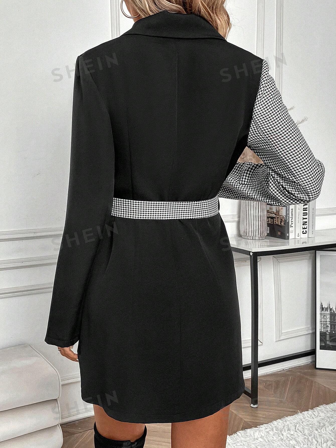 Privé Ladies' Plaid Suit Collar Belted Blazer