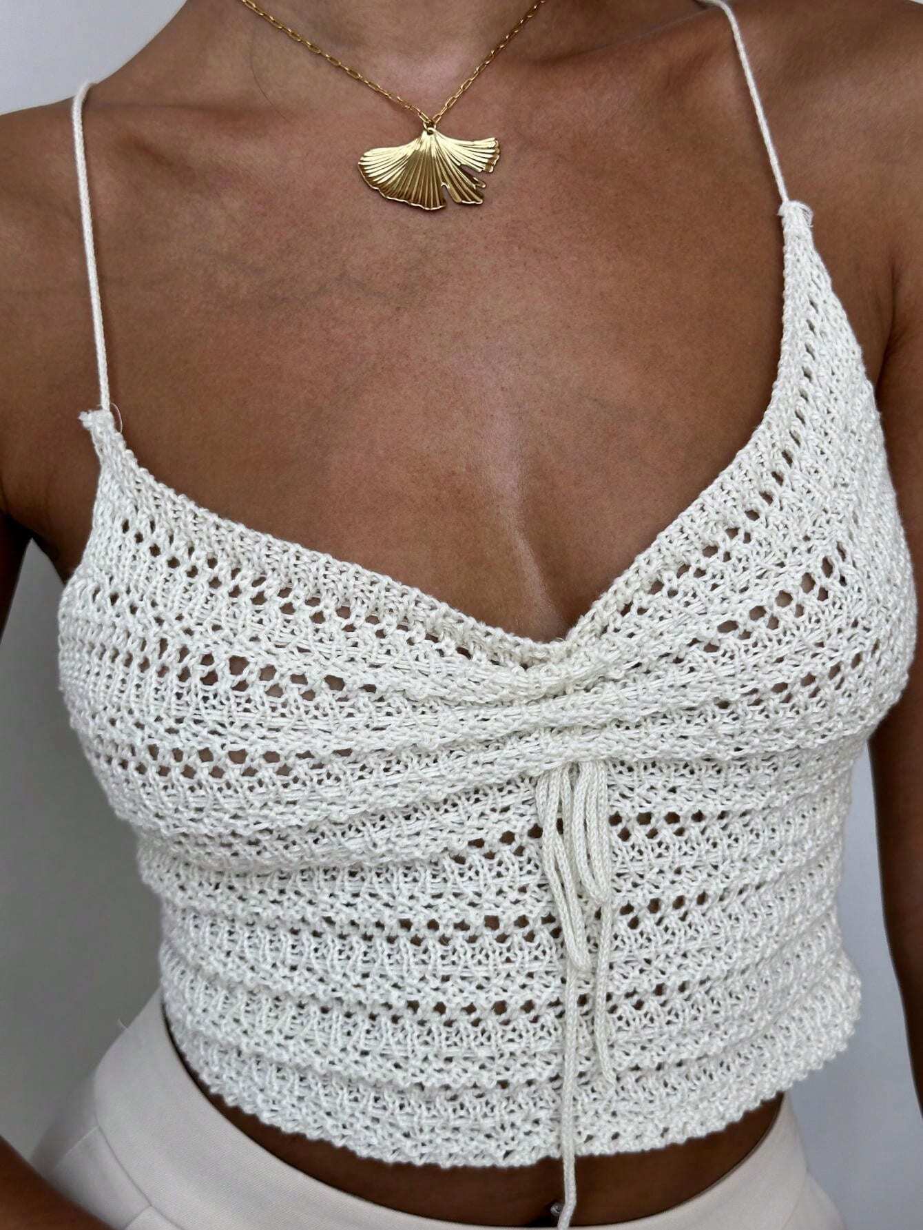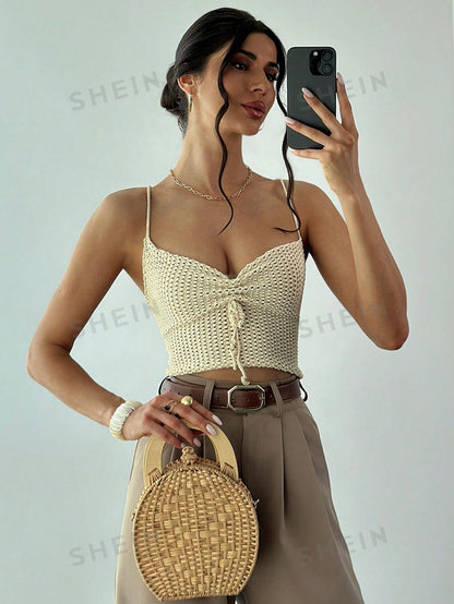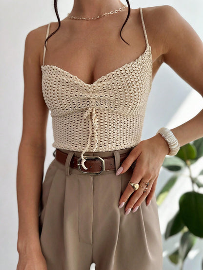 Privé Women Ruched Drawstring Beach Vacation Crochet Knit Tank Top