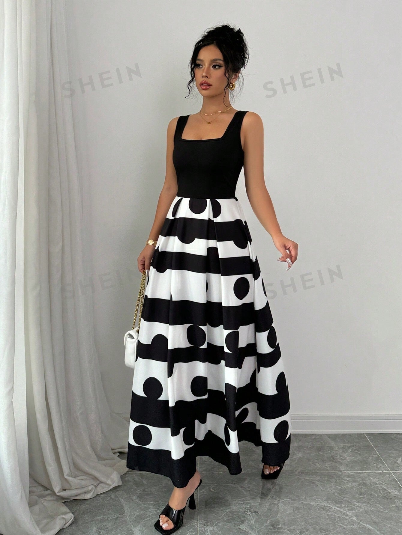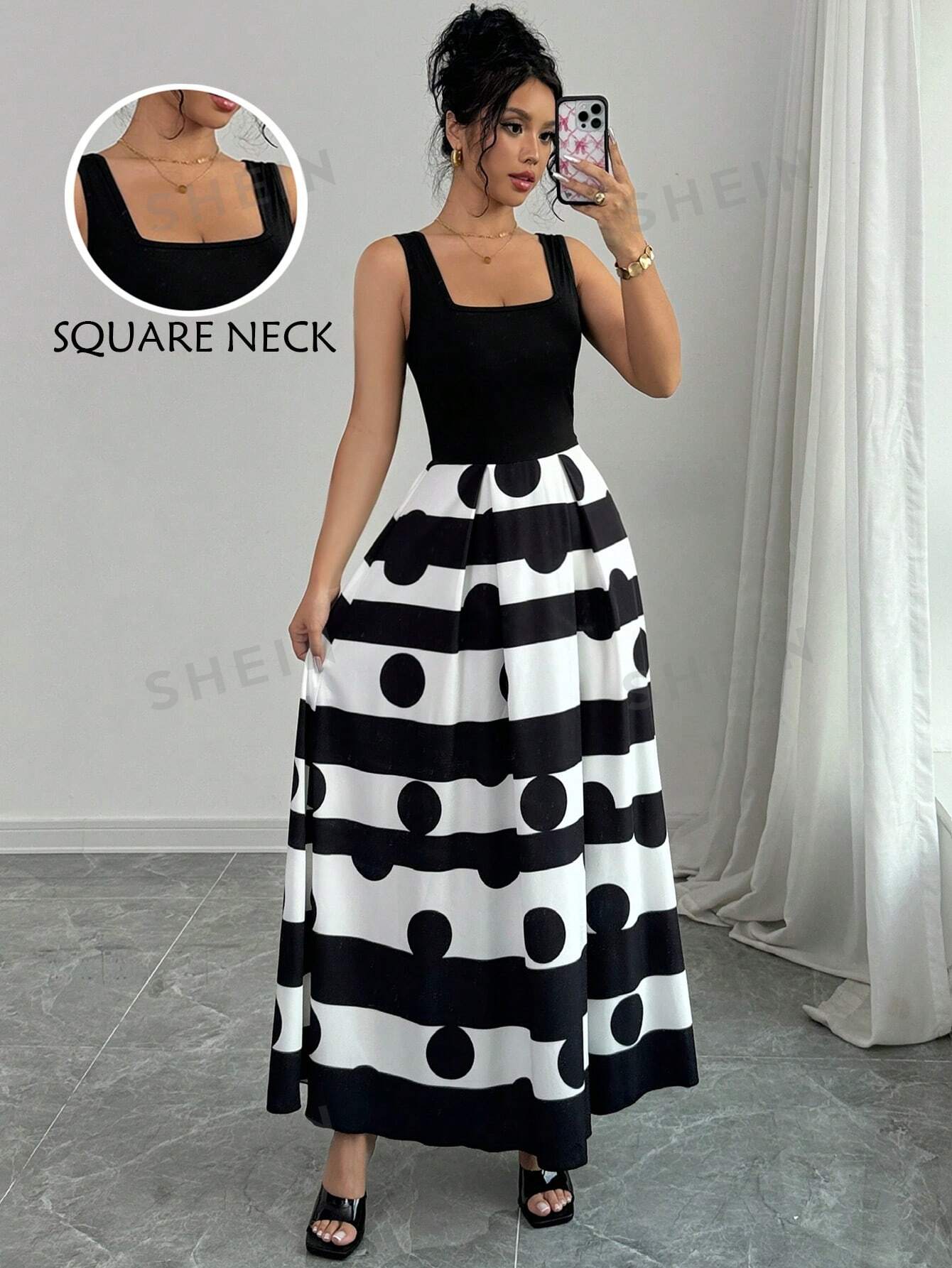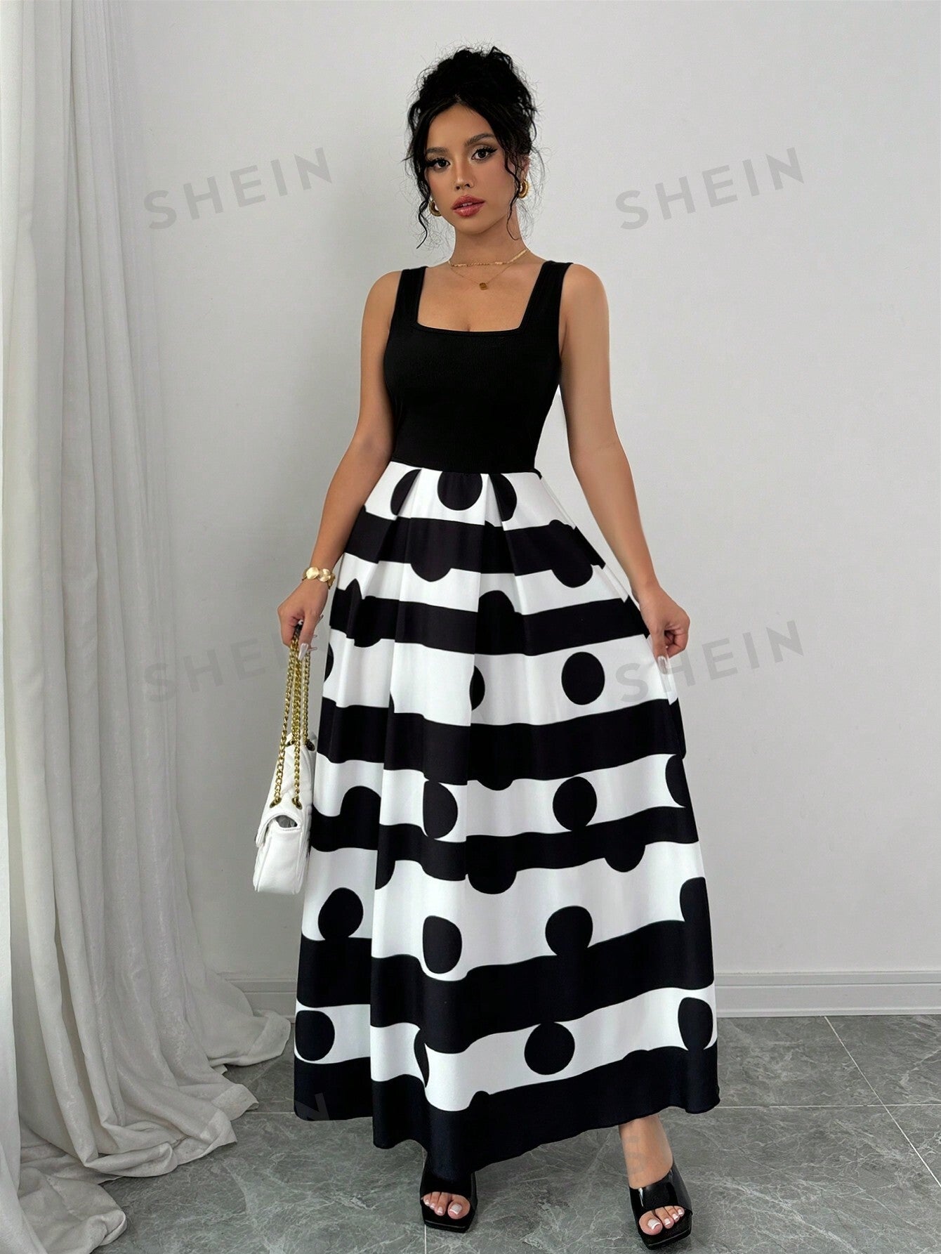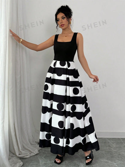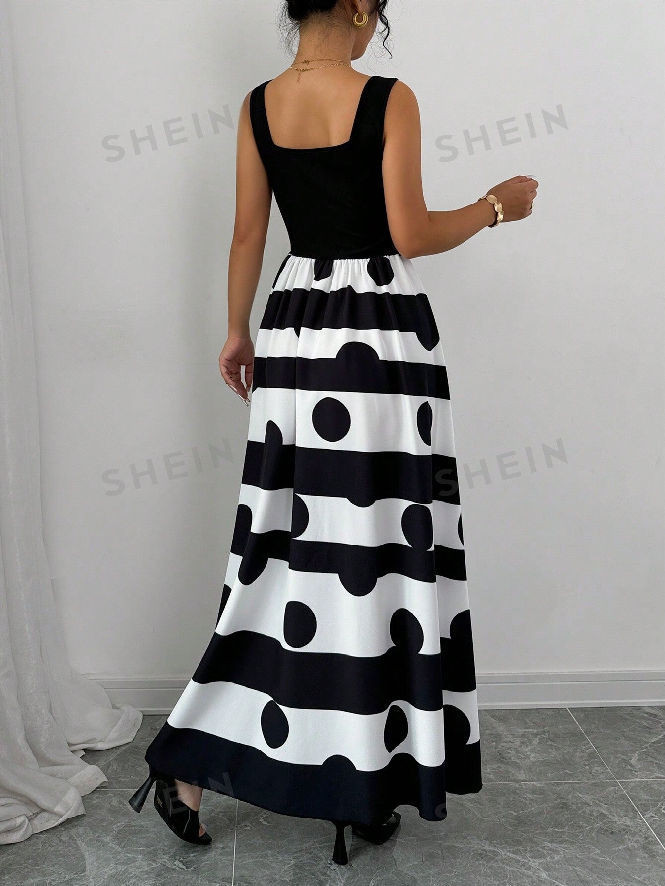 Privé Women Striped Slip Dress With Polka Dot Print