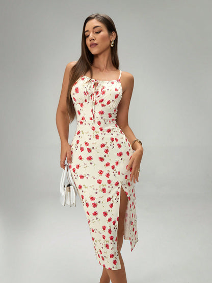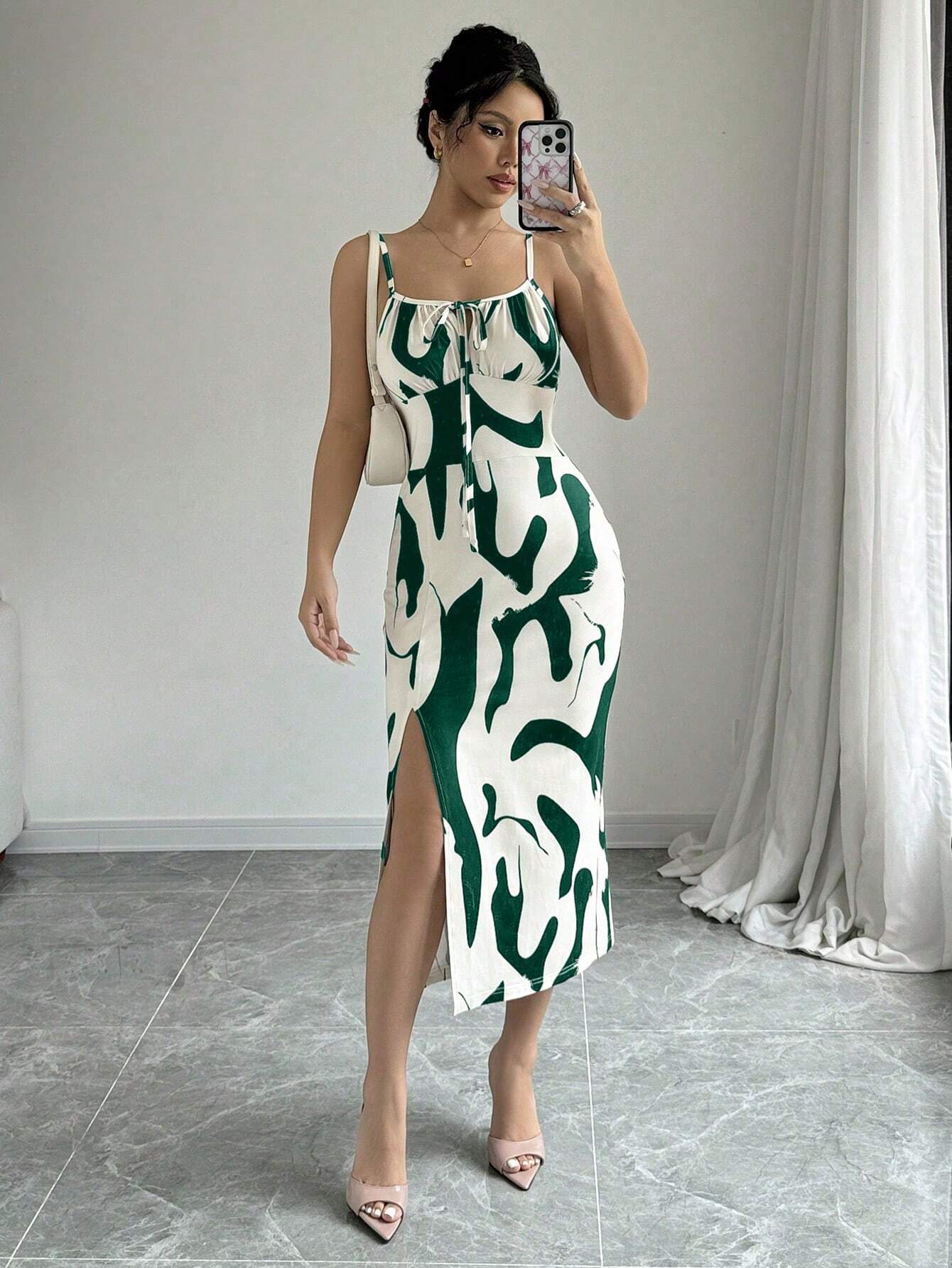 Raffinéa Summer Fashion Random Printed Thigh-Slit Cami Dress