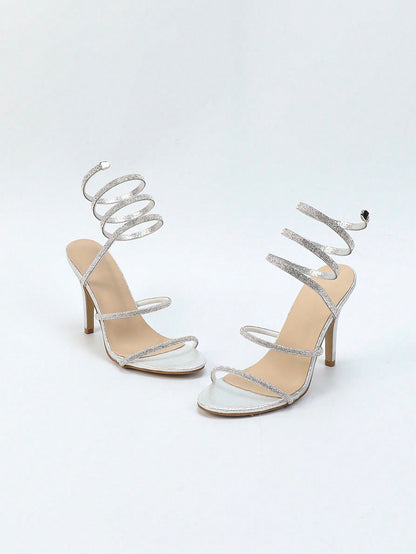 Rhinestone Decor Stiletto Heeled Sandals