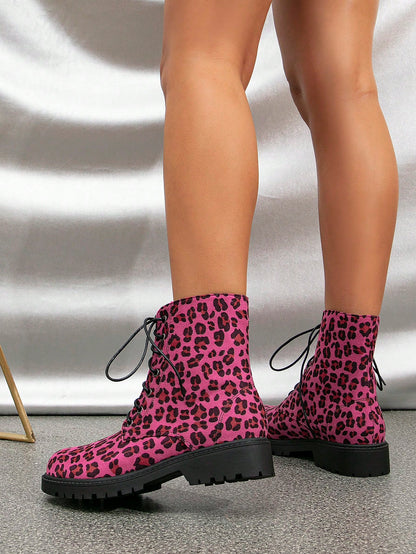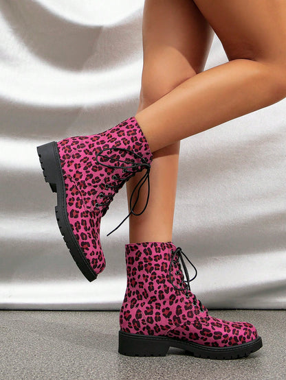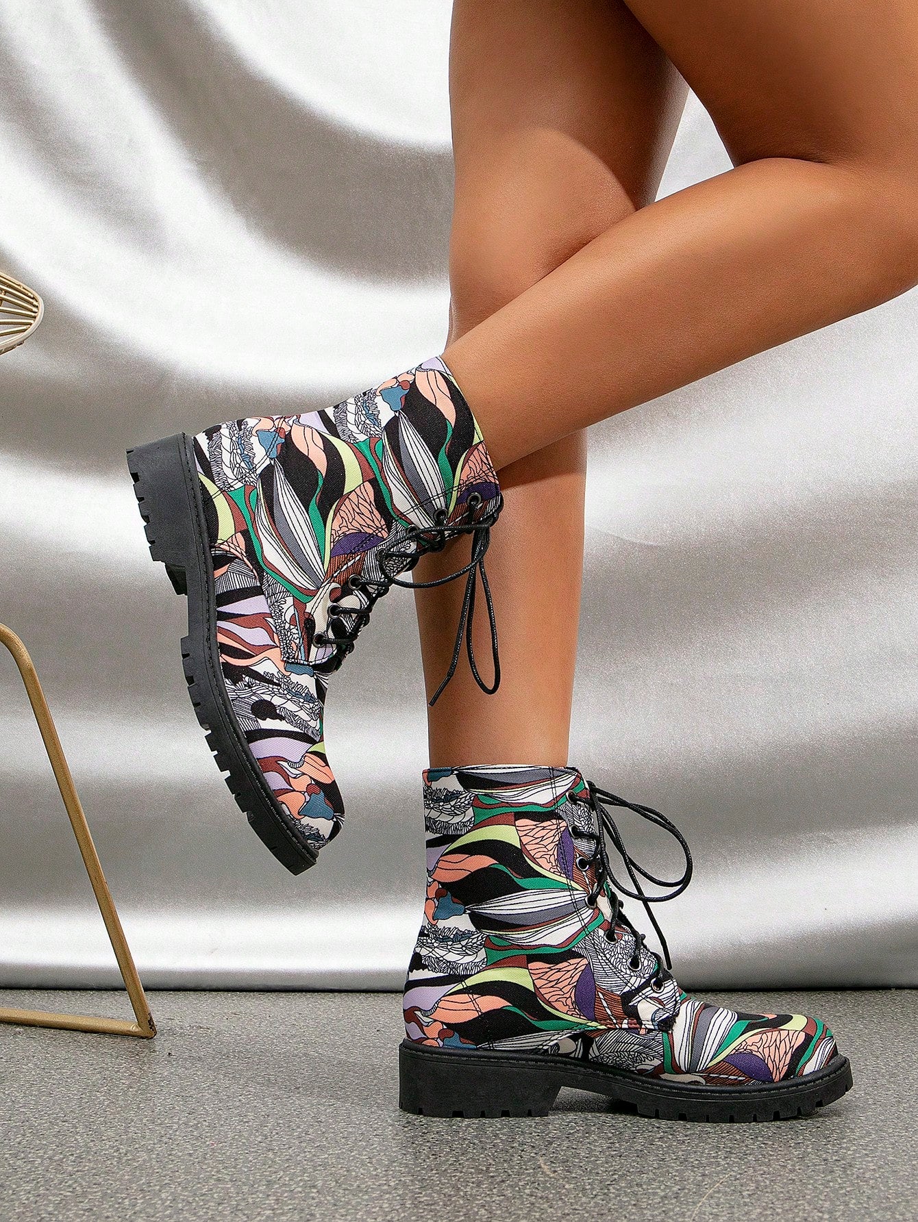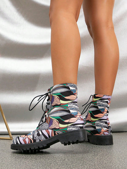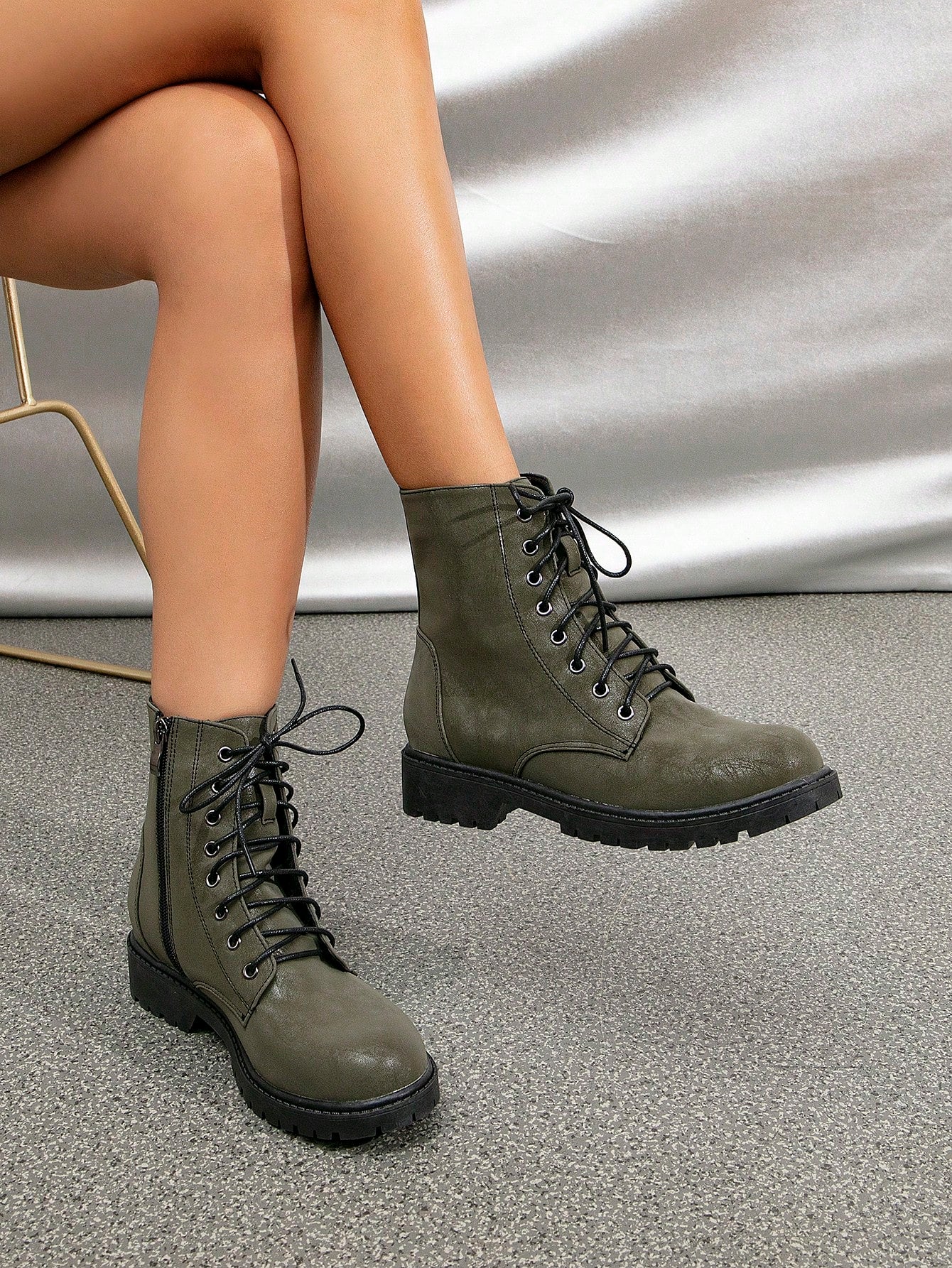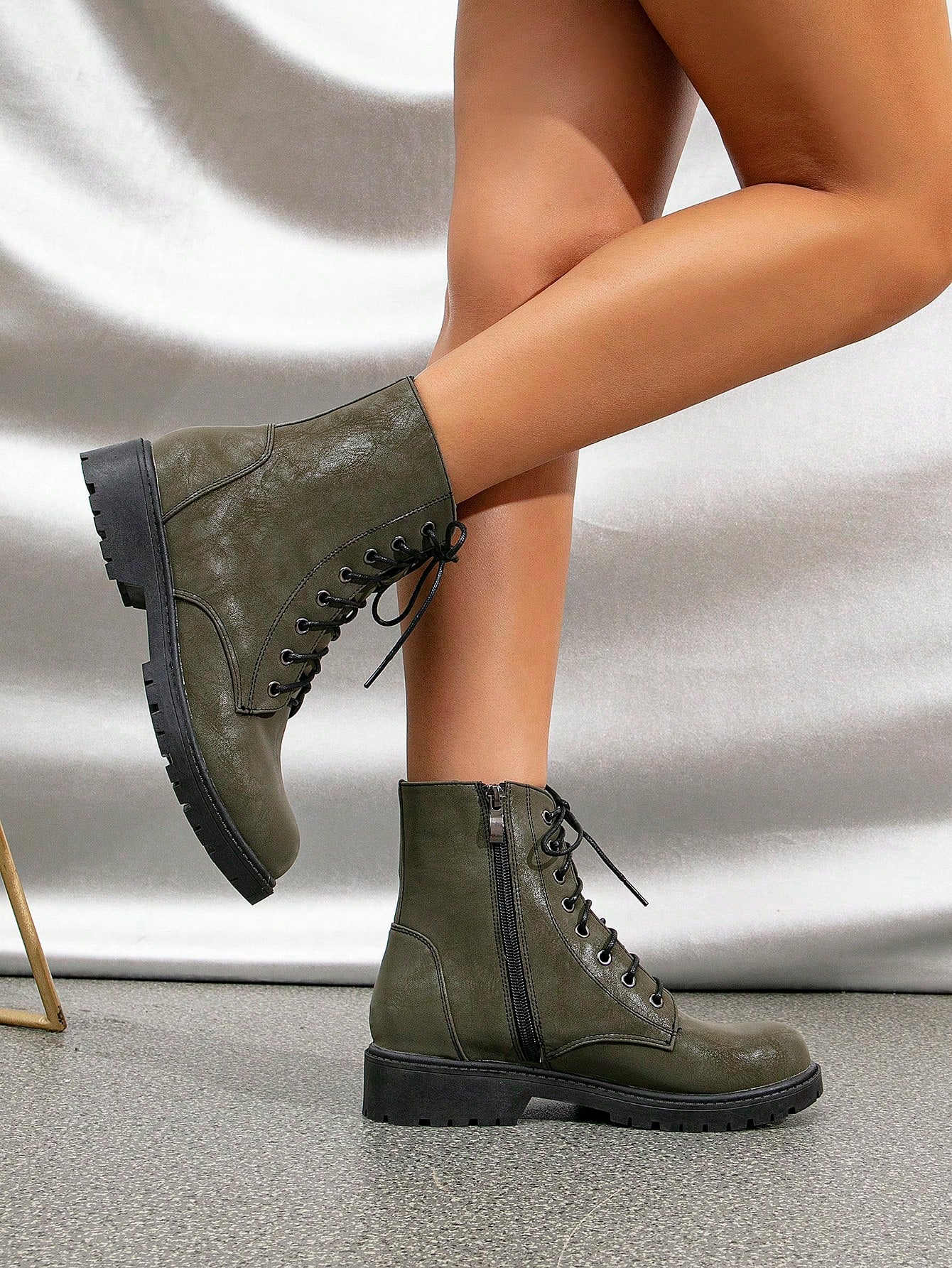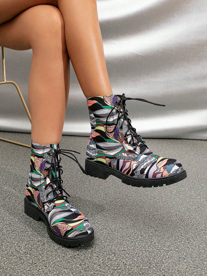 Sequins Decor Lace-up Front Side Zipper Combat Boots