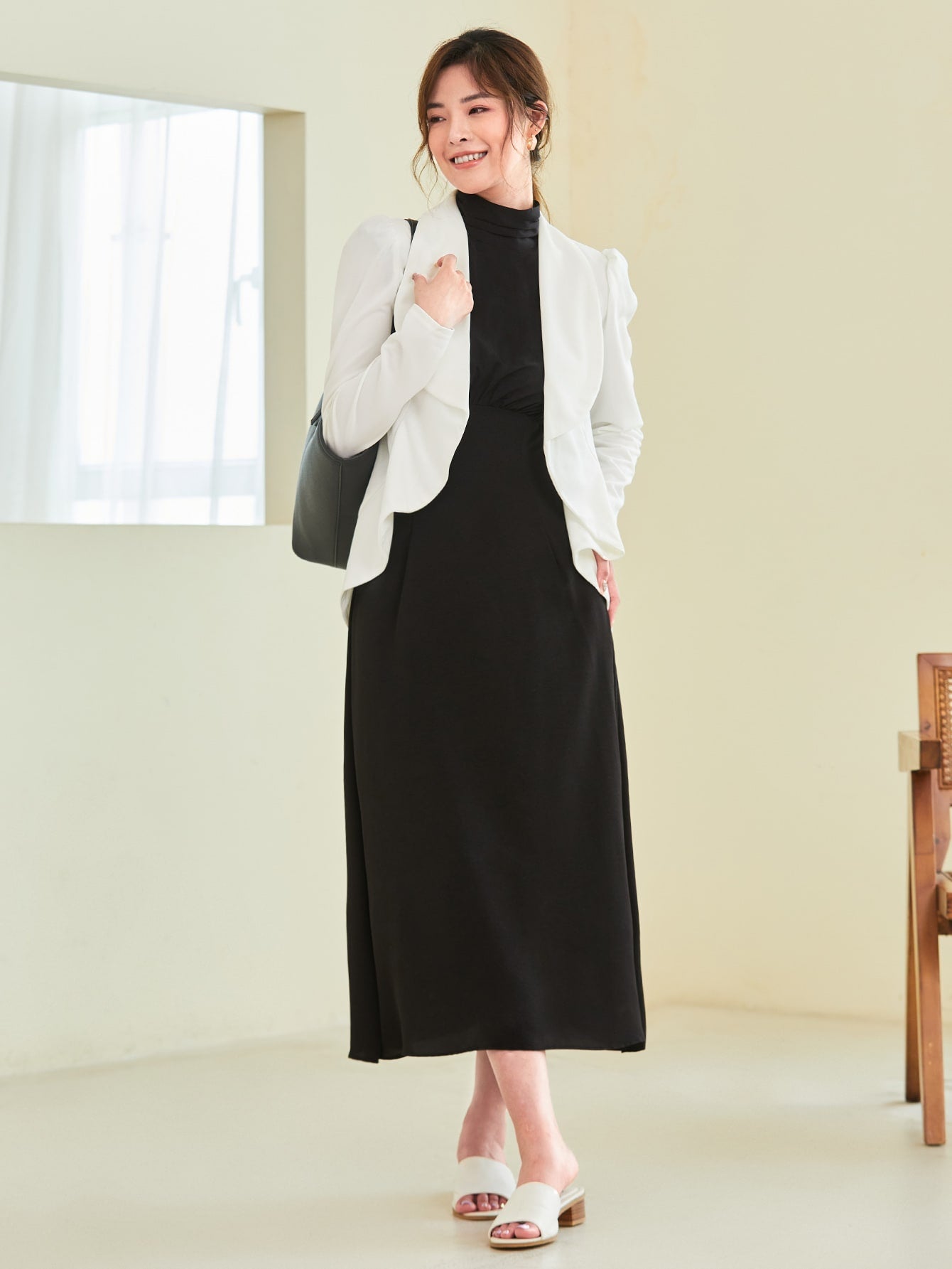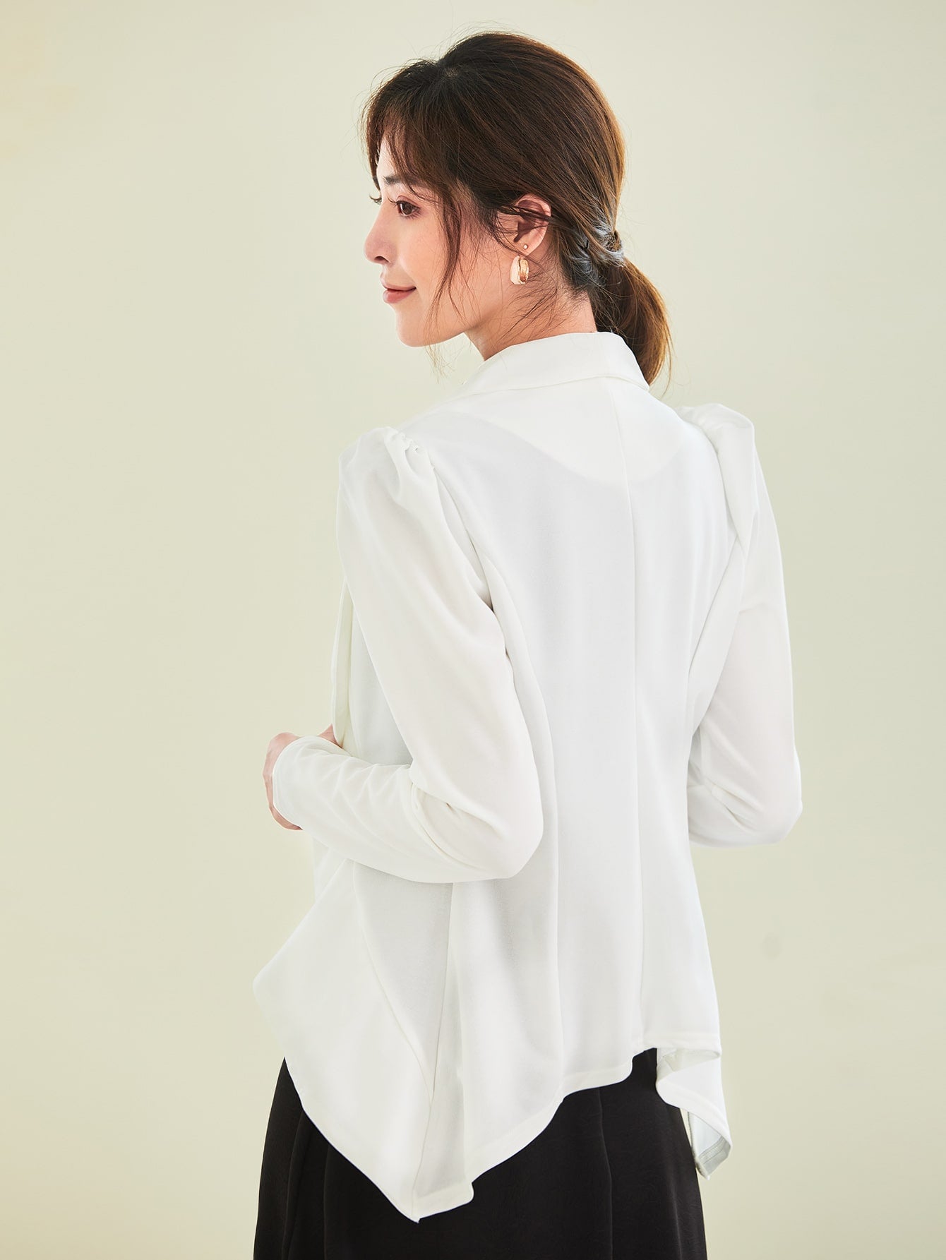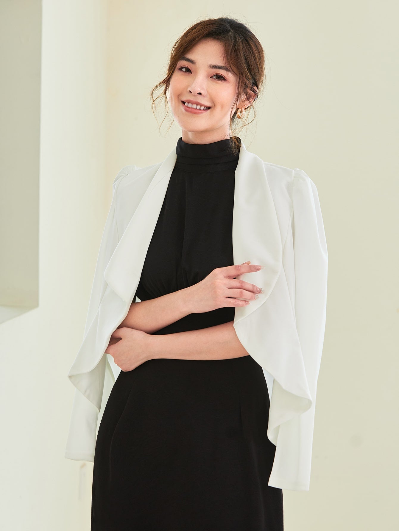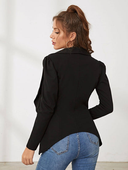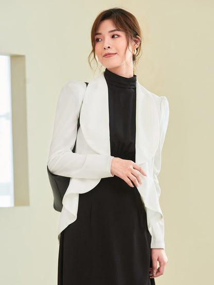 Shawl Collar Puff Sleeve Open Front Blazer Without Cami Top