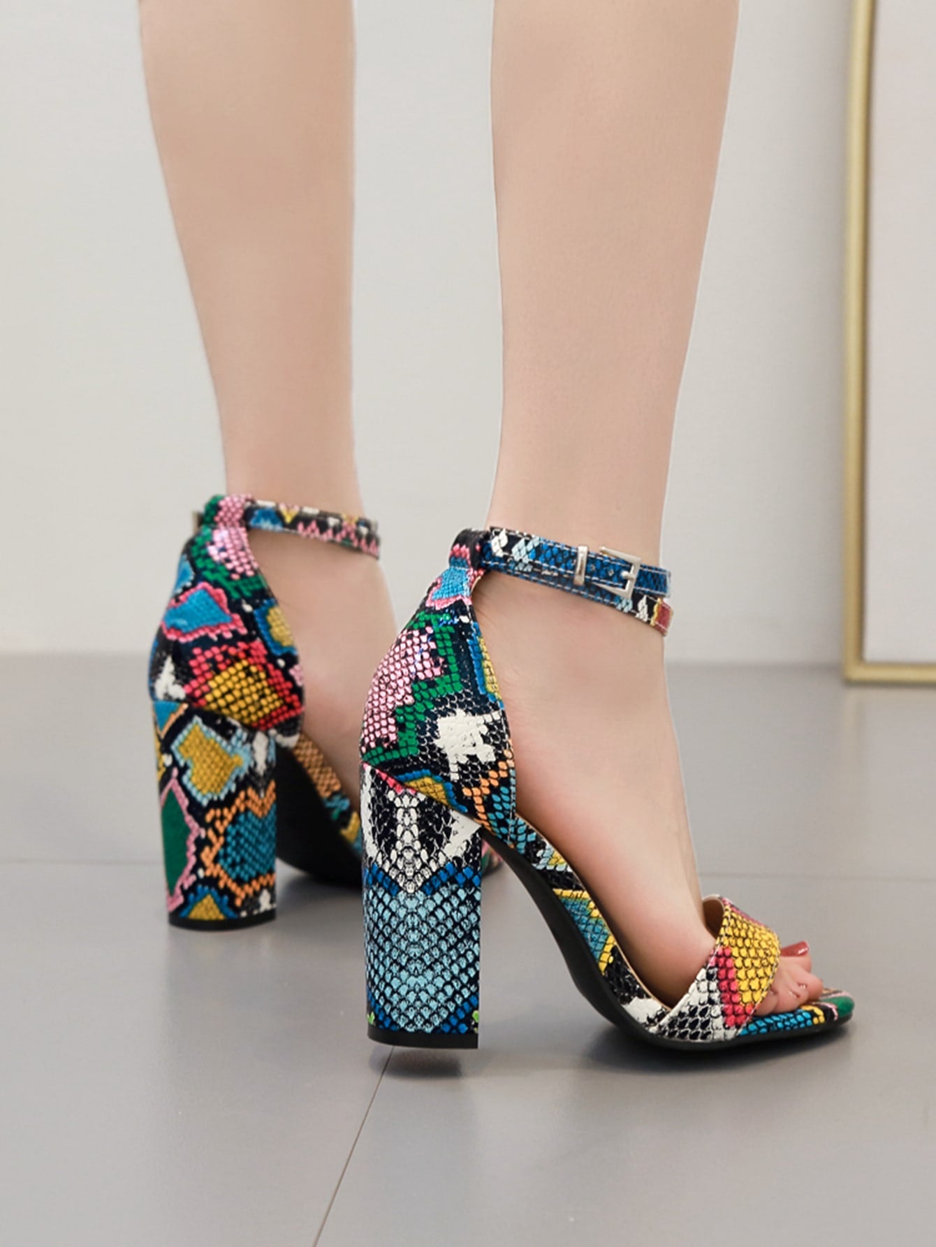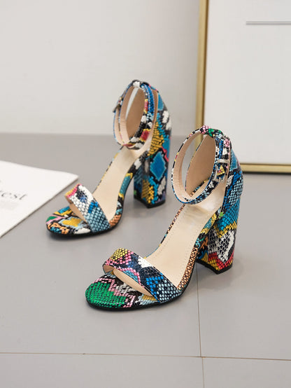 Snakeskin Chunky Heeled Sandals
