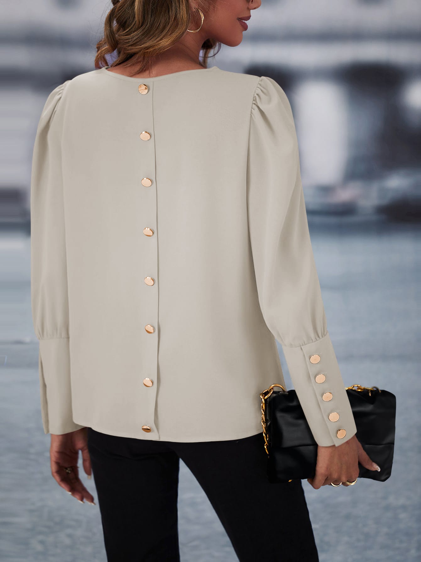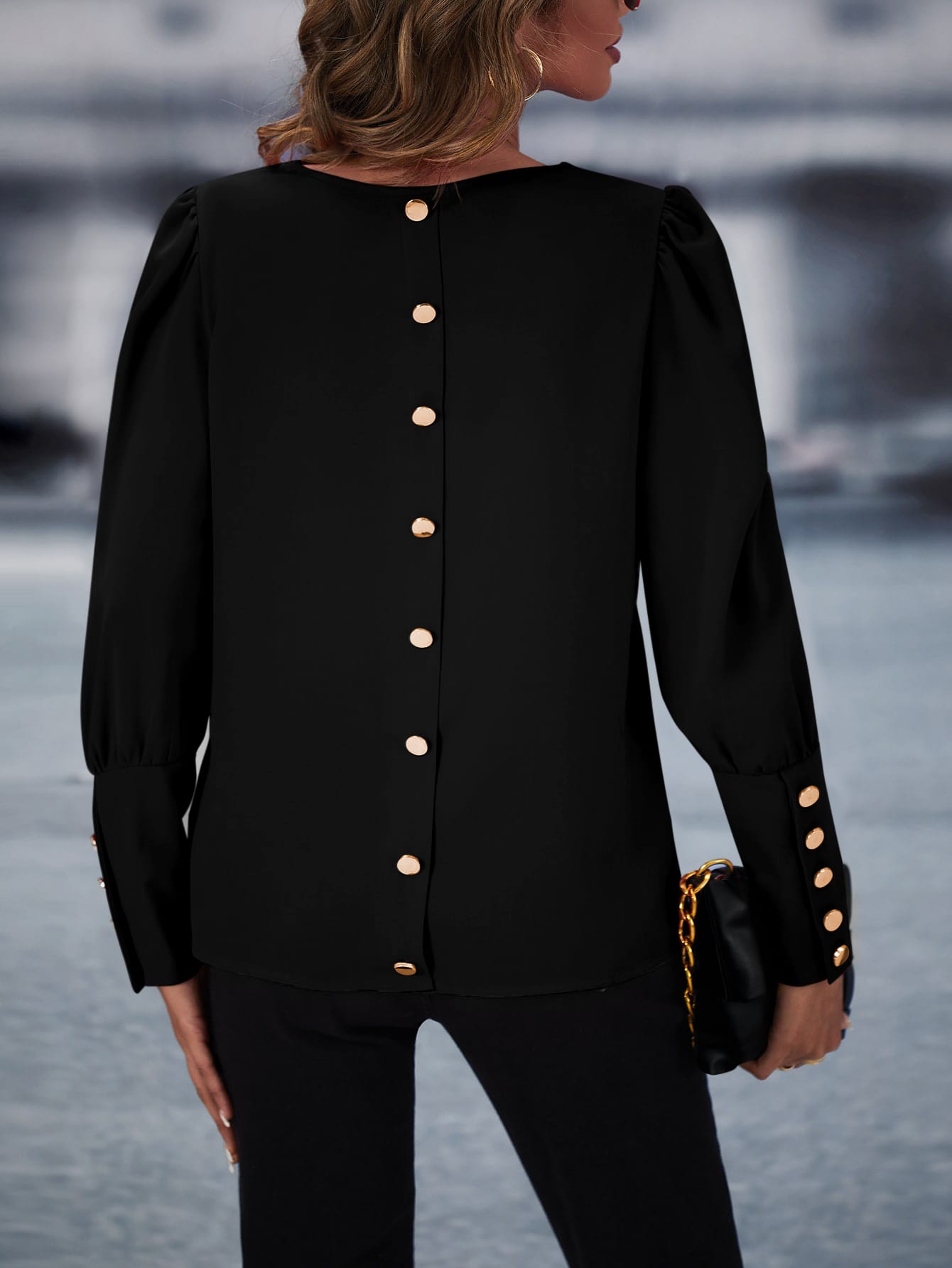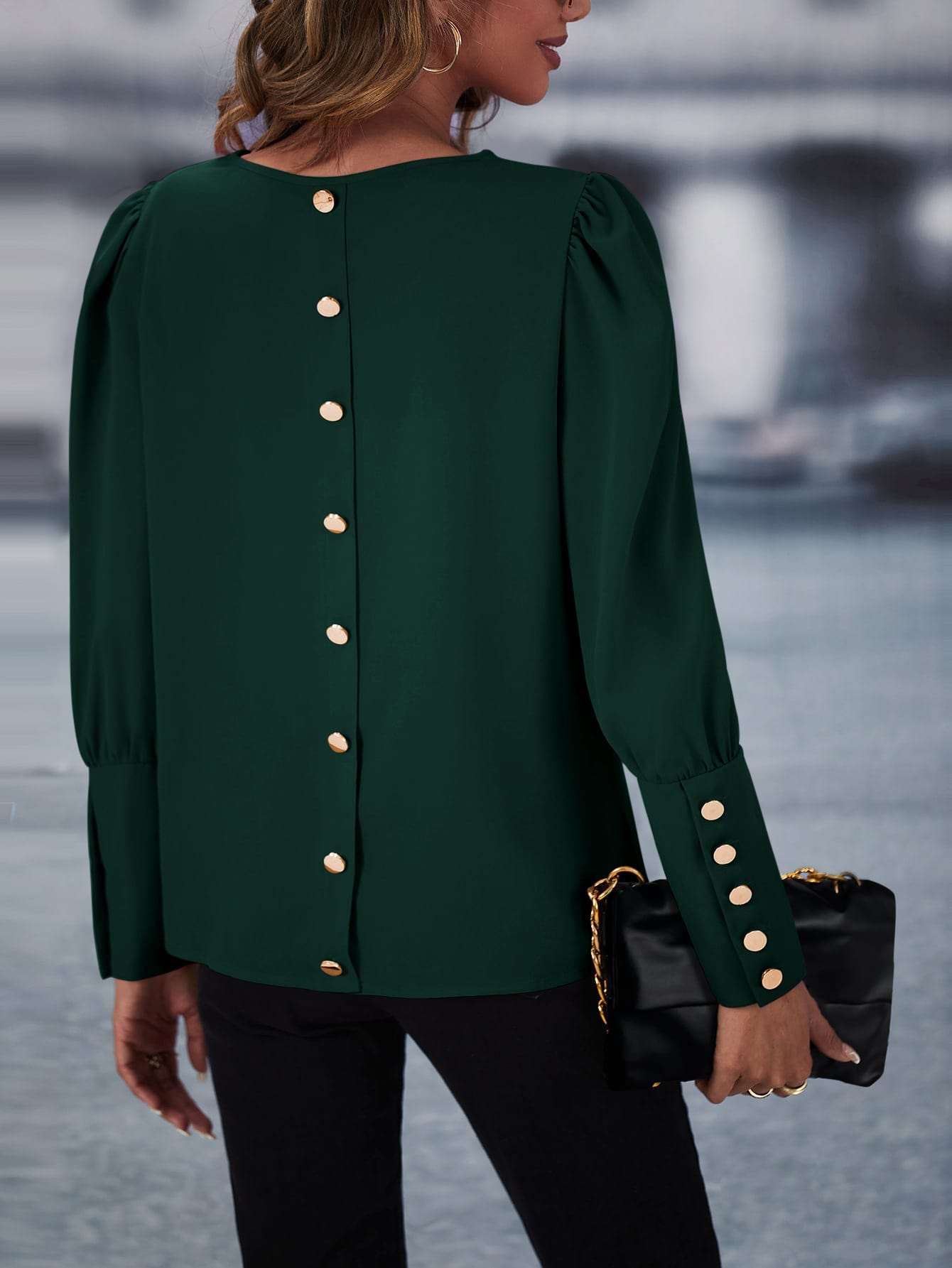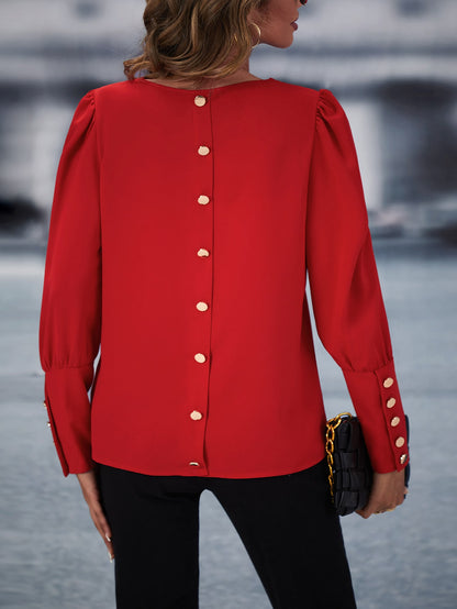 Solid Button Back Blouse