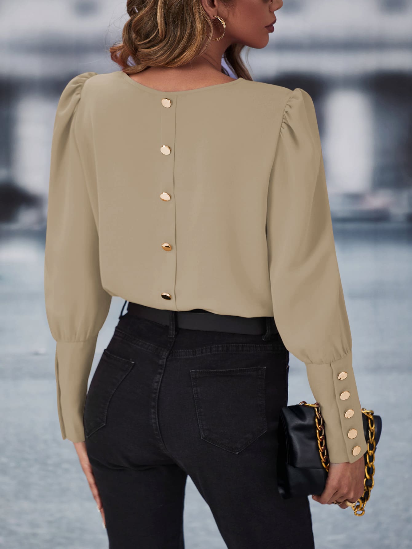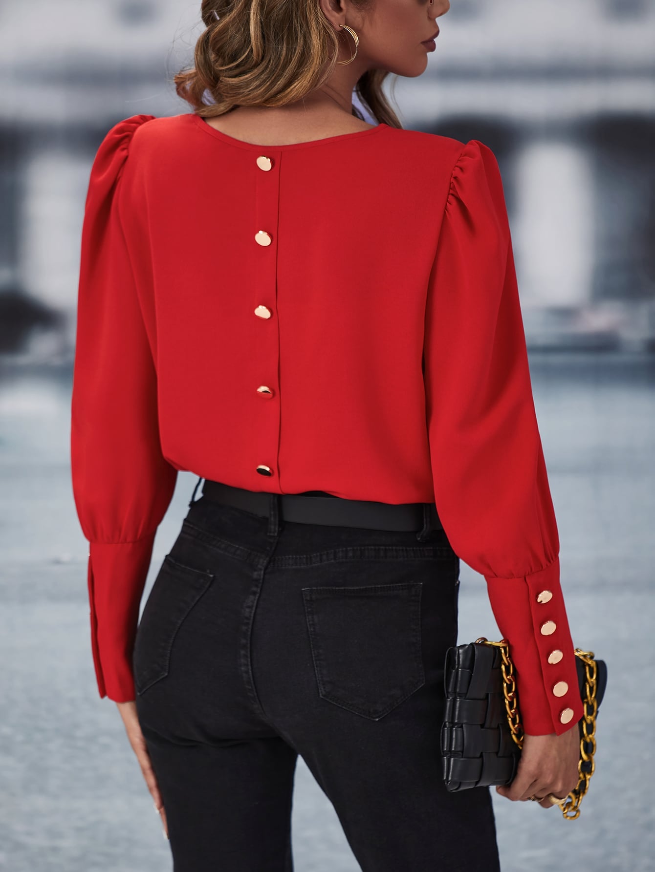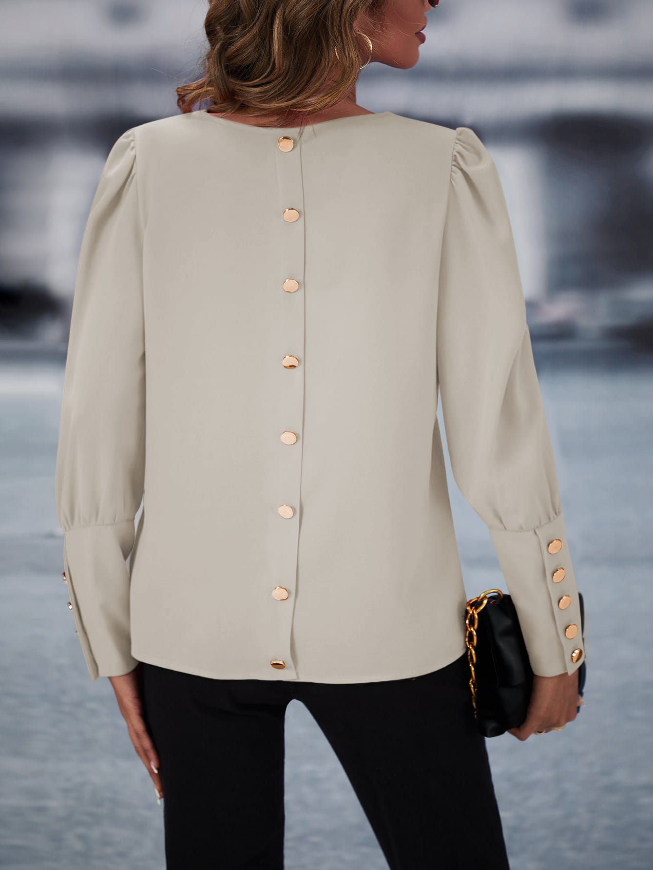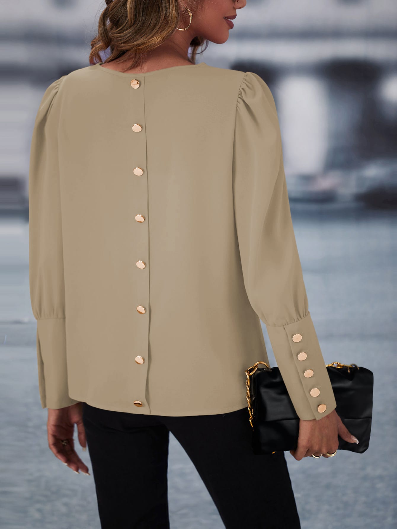 Solid Button Back Blouse
