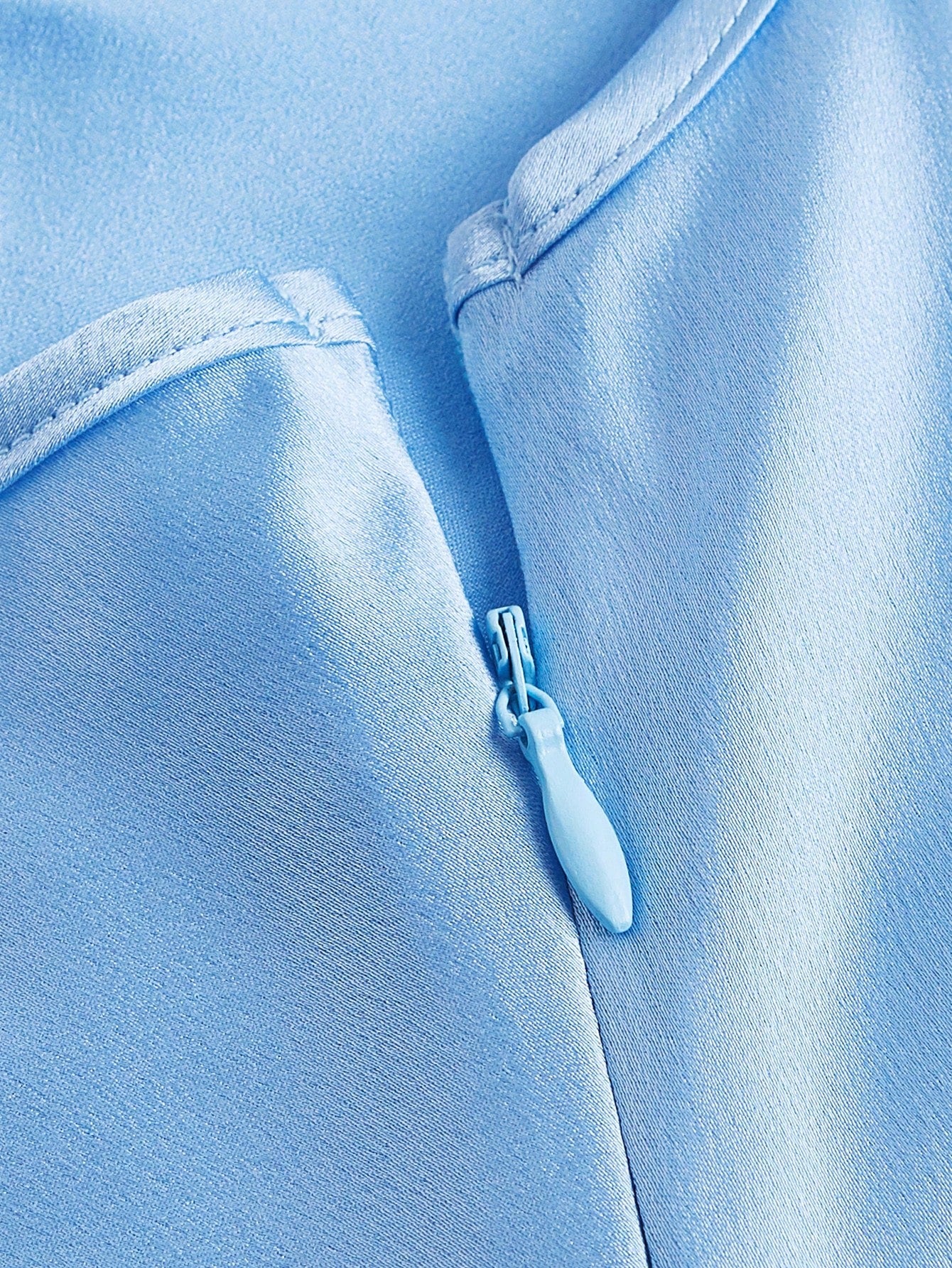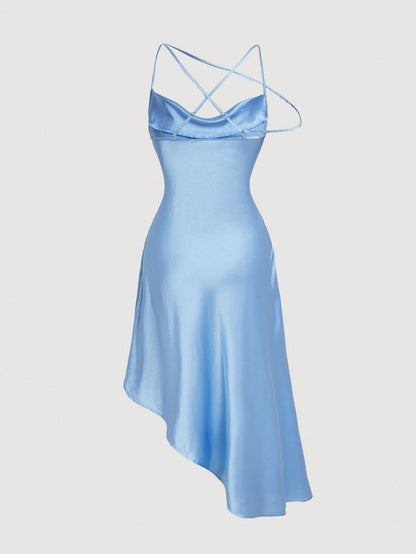 Solid Draped Collar Asymmetrical Hem Satin Cami Dress