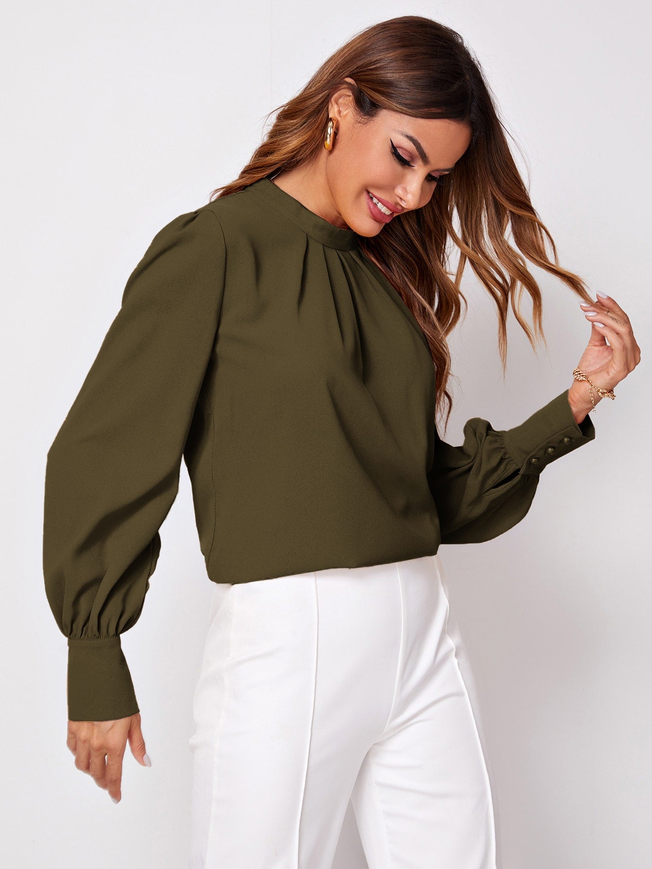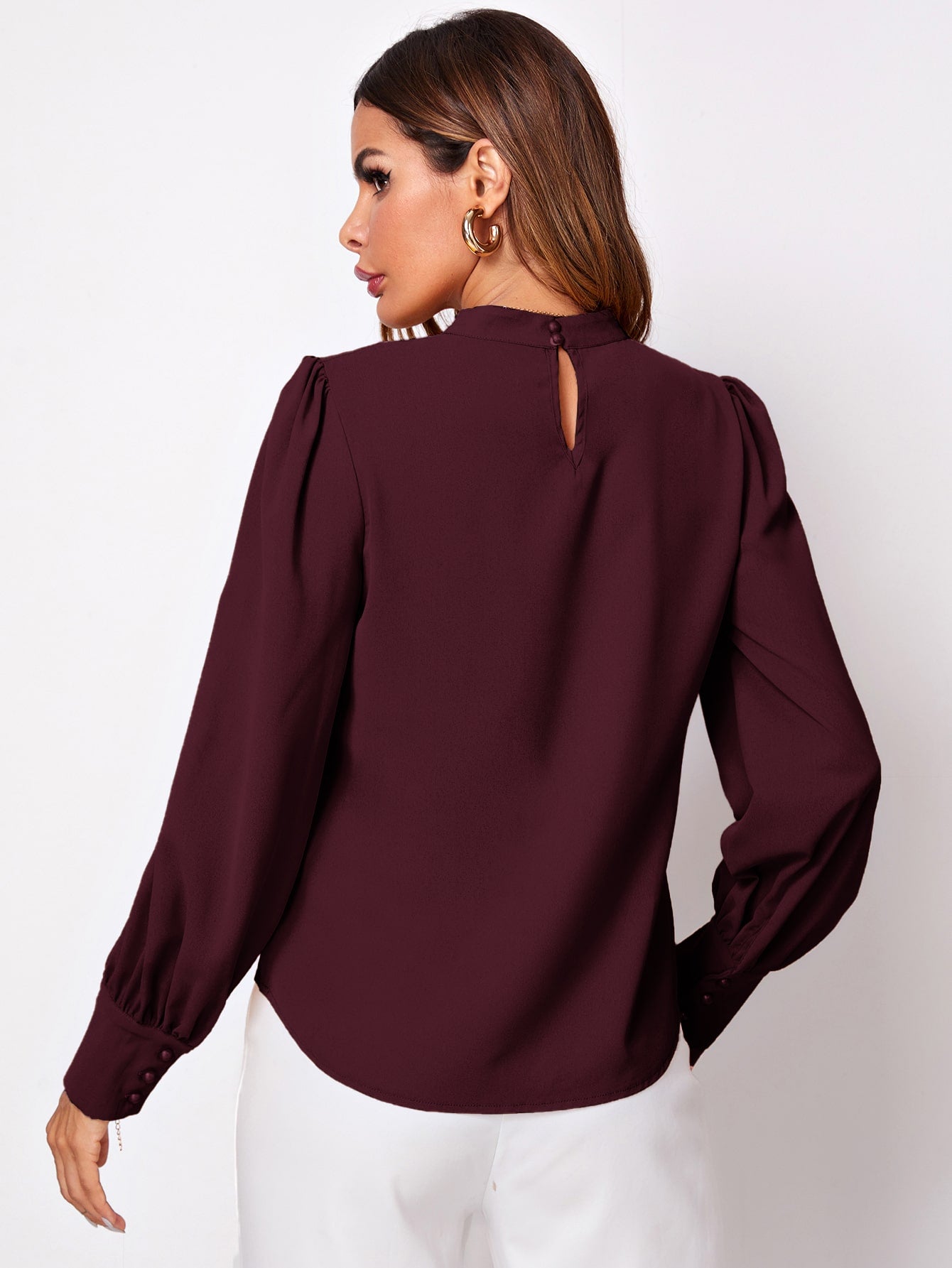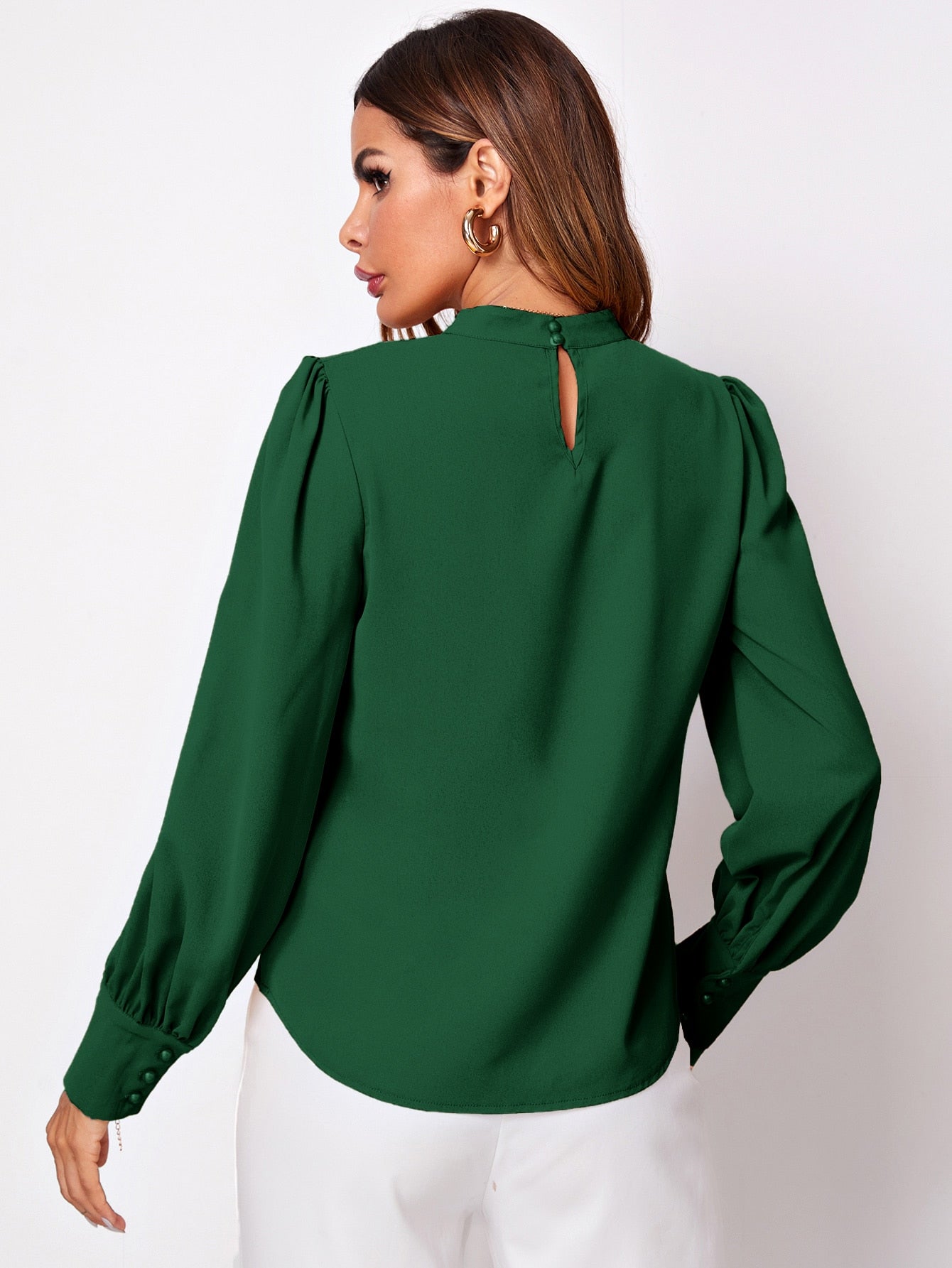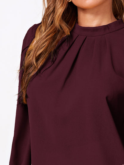 Solid Ruched Keyhole Back Blouse