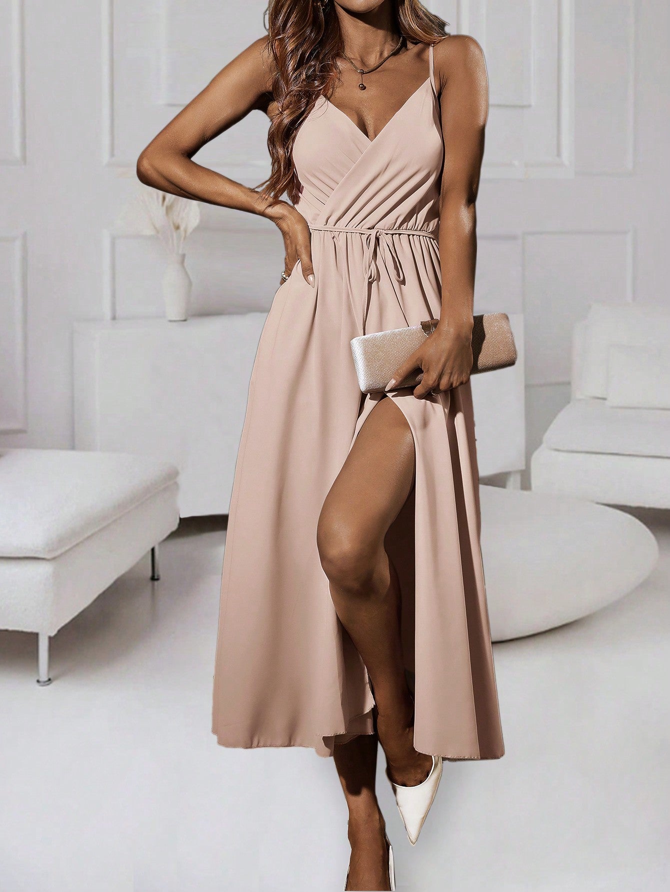 Solid Wrap Hem Cami Dress For Summer