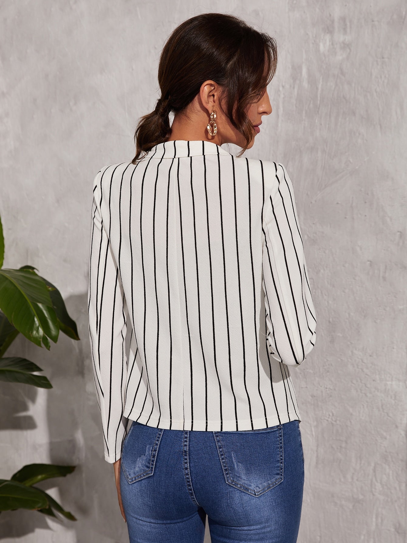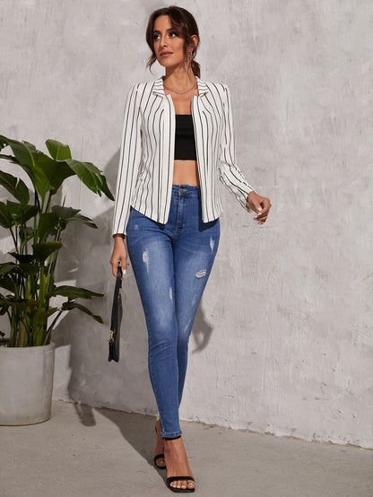 Striped V Wired Open Front Blazer