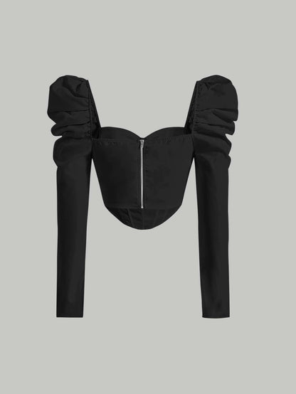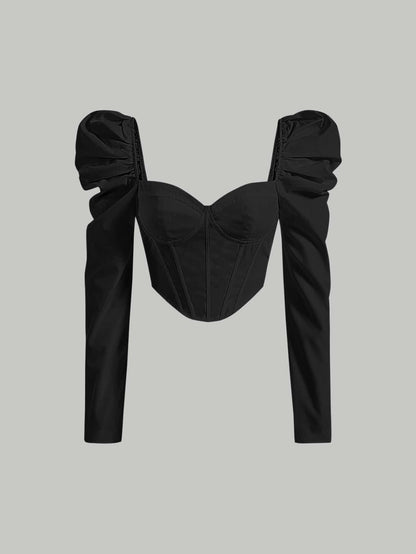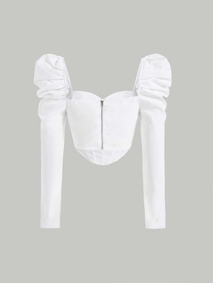 Sweetheart Neck Puff Sleeve Crop Blouse