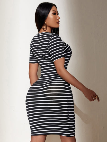SXY Striped Crew Neck Bodycon Dress