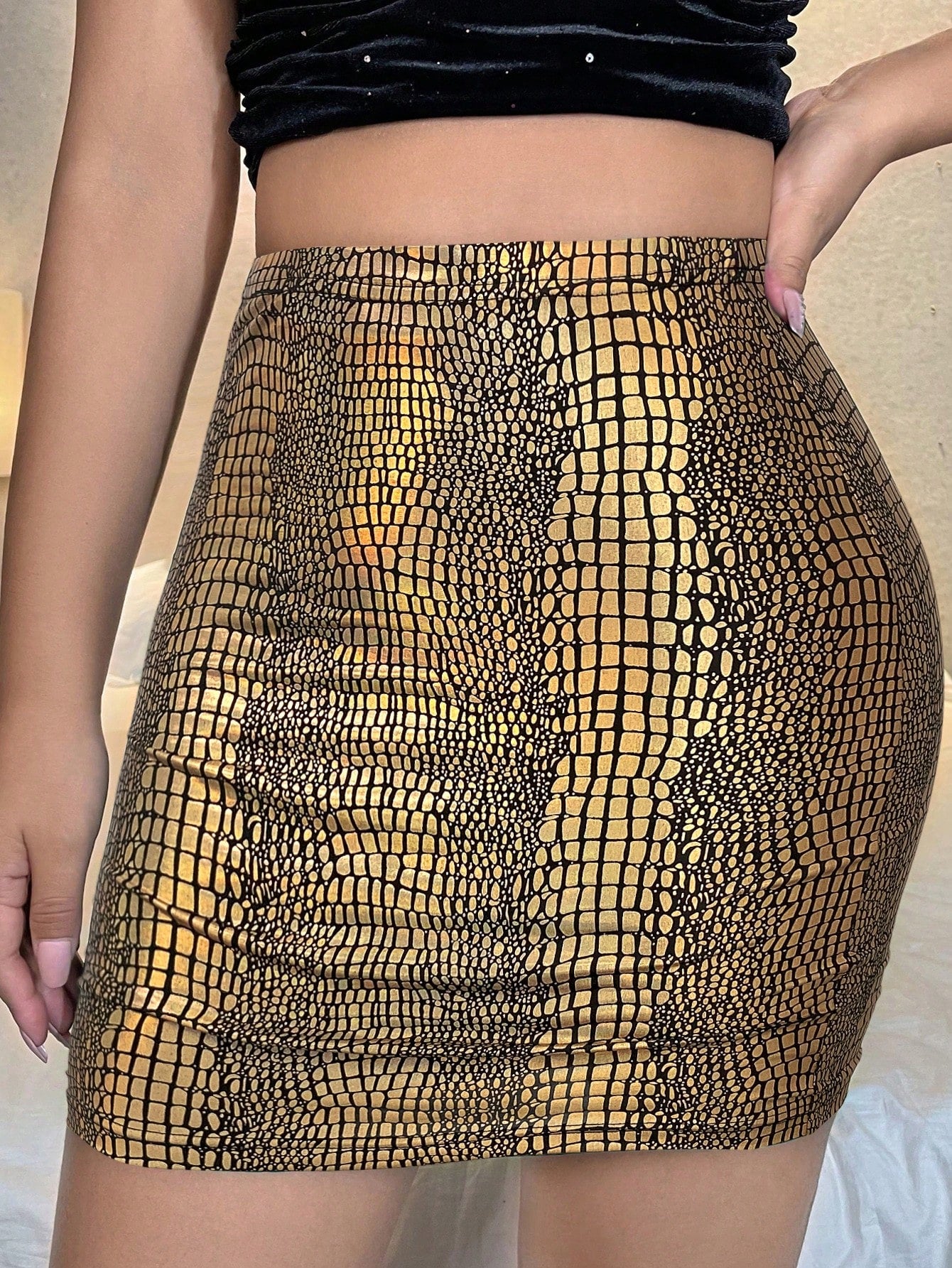 SXY Women's Crocodile Texture Faux Leather Skirt