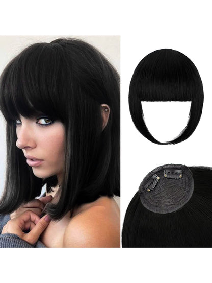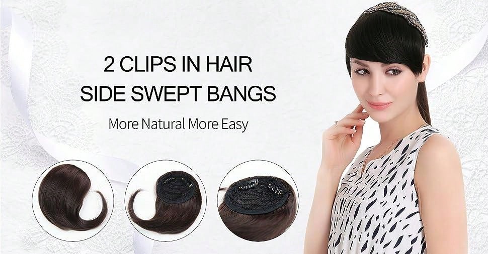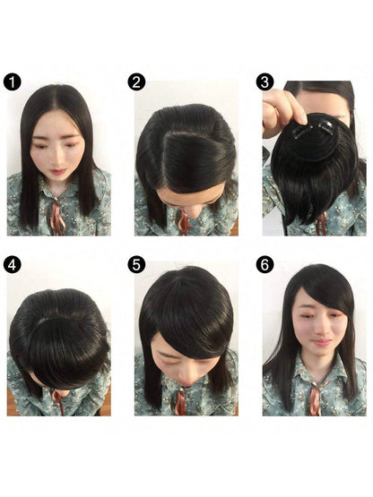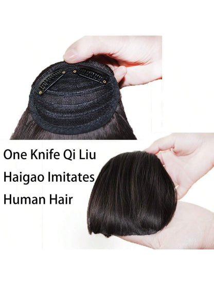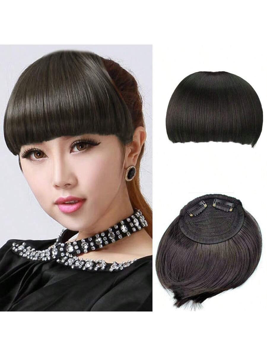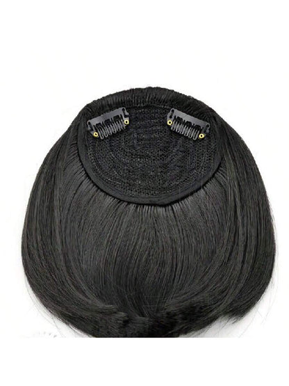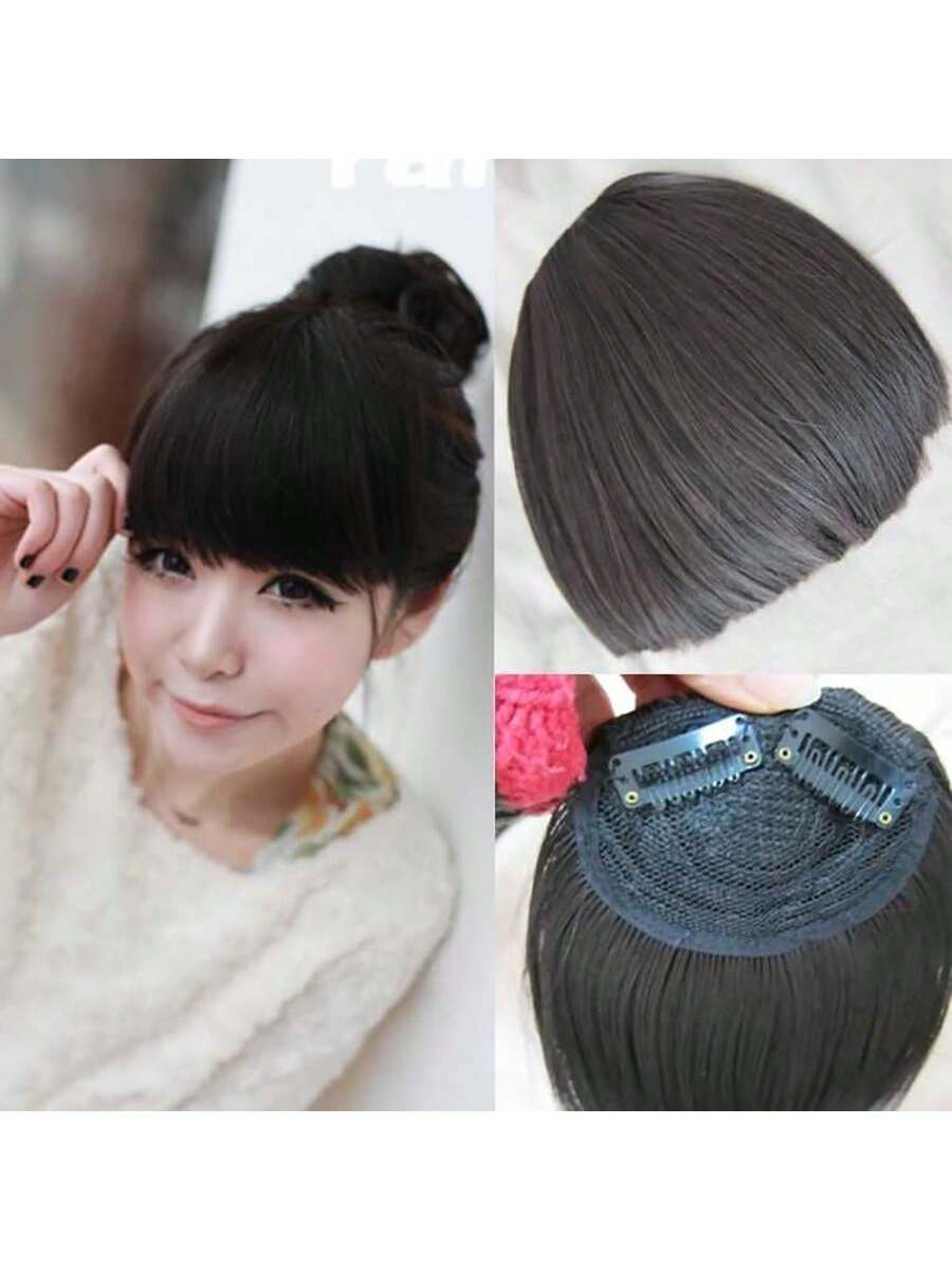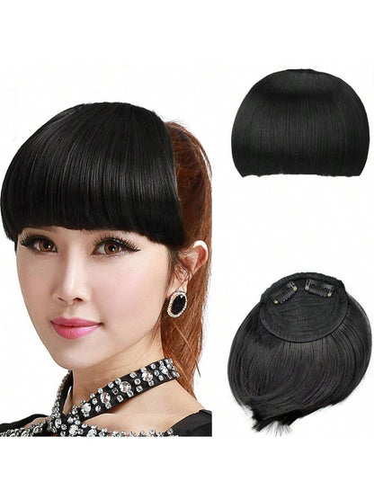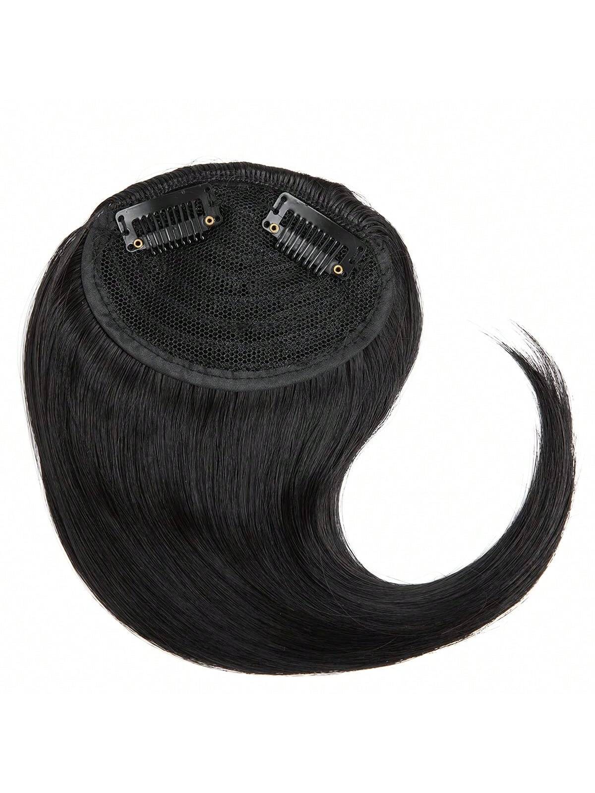 Thick Side Bangs Double Clips Synthetic Bangs Tassel Sweep Bangs Hair Extension Fashionable Natural Look Hair Accessory For Girls Black
