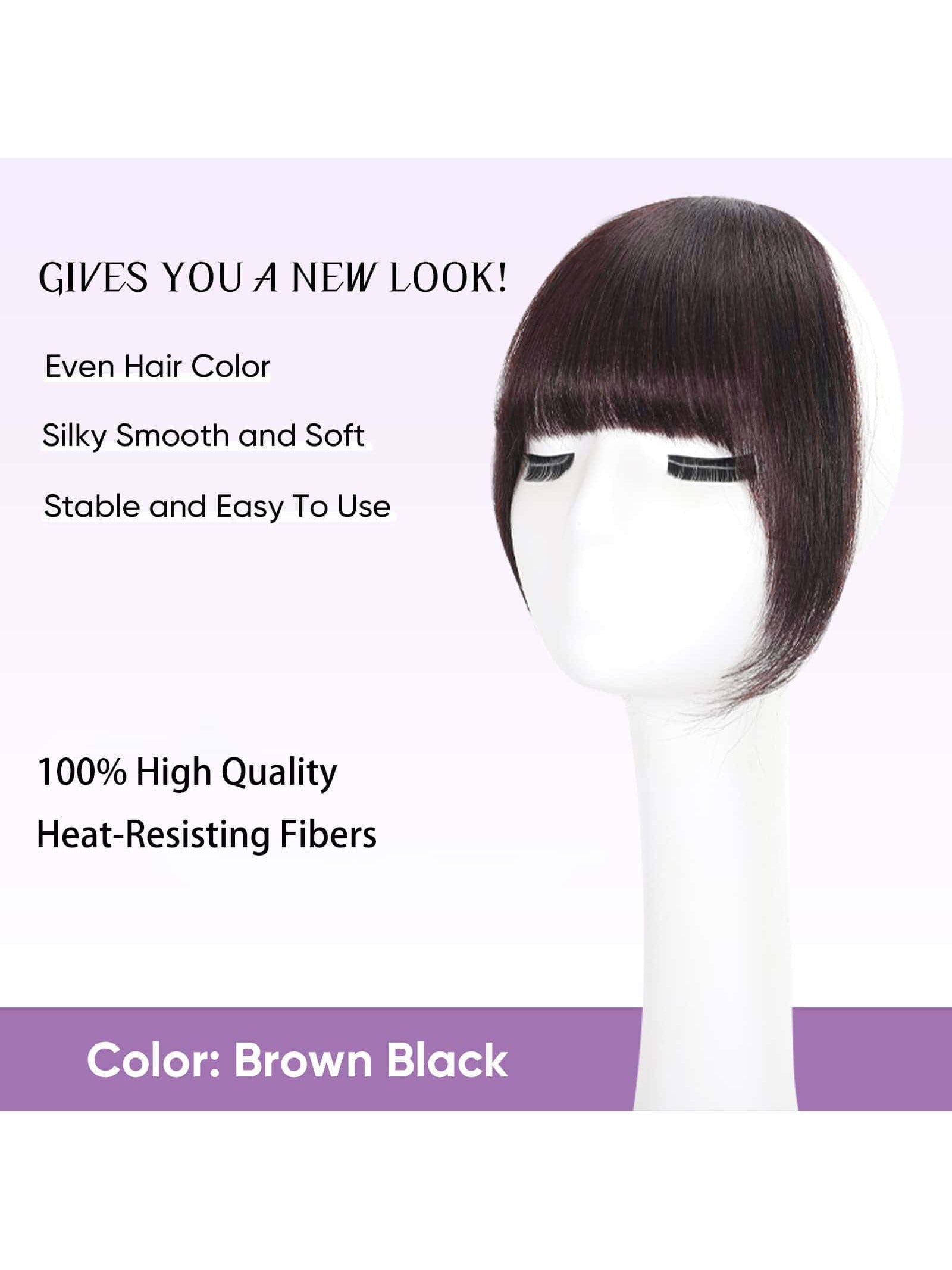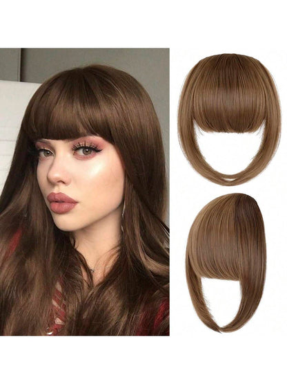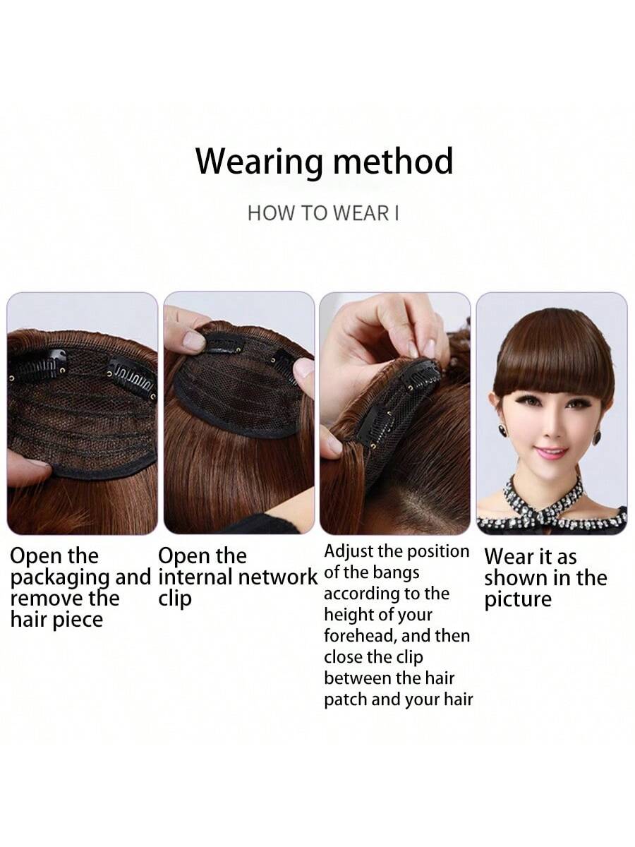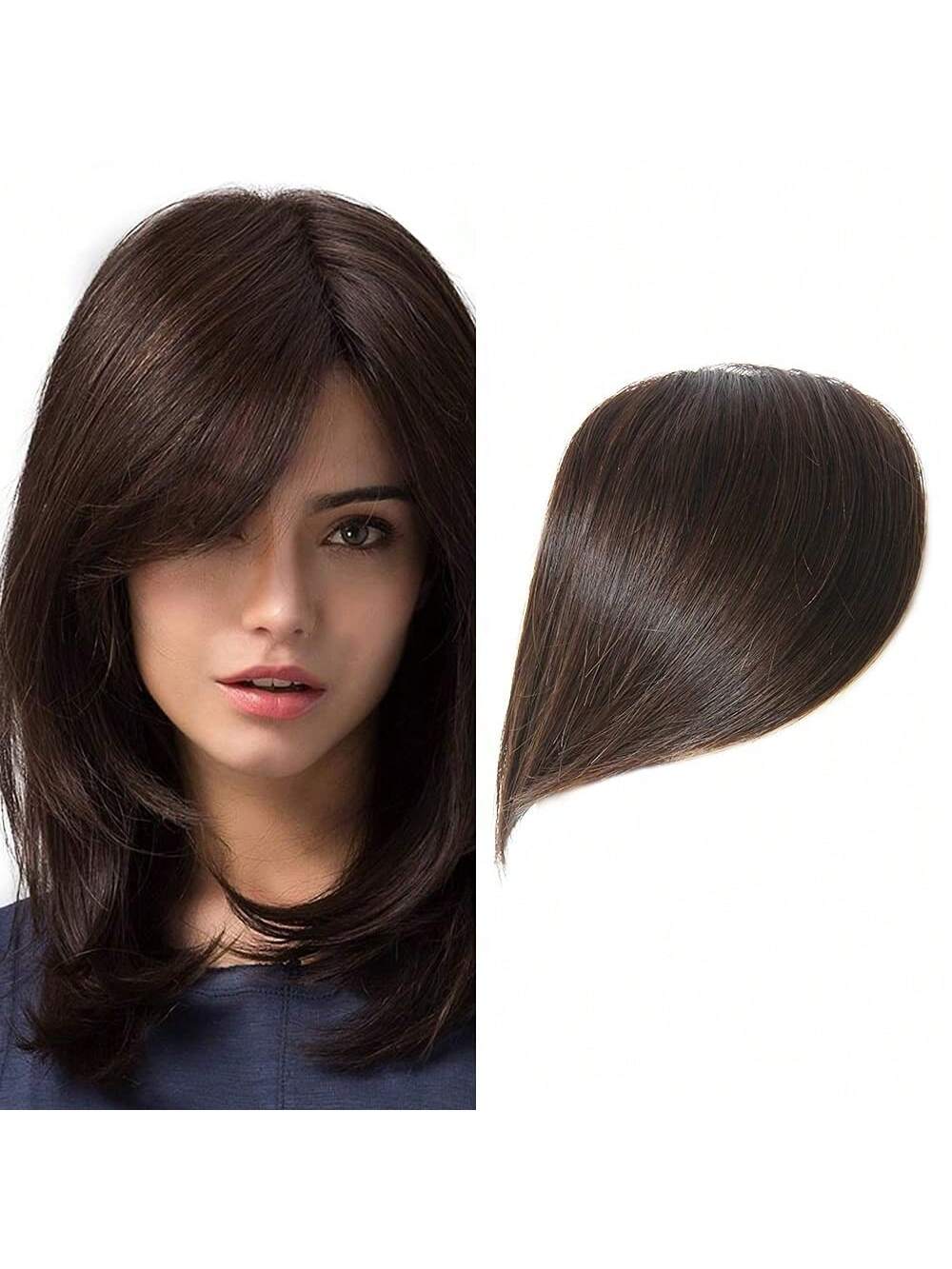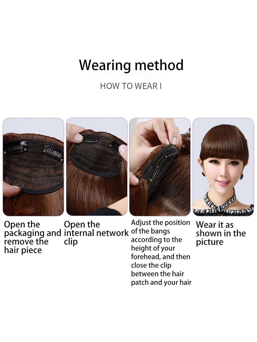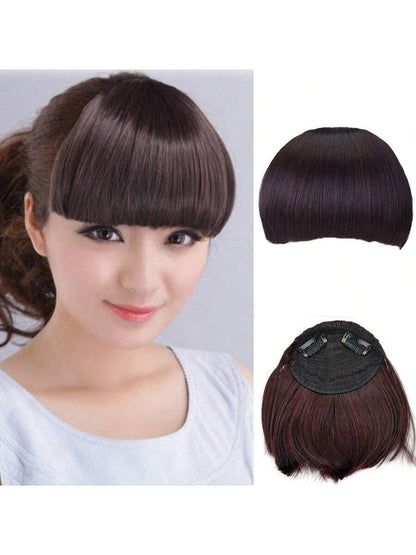 Thick Side Bangs Double Clips Synthetic Bangs Tassel Sweep Bangs Hair Extension Fashionable Natural Look Hair Accessory For Girls Black