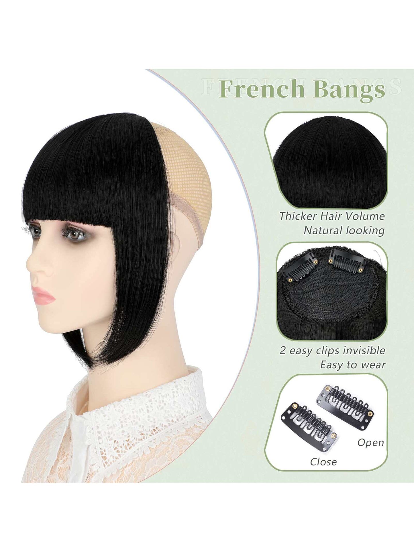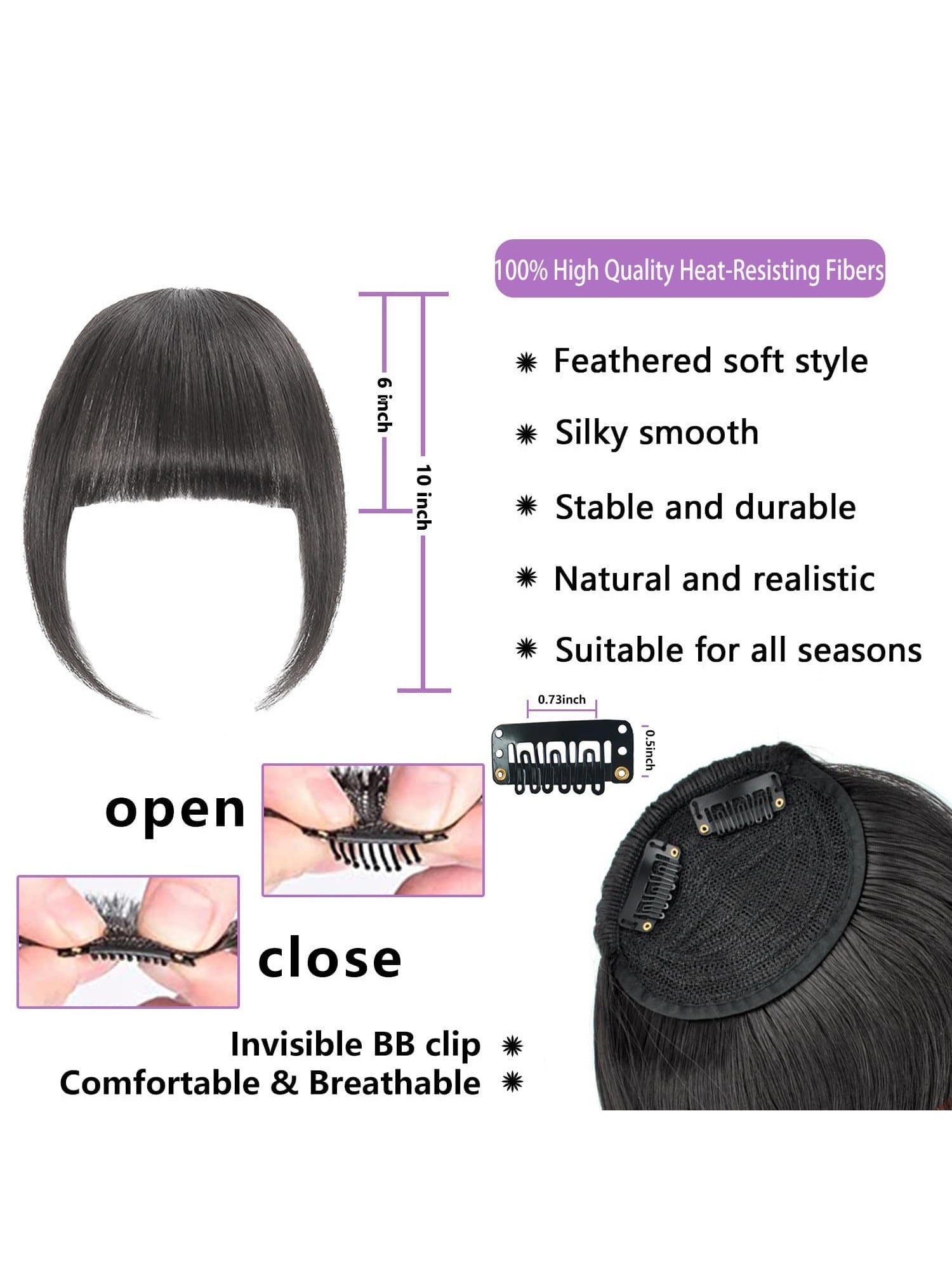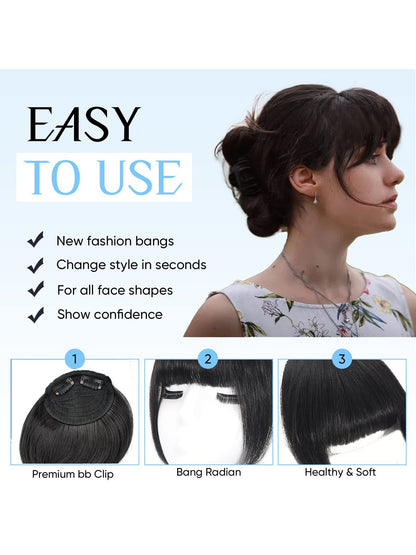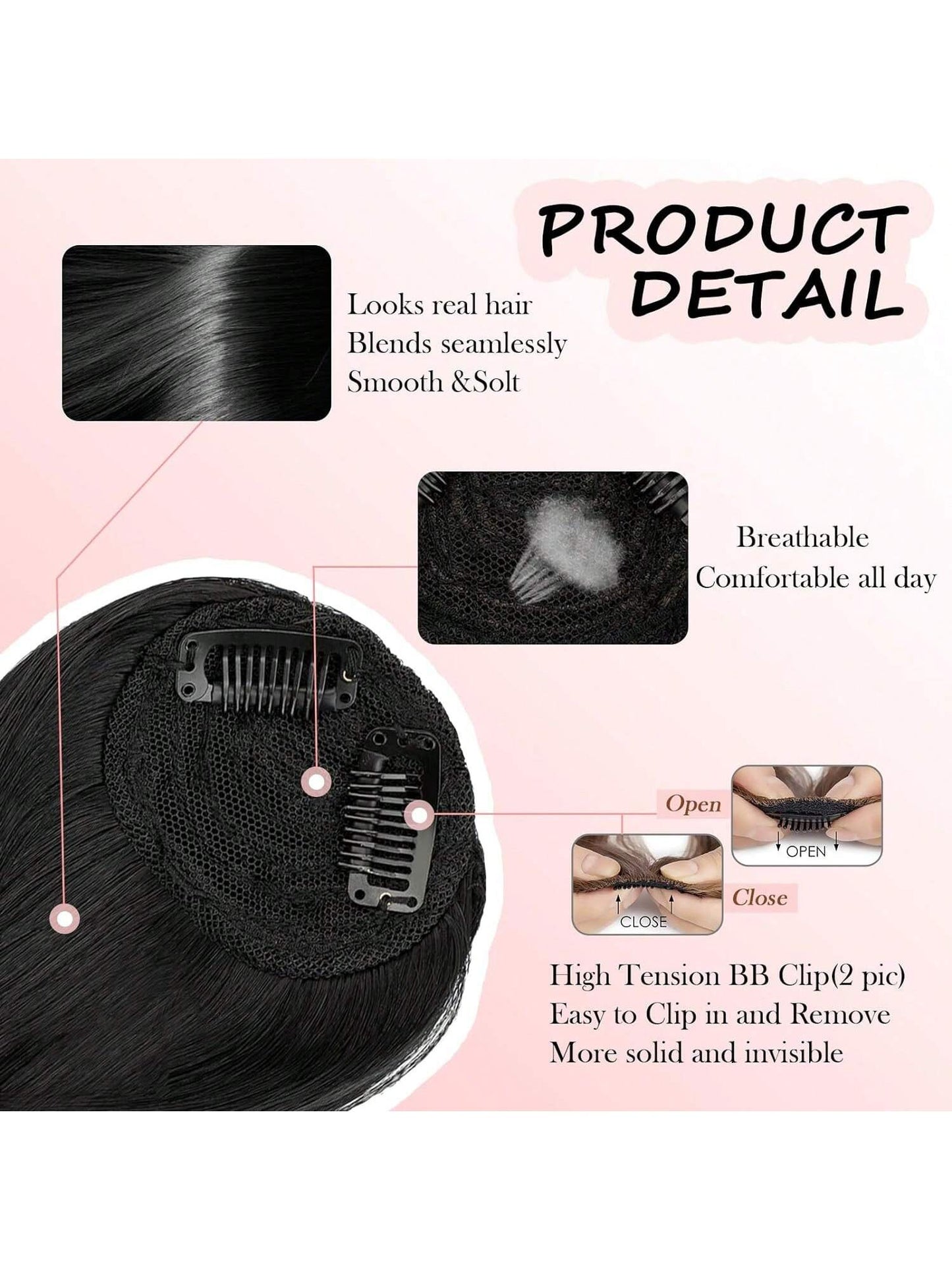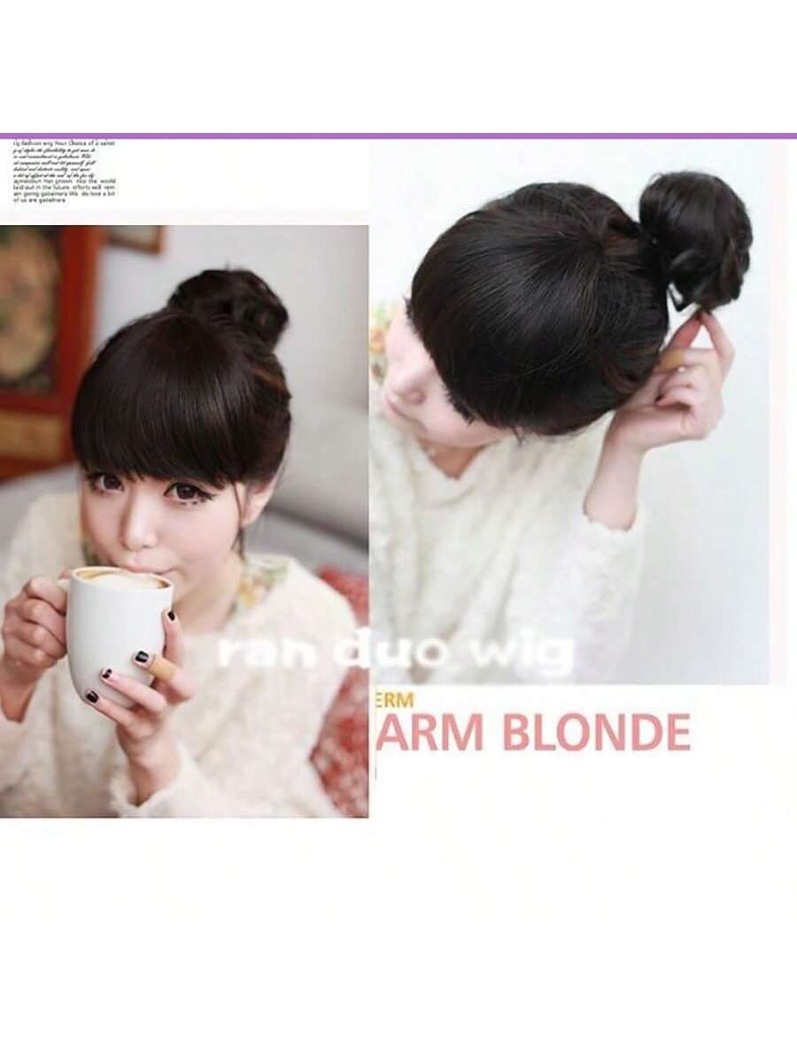 Thick Side Bangs Double Clips Synthetic Bangs Tassel Sweep Bangs Hair Extension Fashionable Natural Look Hair Accessory For Girls Black