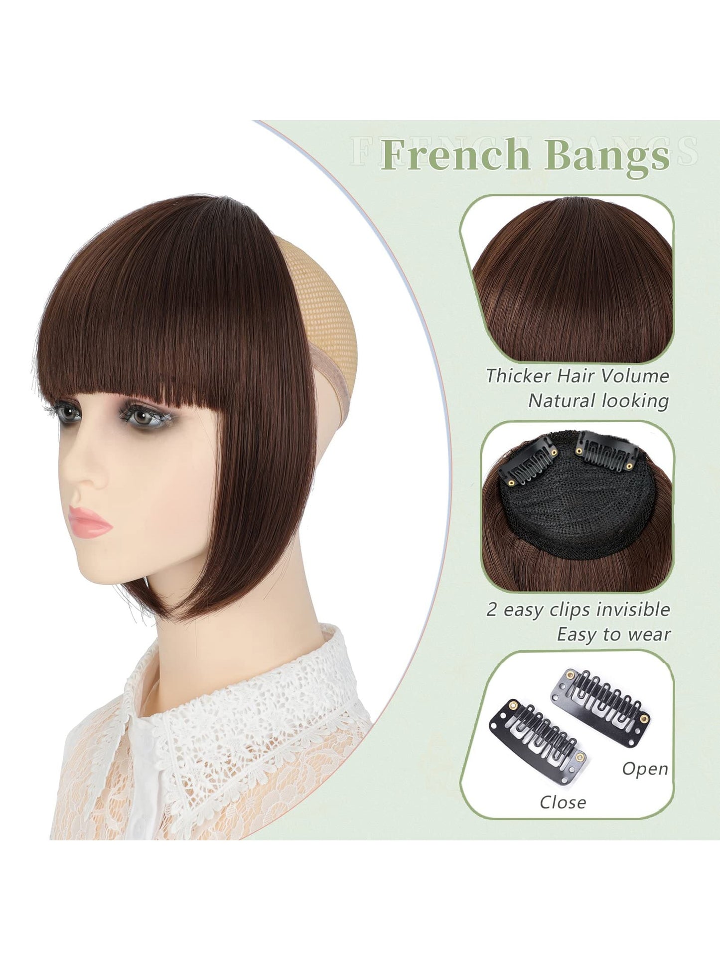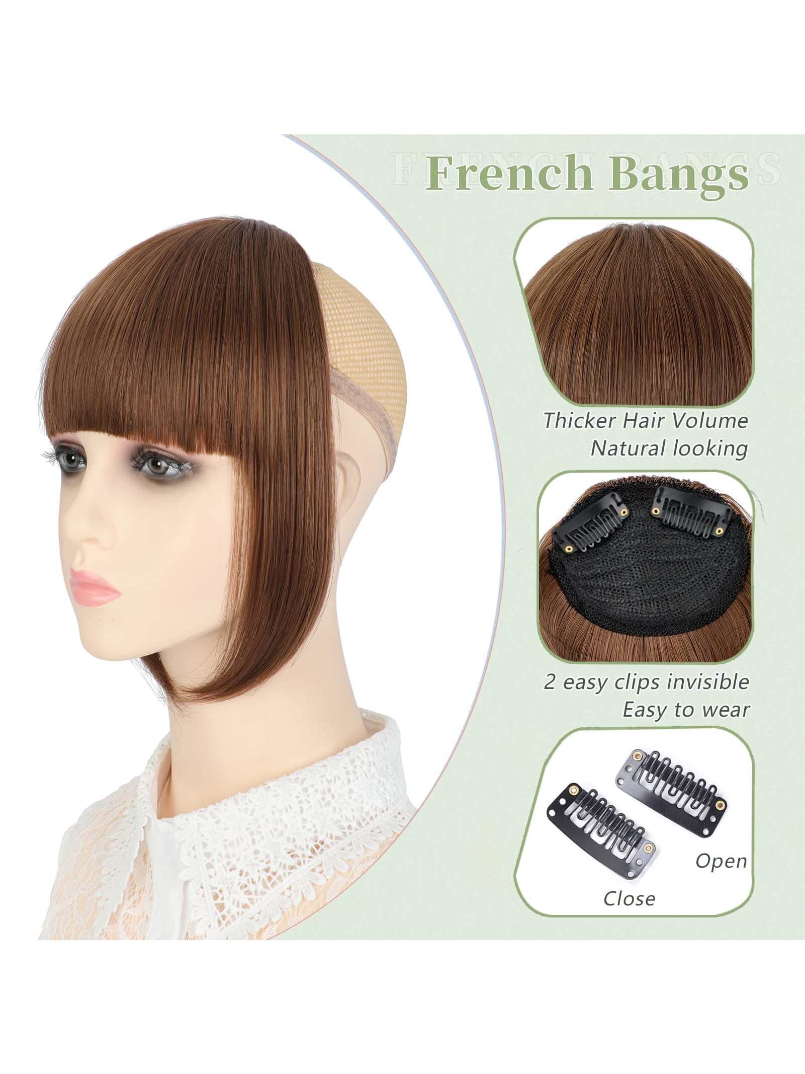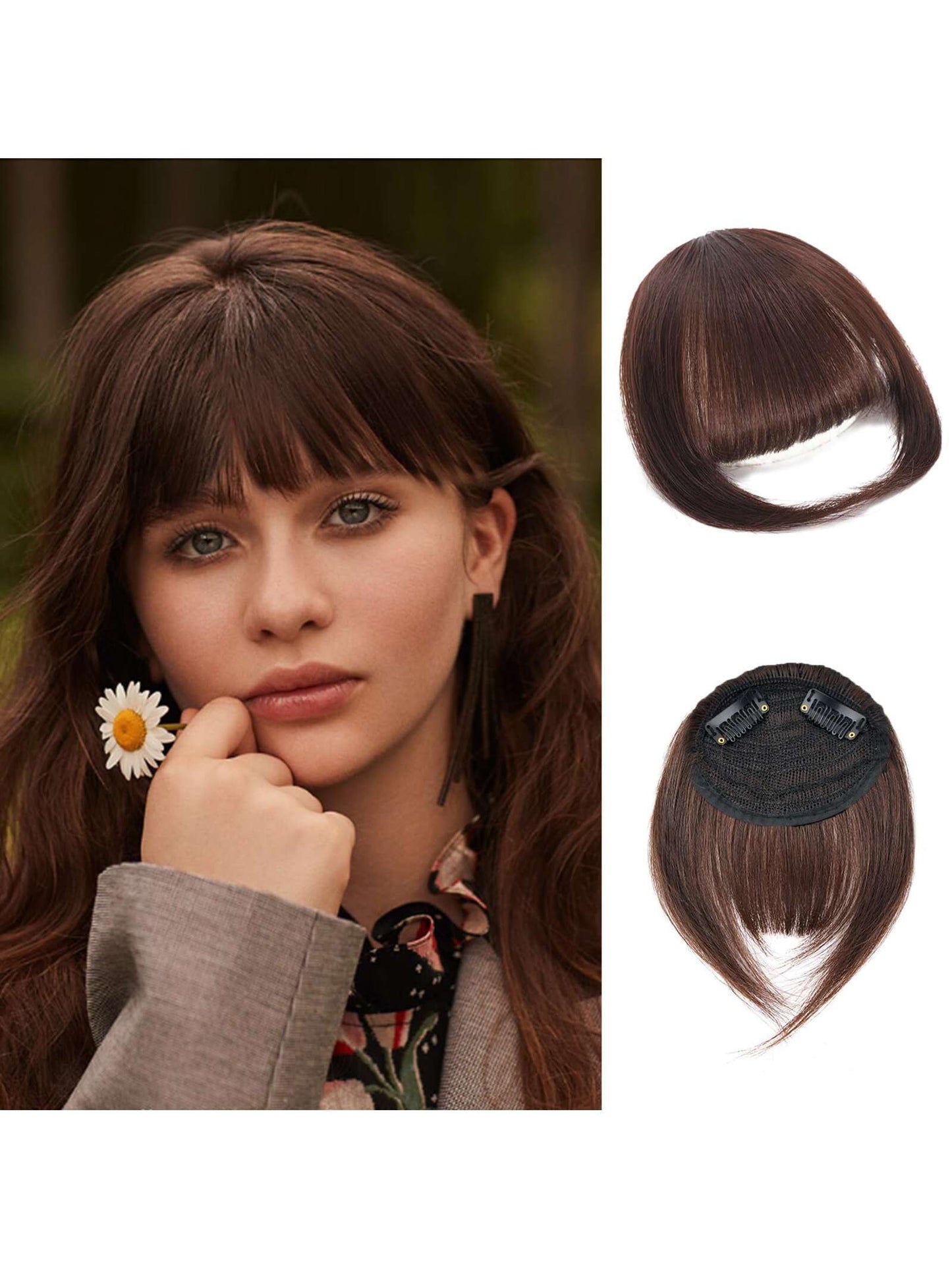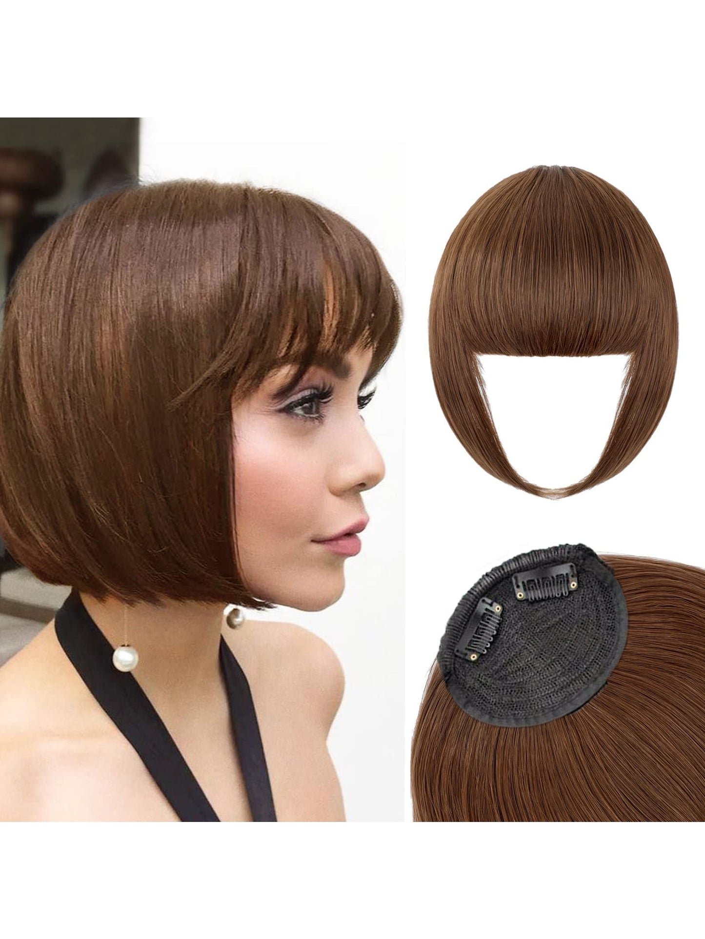 Thick Side Bangs Double Clips Synthetic Bangs Tassel Sweep Bangs Hair Extension Fashionable Natural Look Hair Accessory For Girls Black