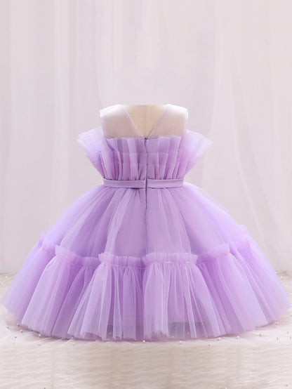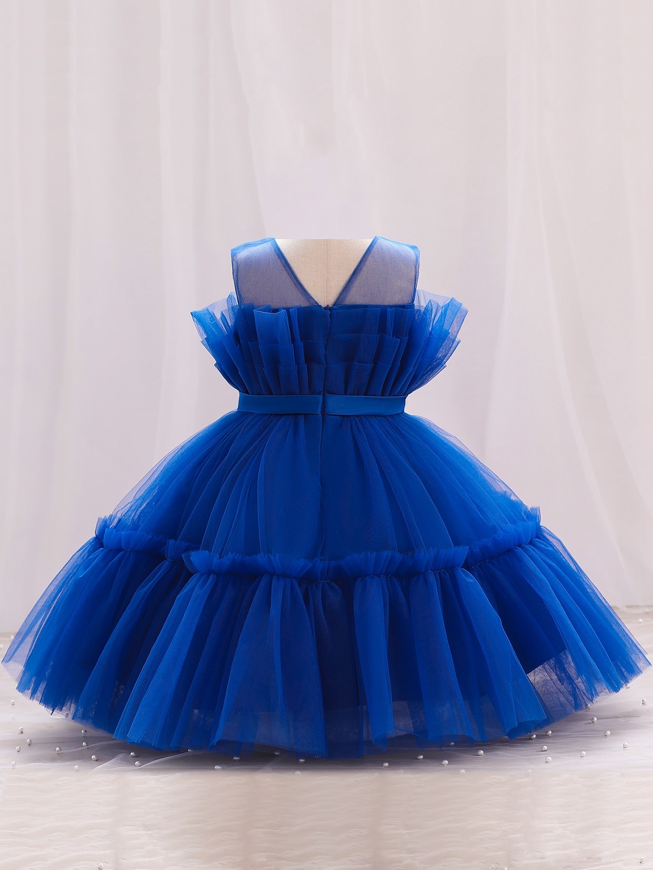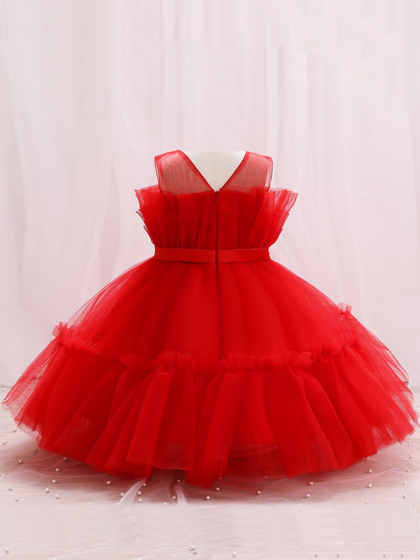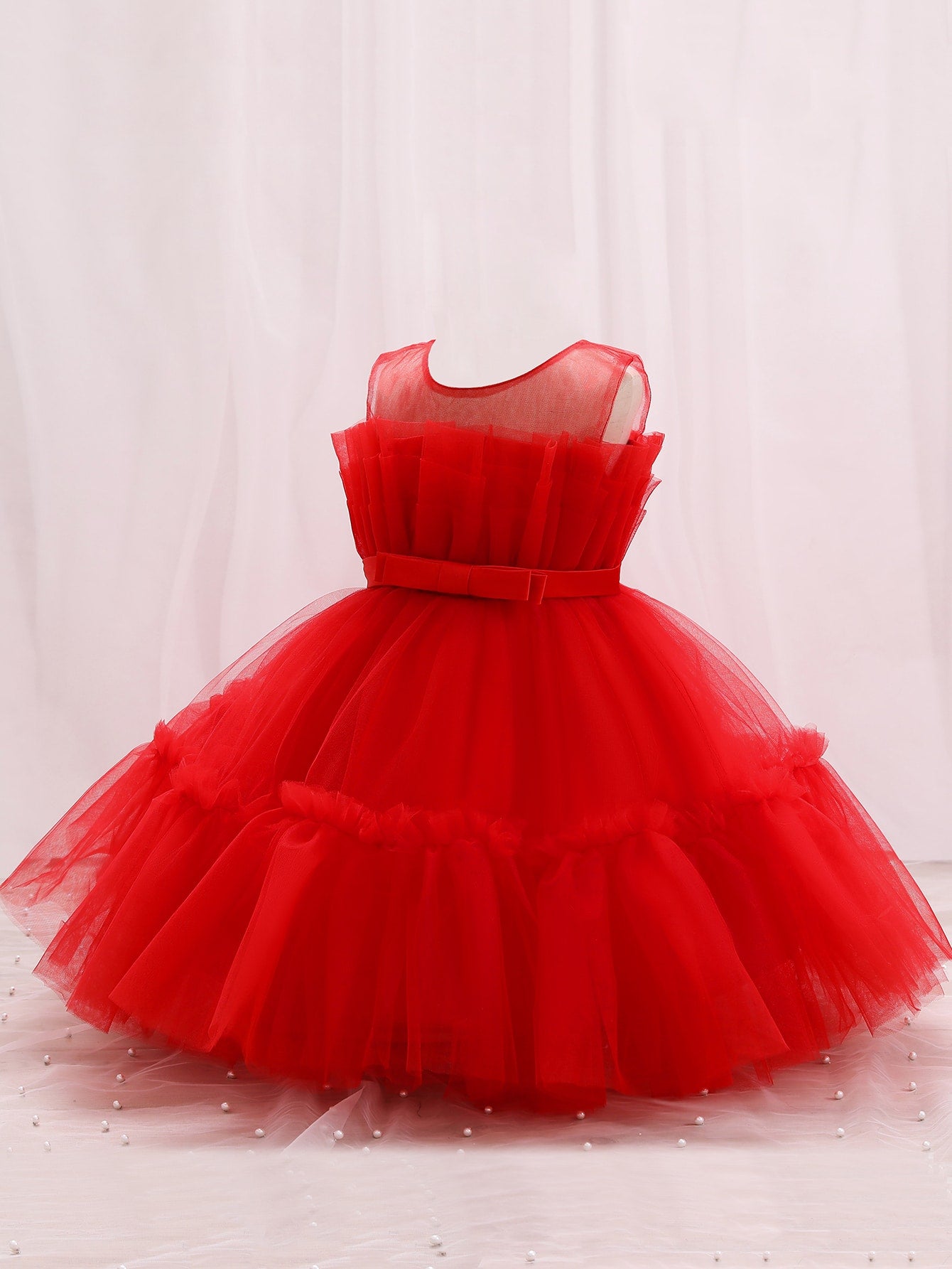 Toddler Girls Bow Front Ruffle Hem Mesh Gown Dress