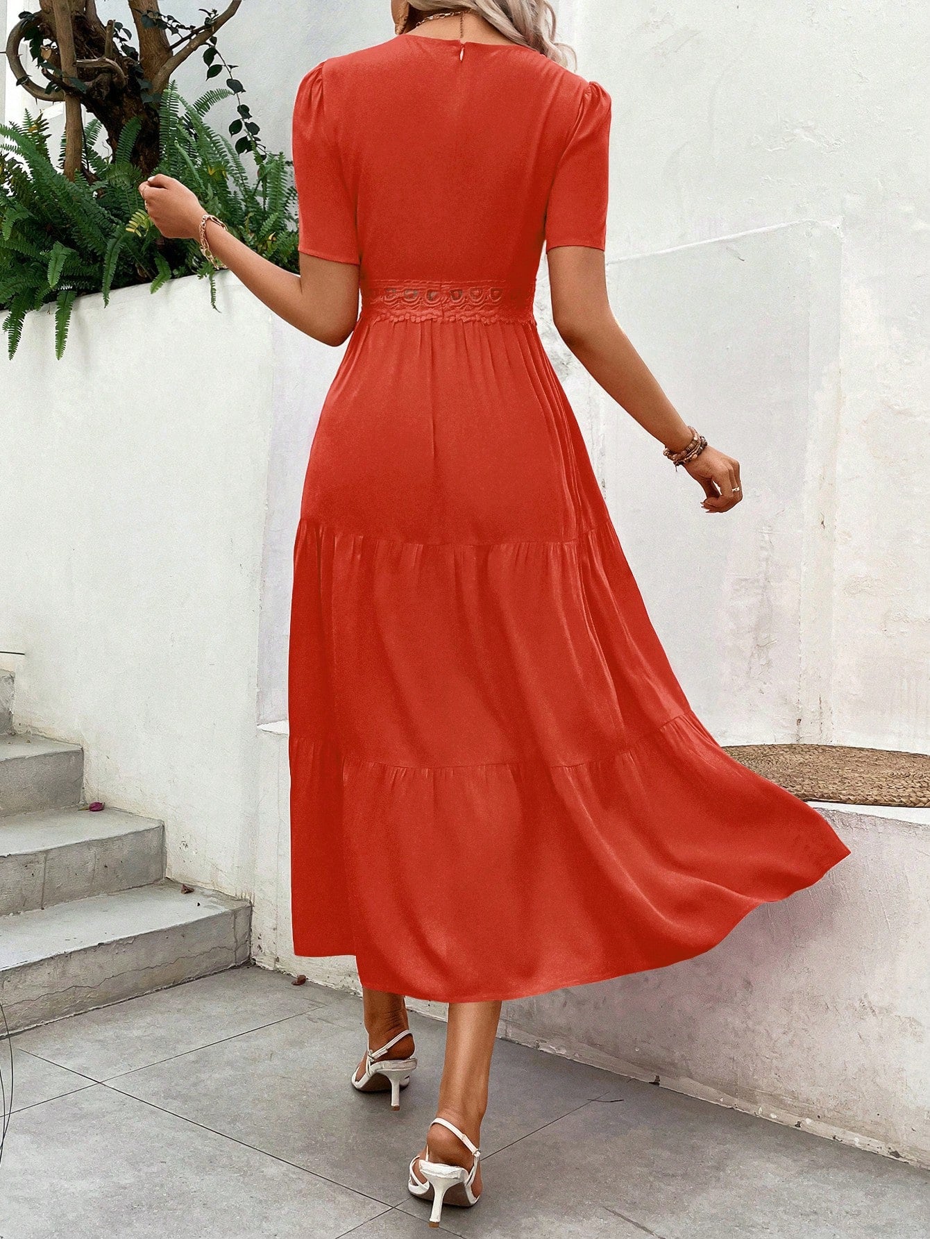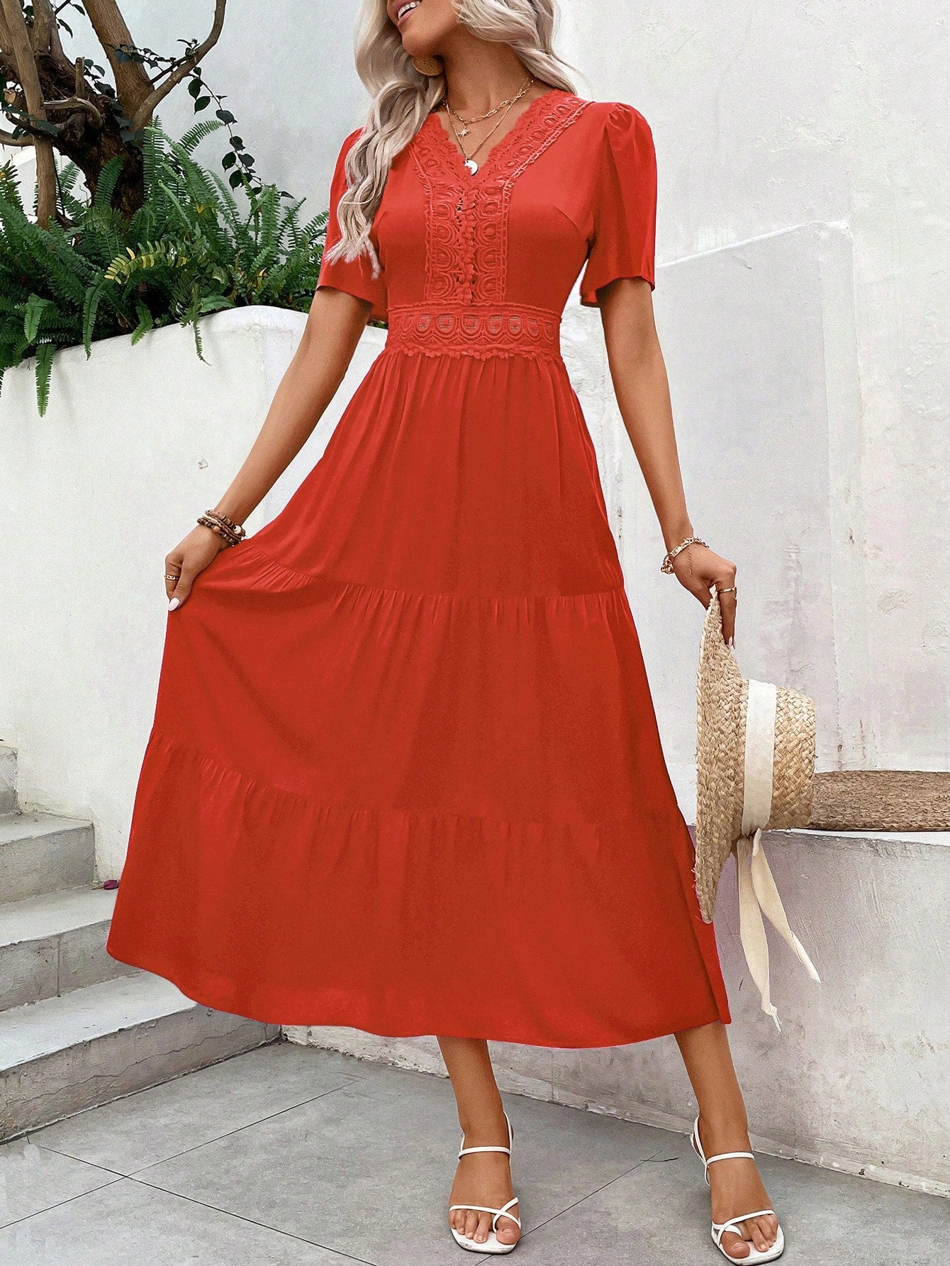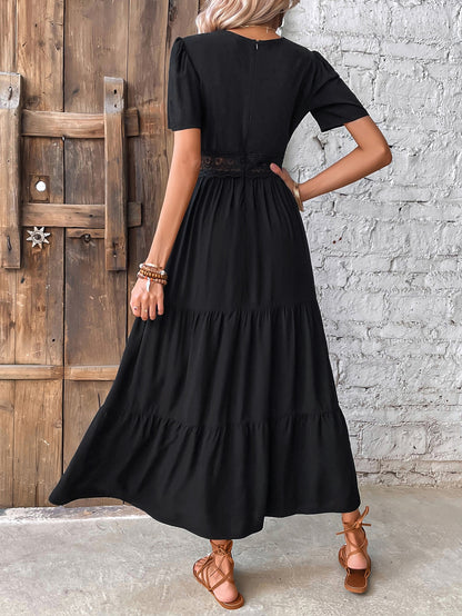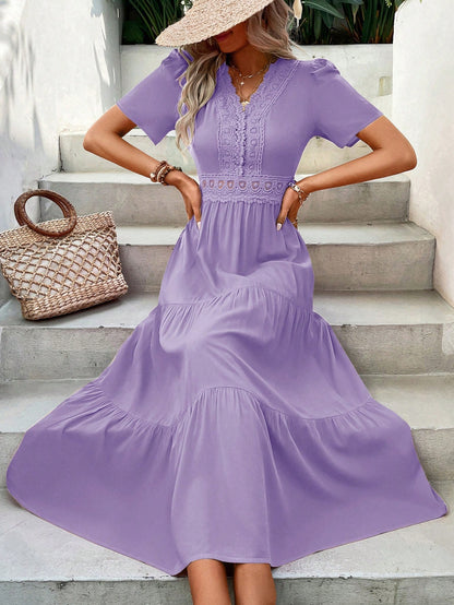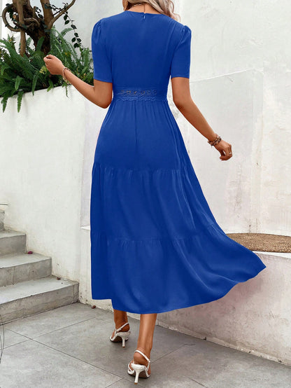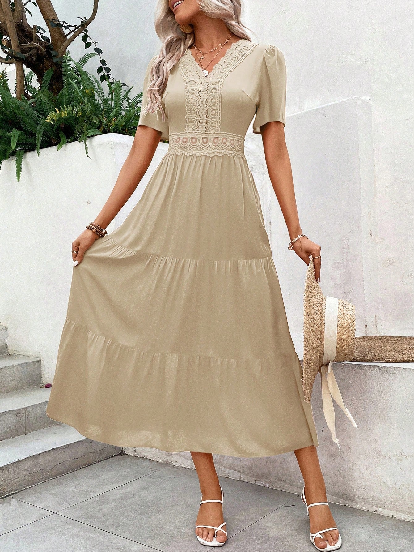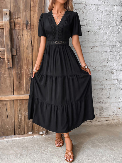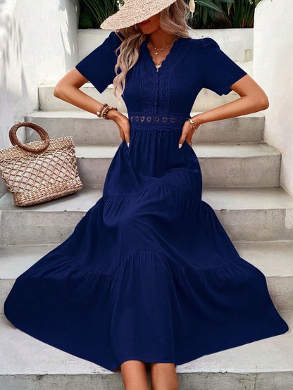 VCAY Guipure Lace Insert Ruffle Hem Dress