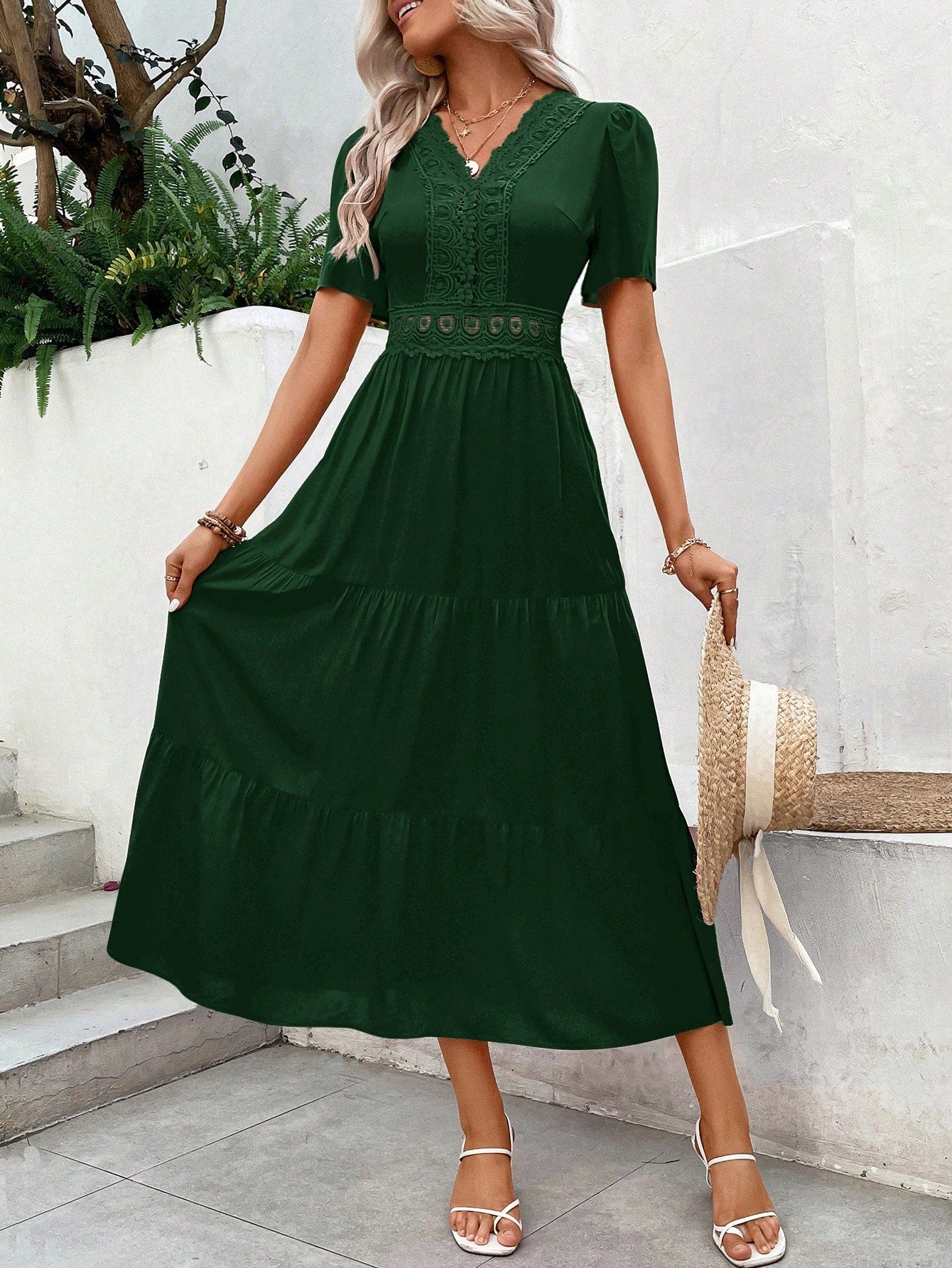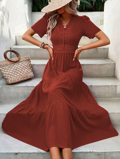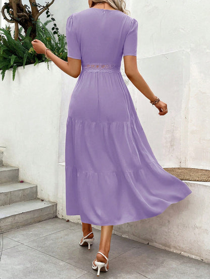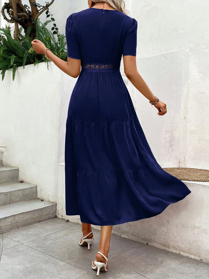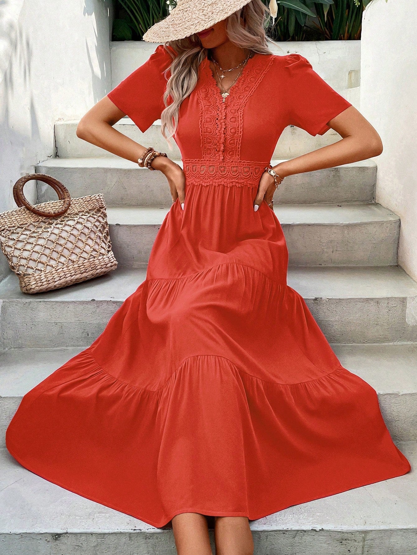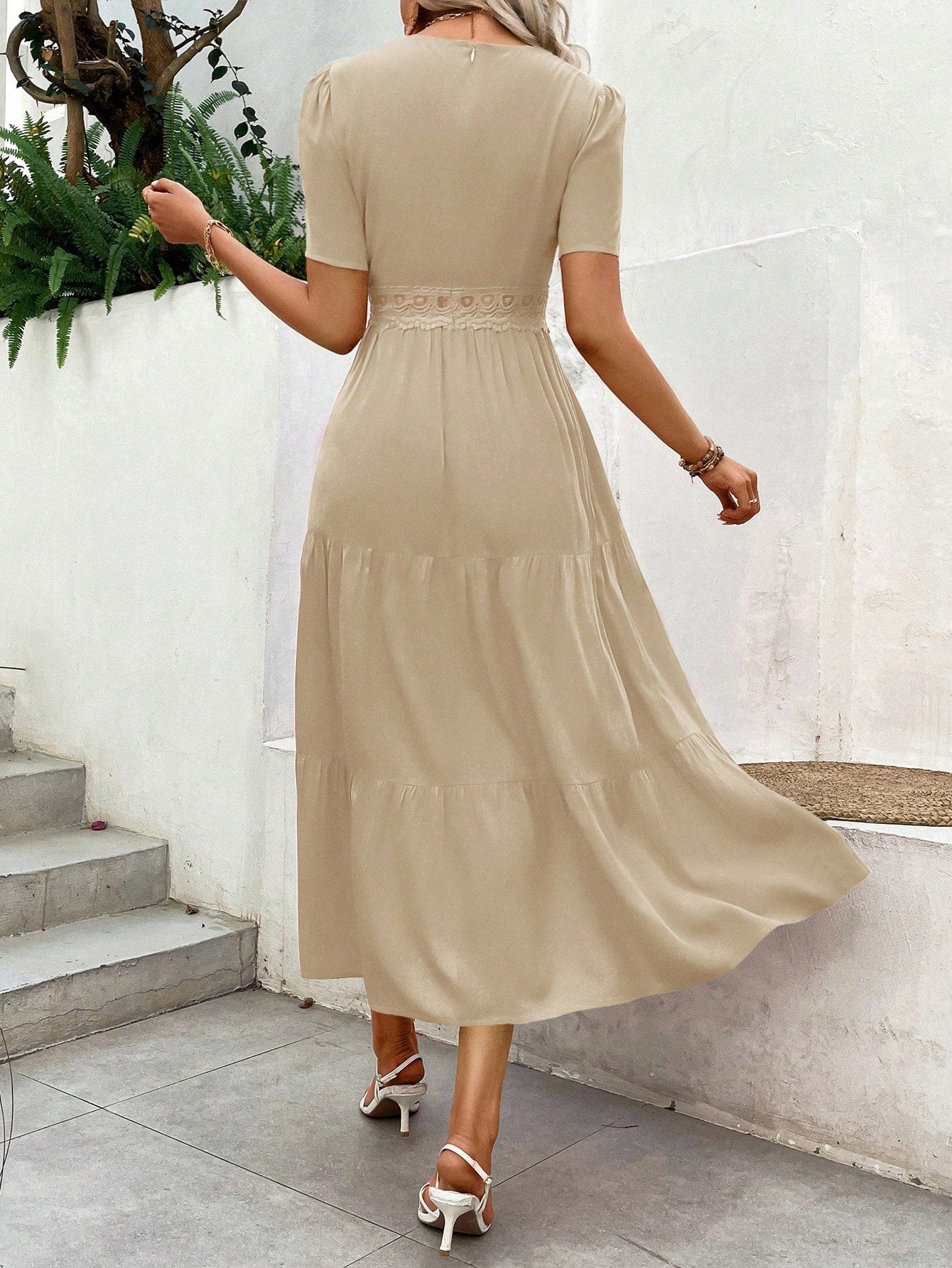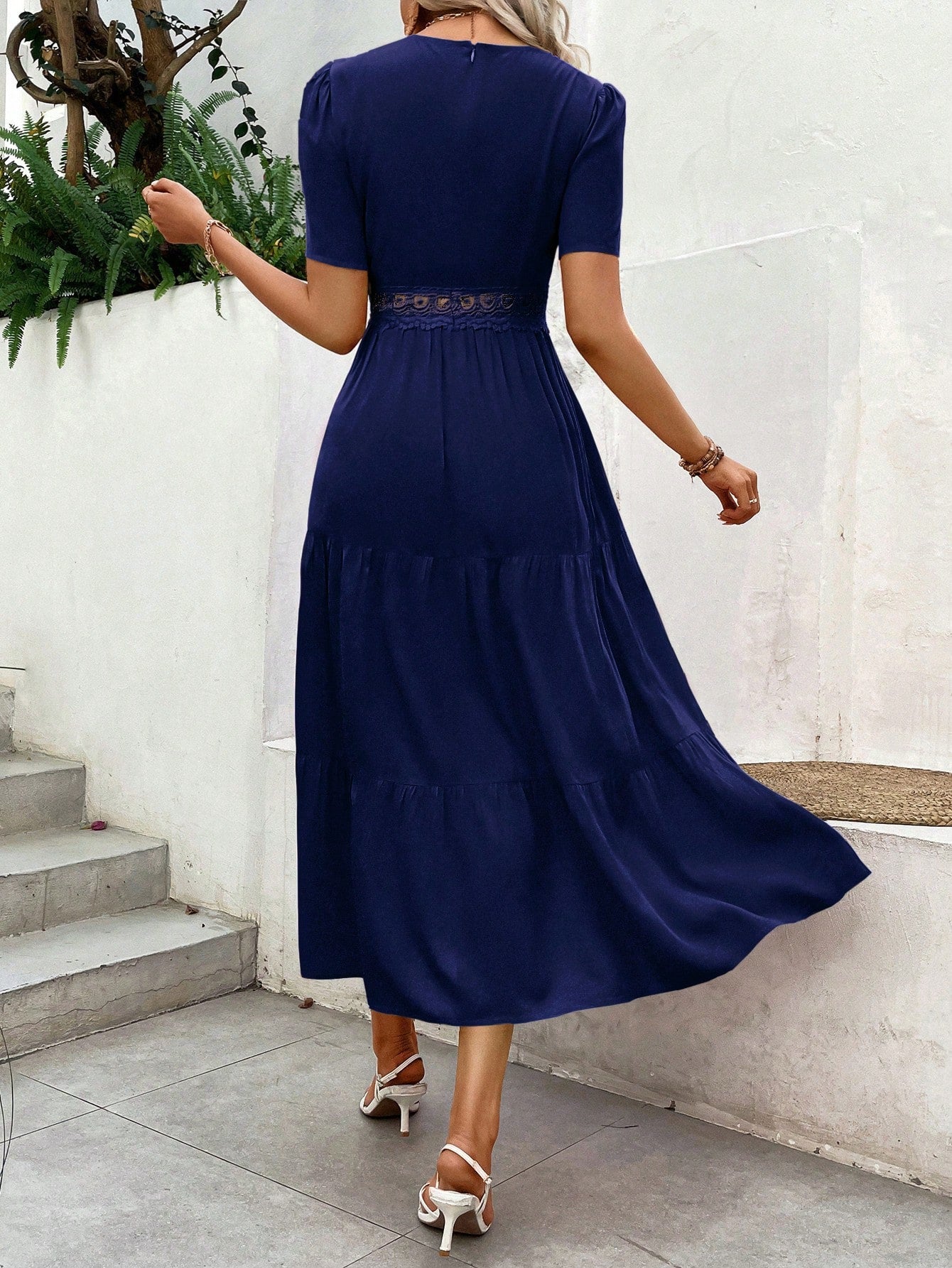 VCAY Guipure Lace Insert Ruffle Hem Dress