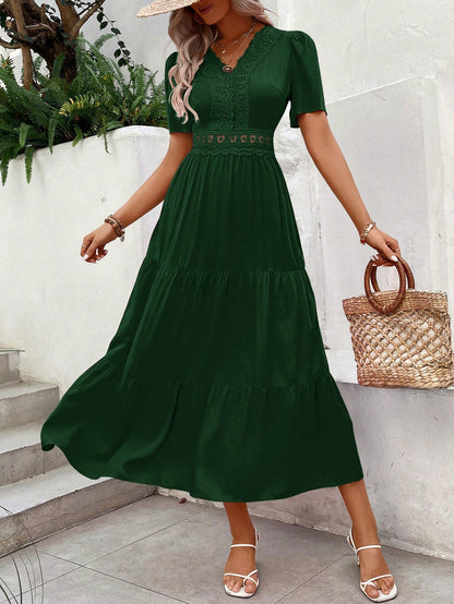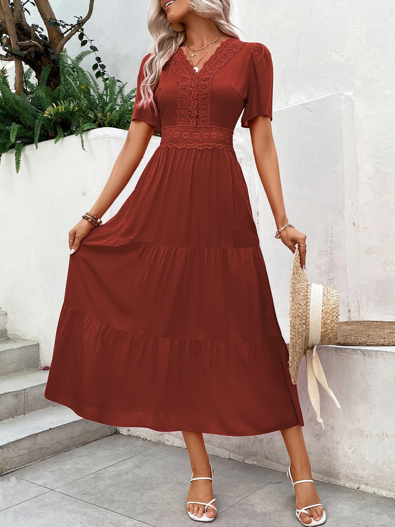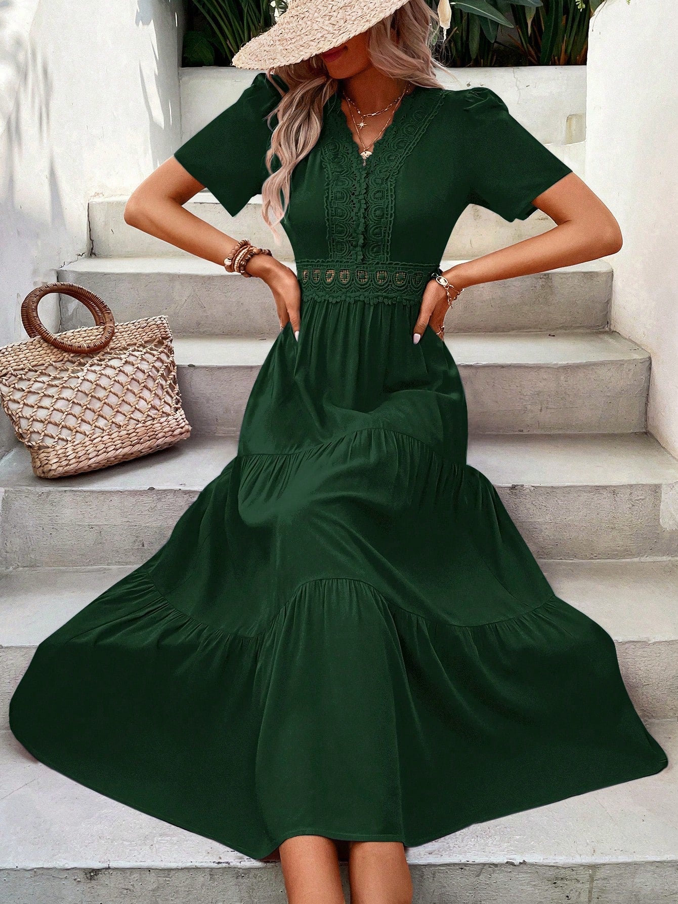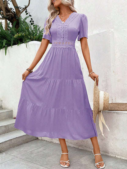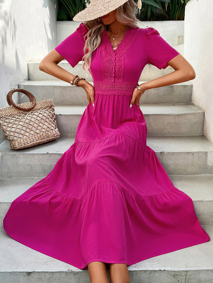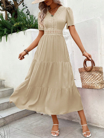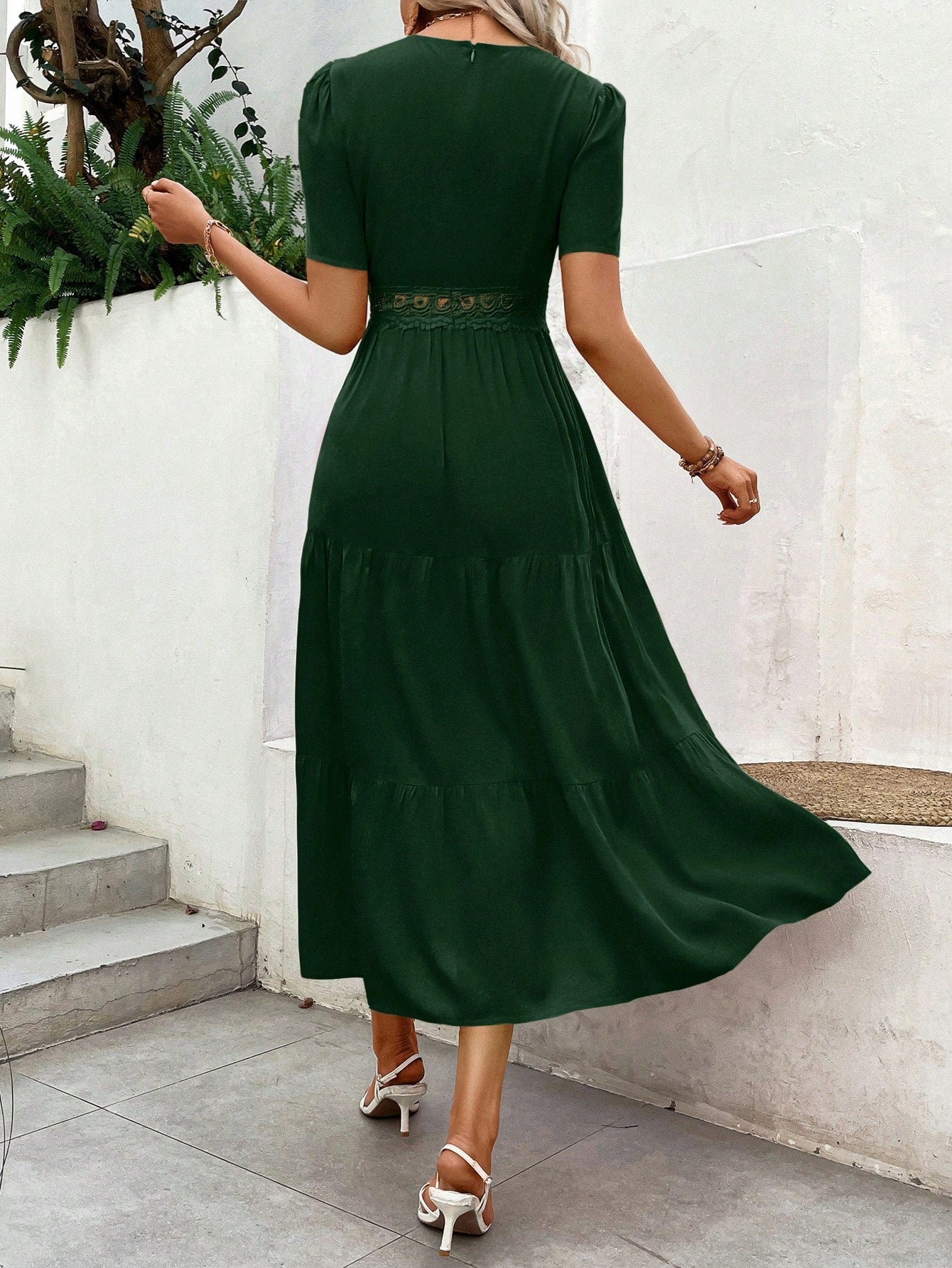 VCAY Guipure Lace Insert Ruffle Hem Dress