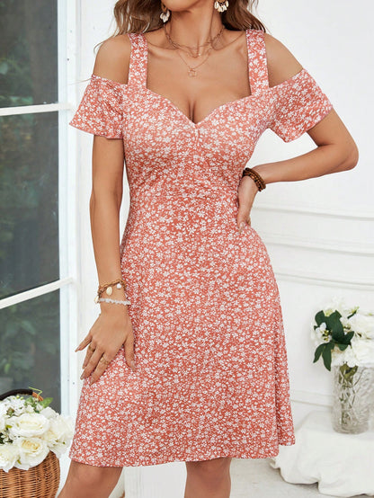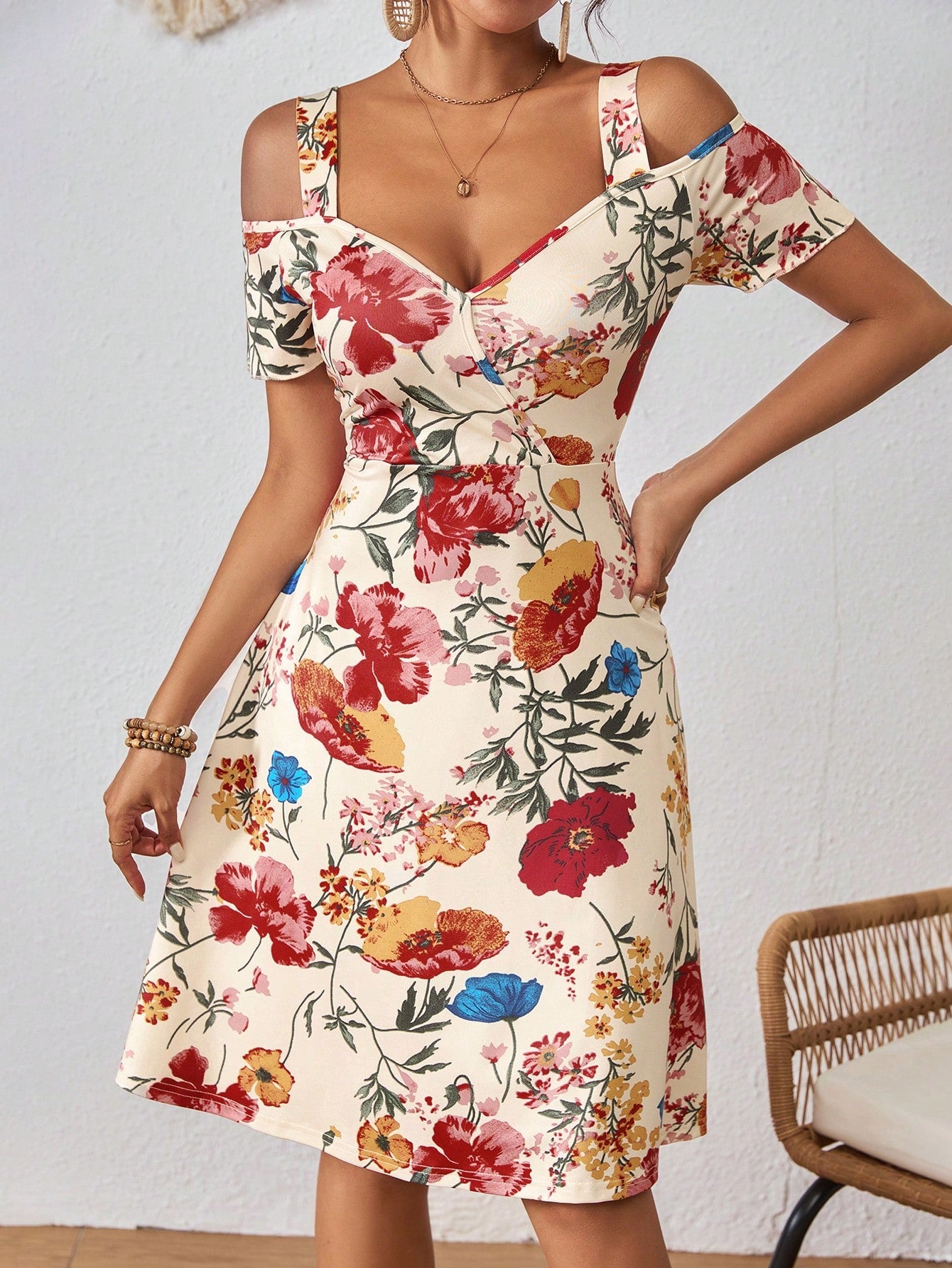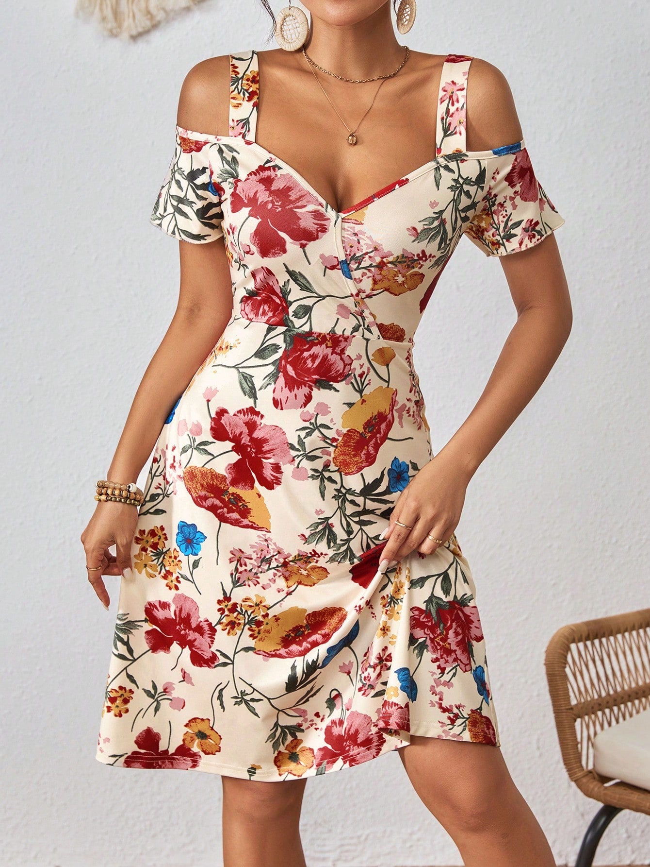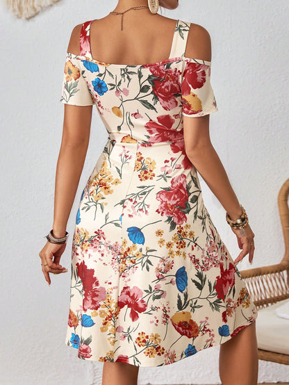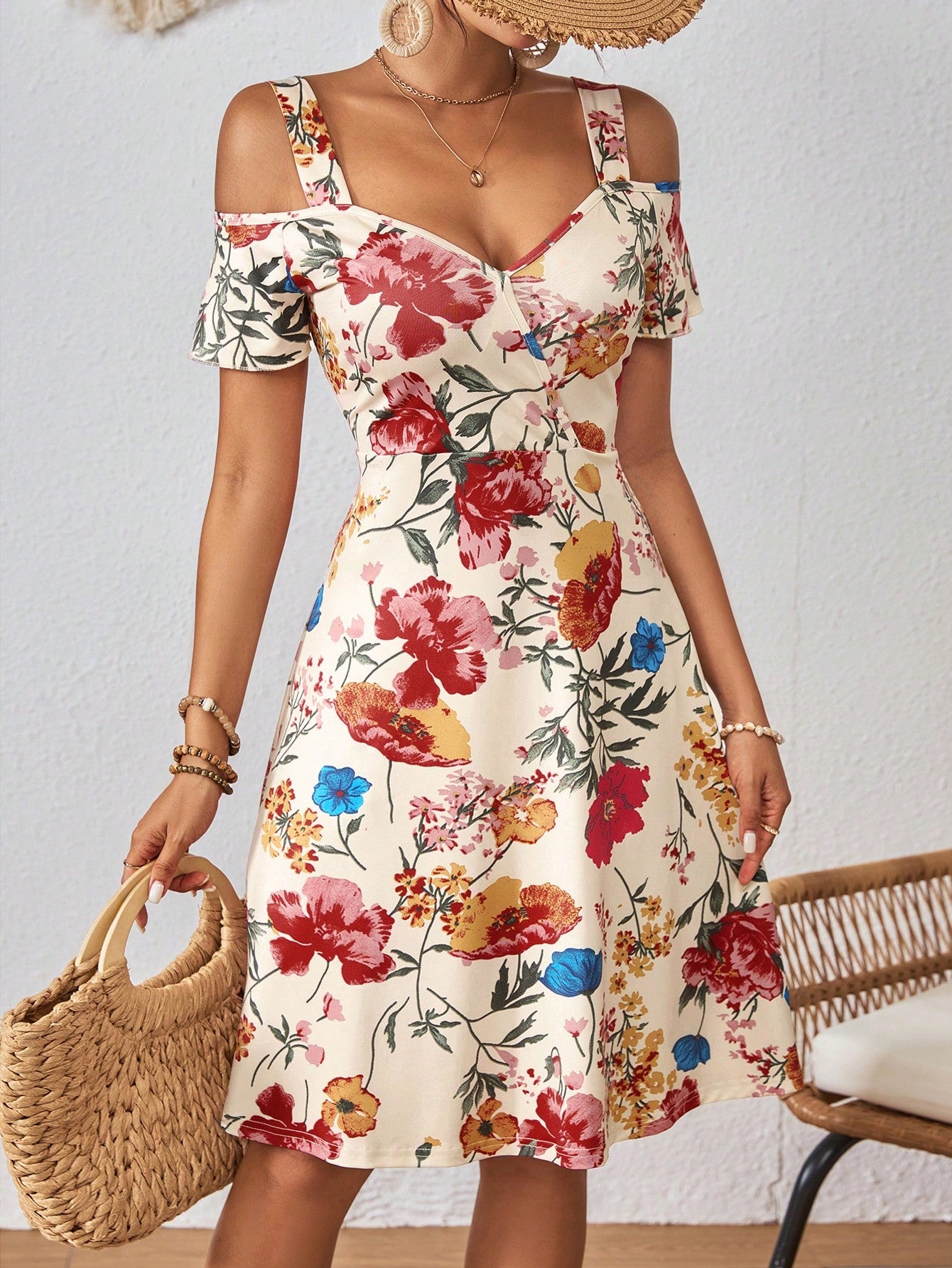 VCAY Women's Romantic V-Neck Hollow Out Wide Strap A-Line Swing Vacation Cami Dress, Summer