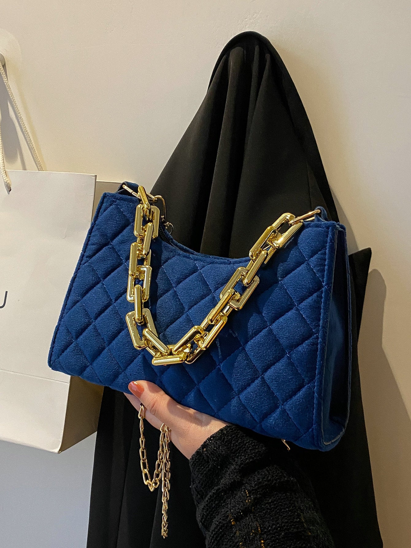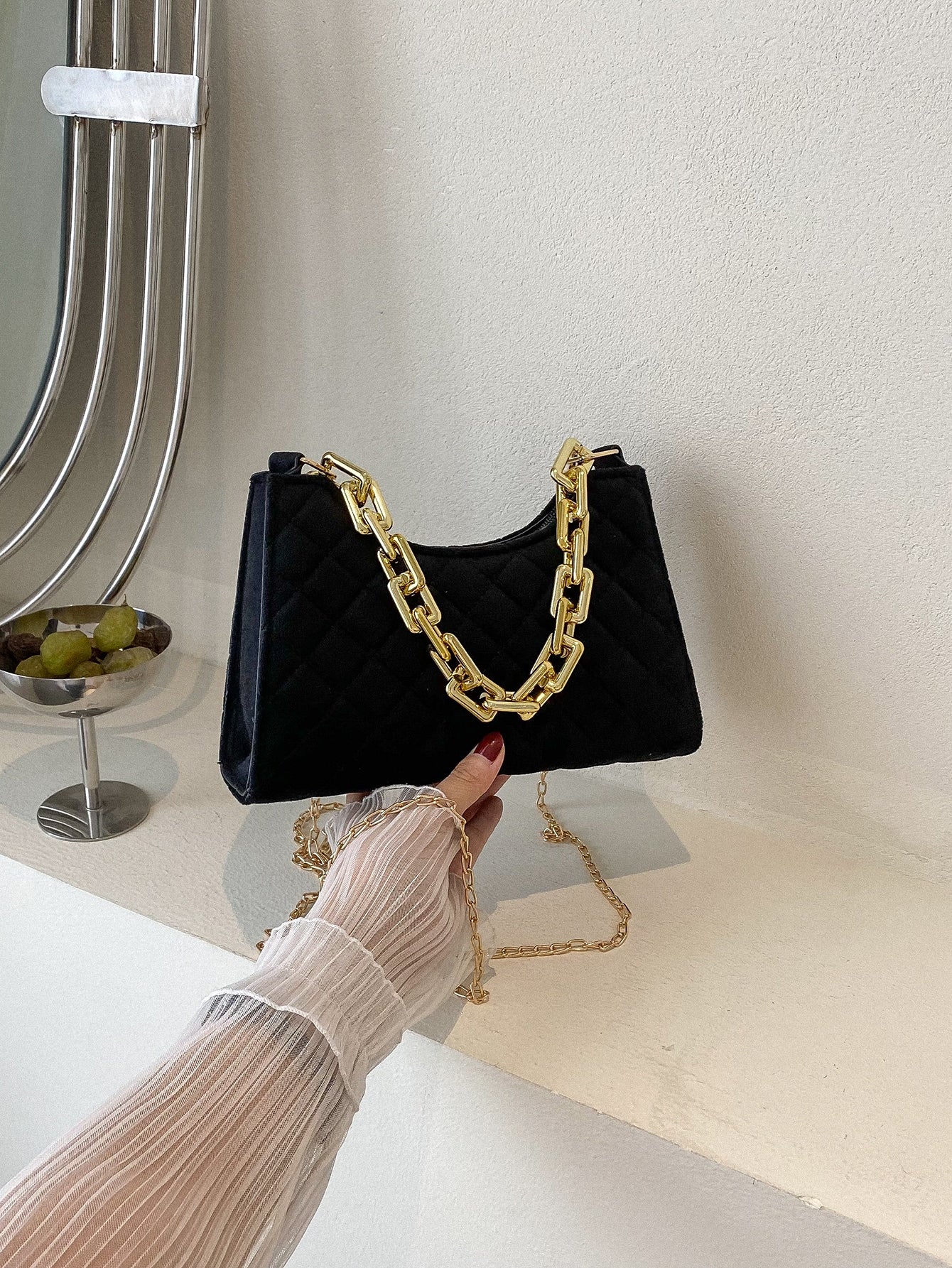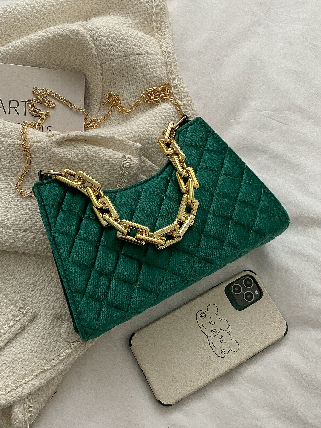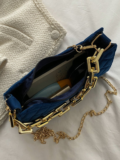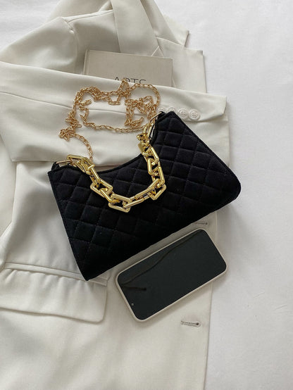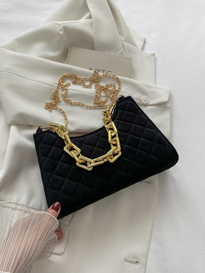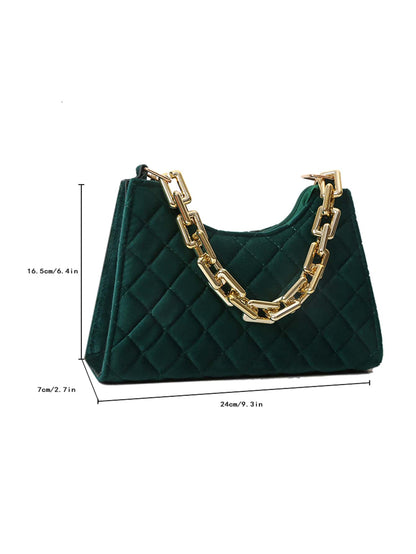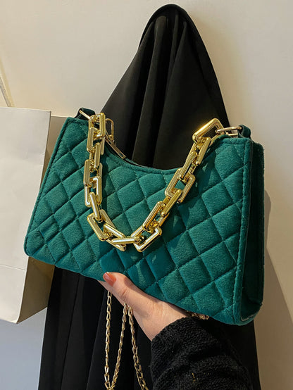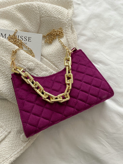 Velvet Quilted Chain Baguette Bag