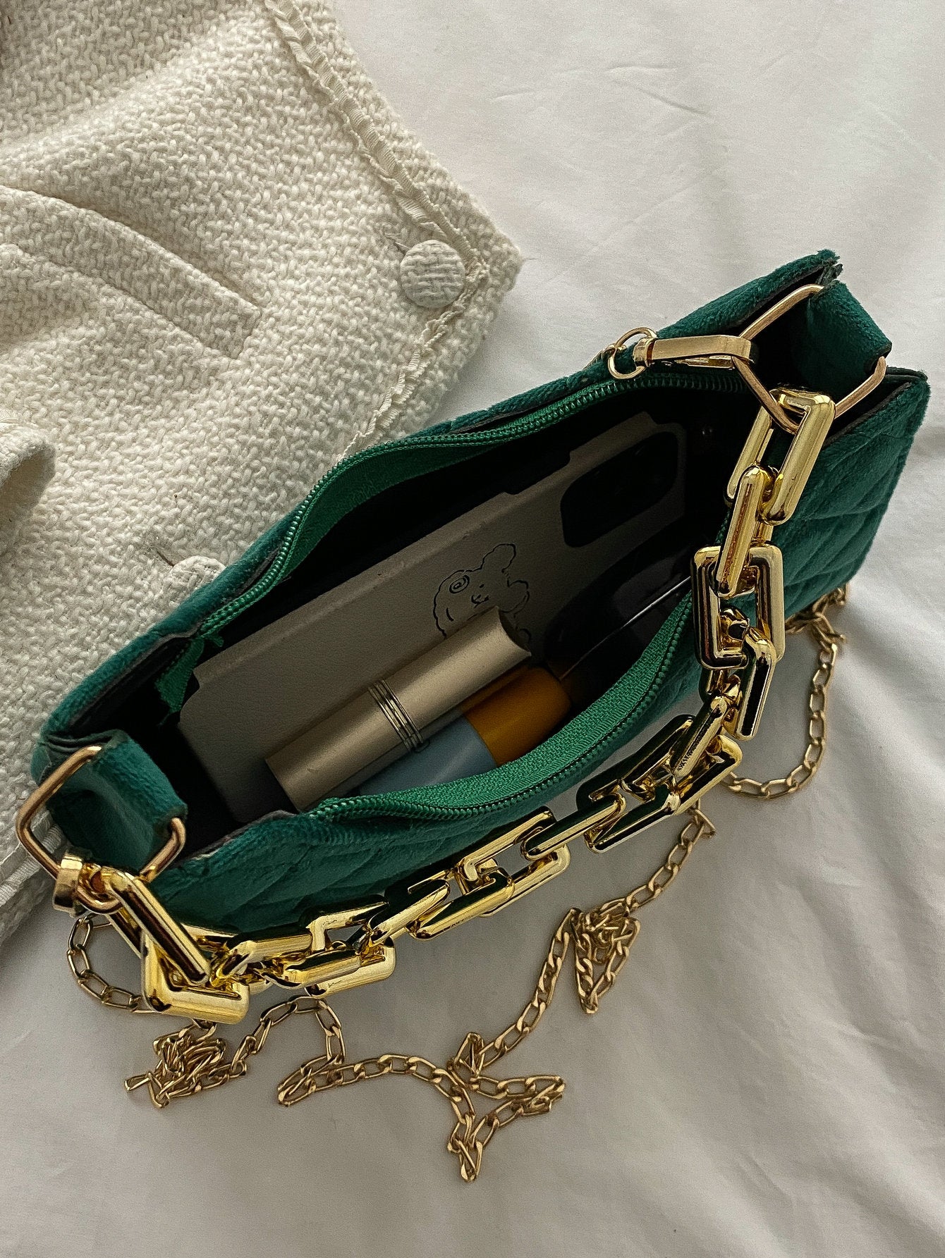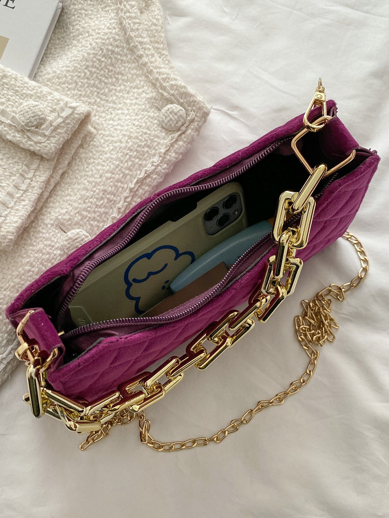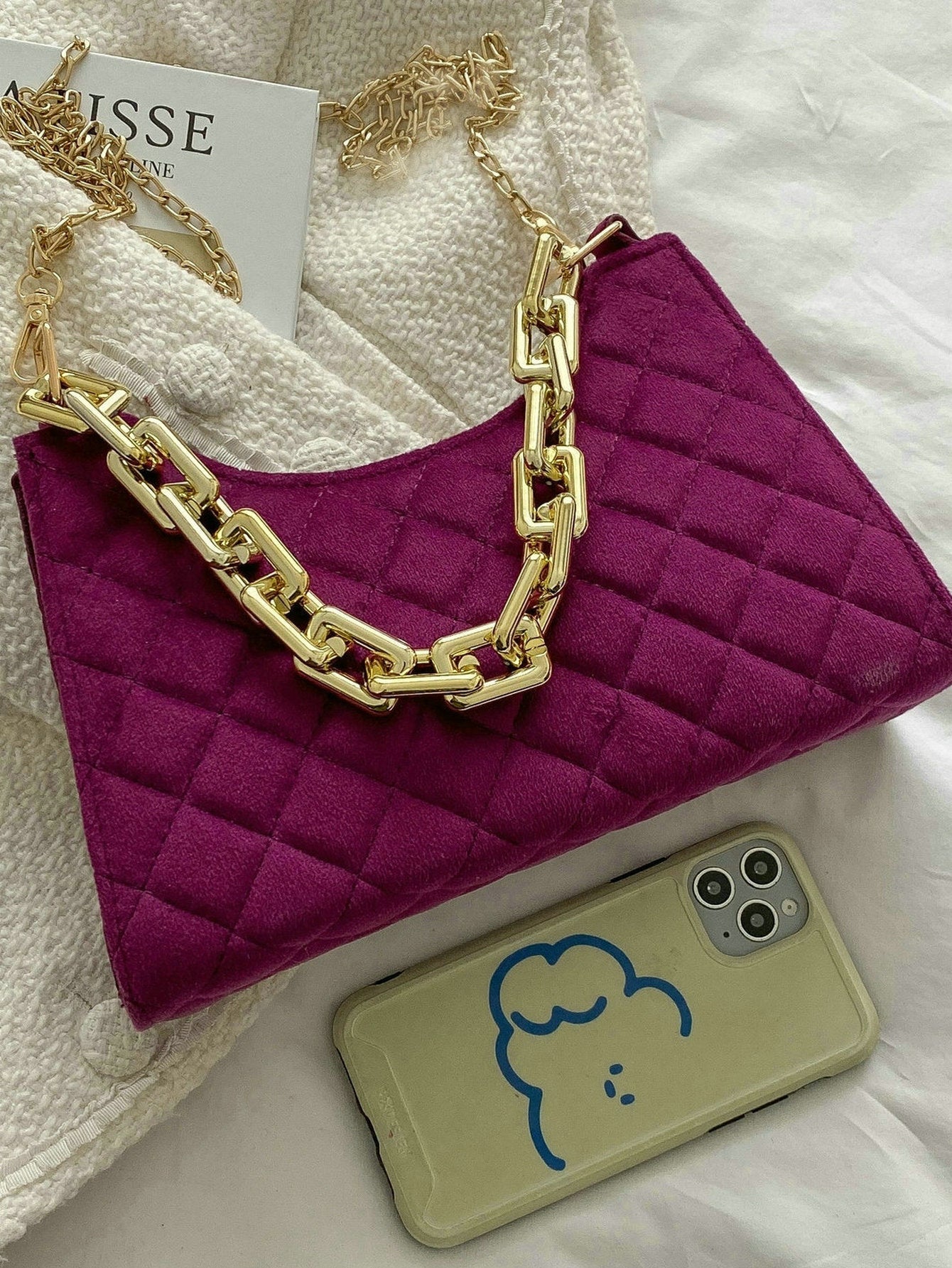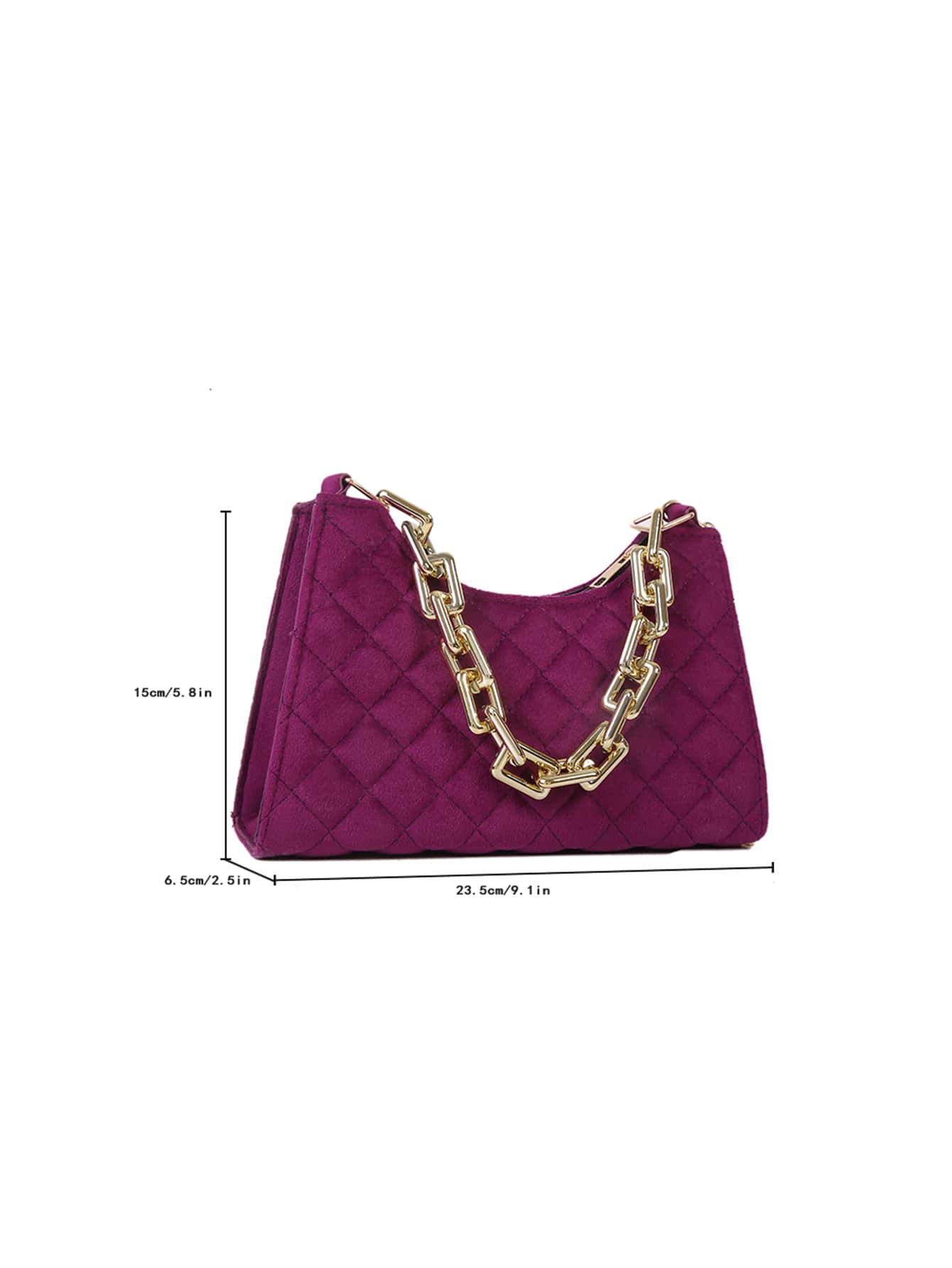 Velvet Quilted Chain Baguette Bag