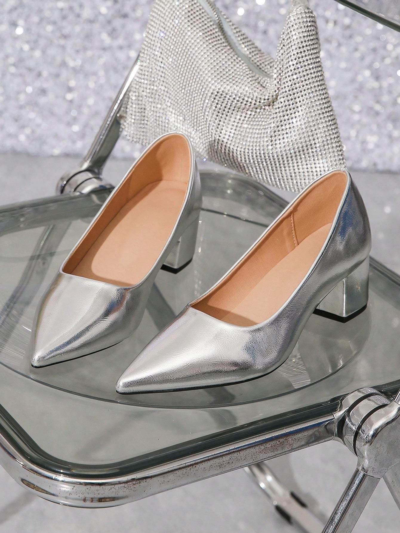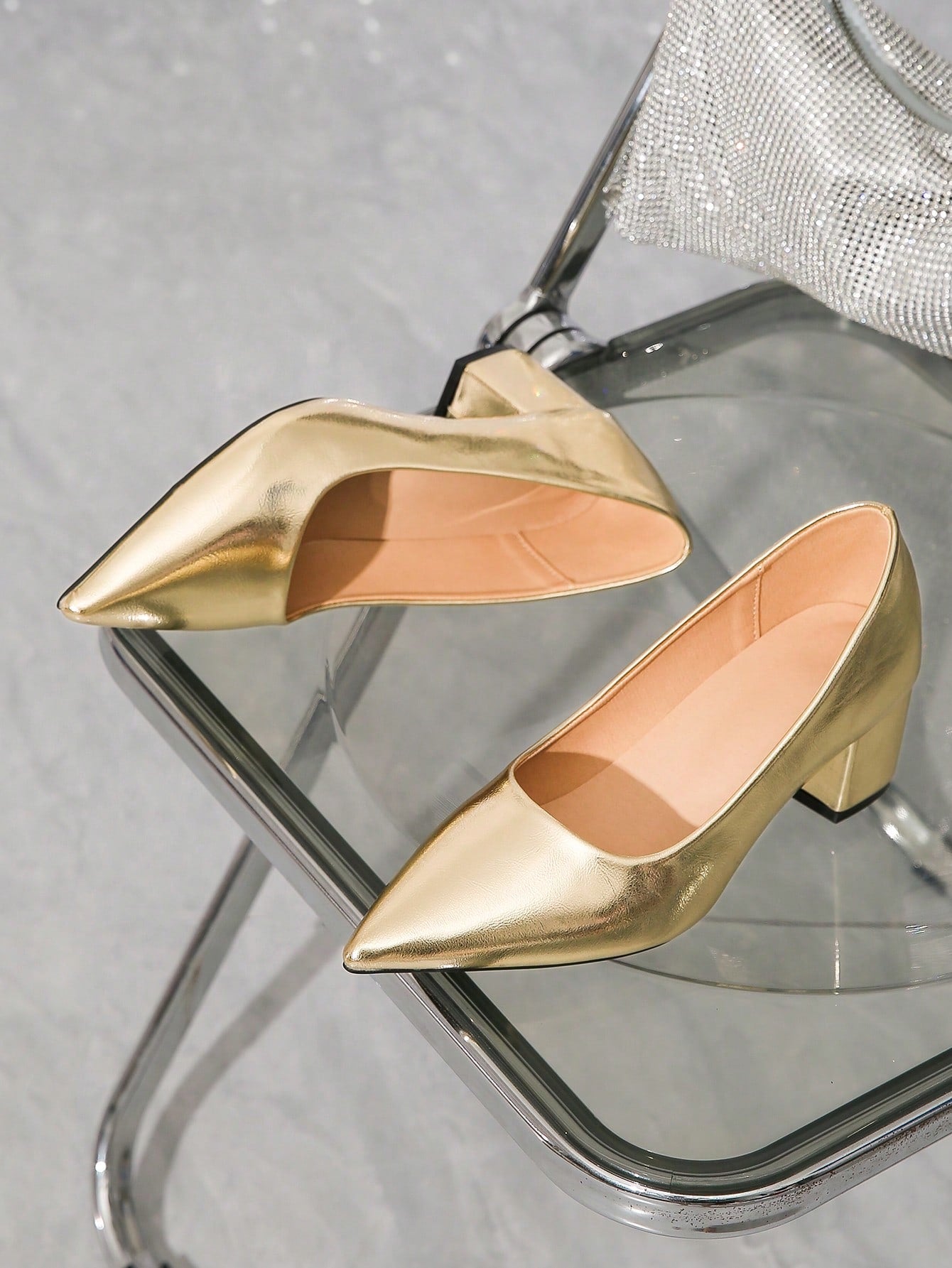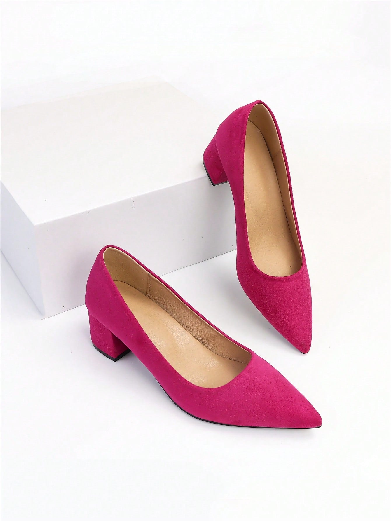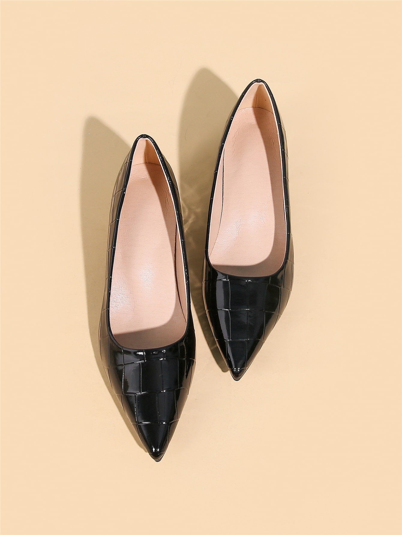 Women Black Crocodile Embossed Pumps, Chunky Heeled Court Pumps