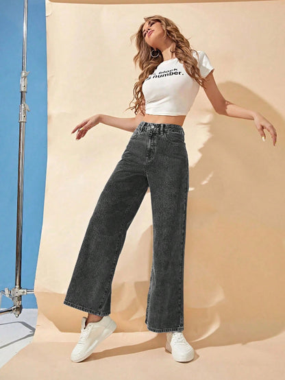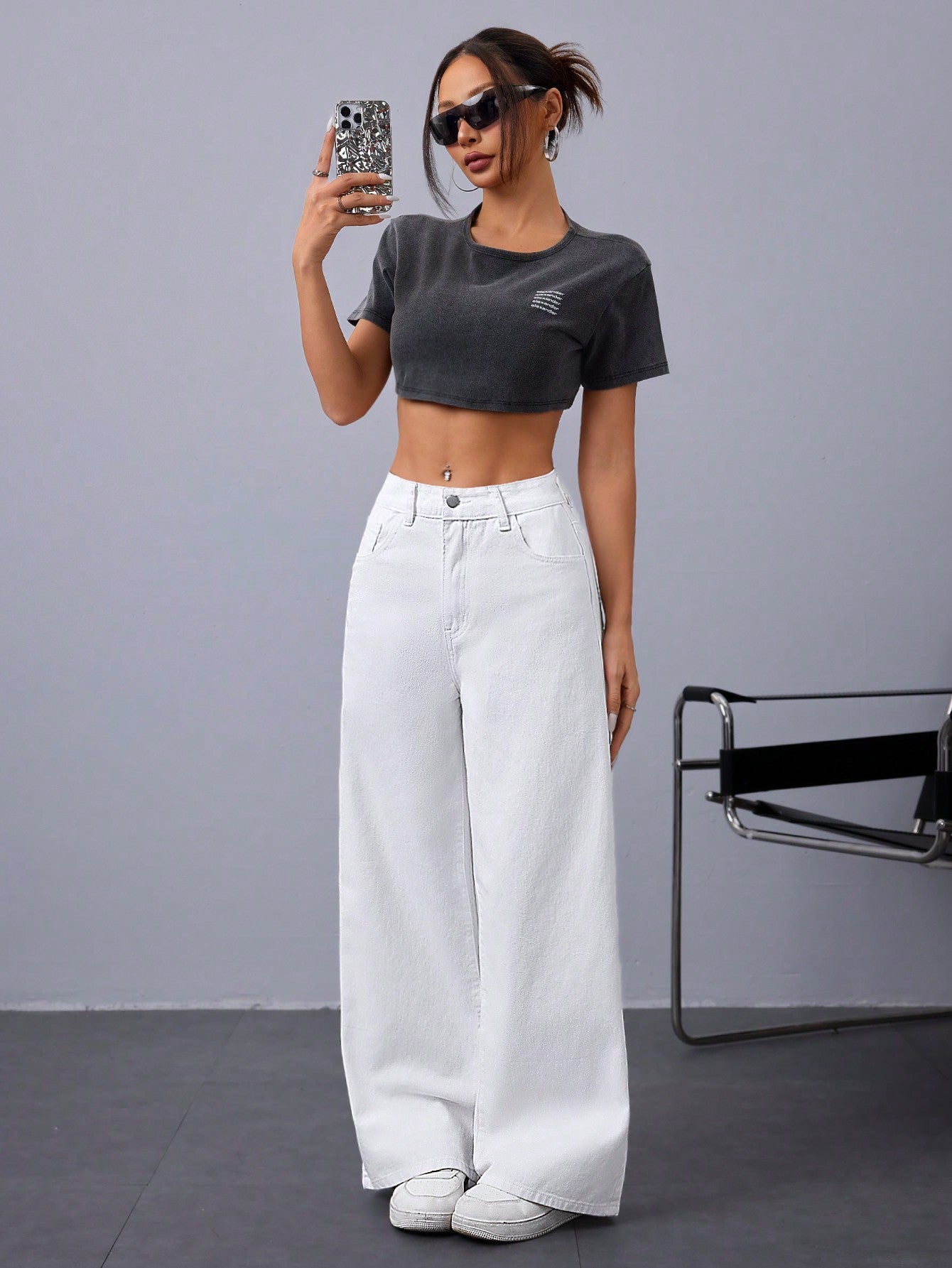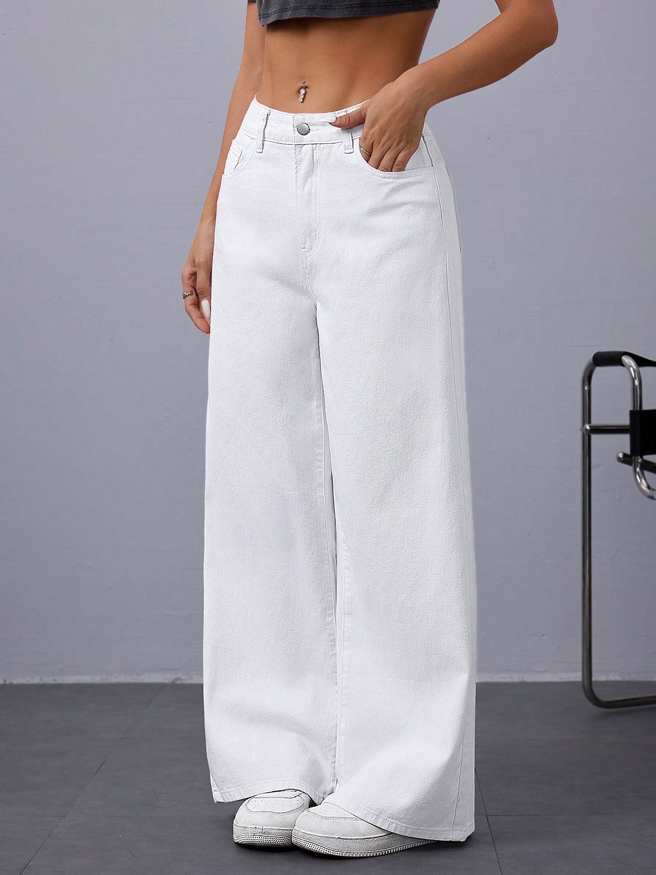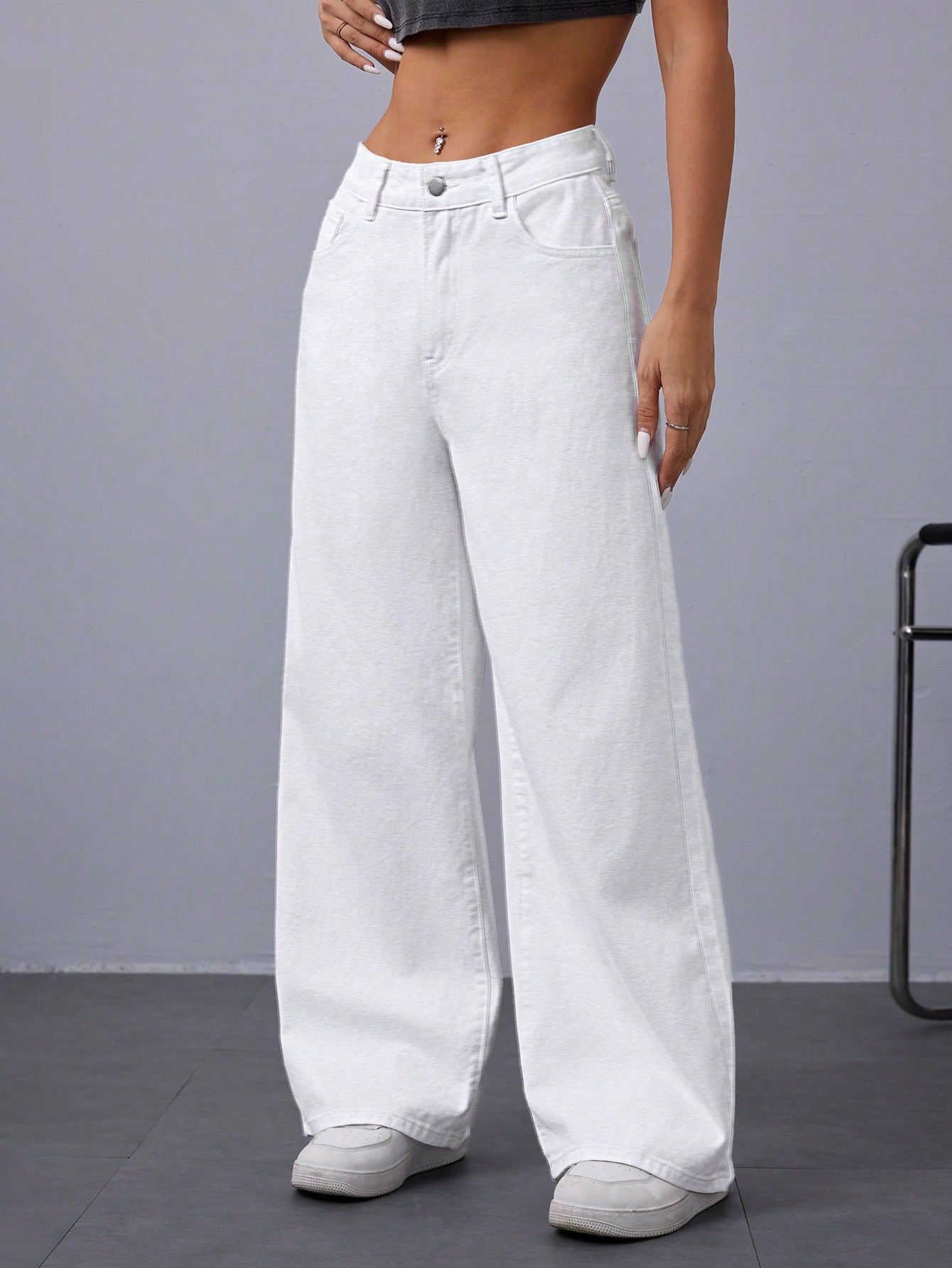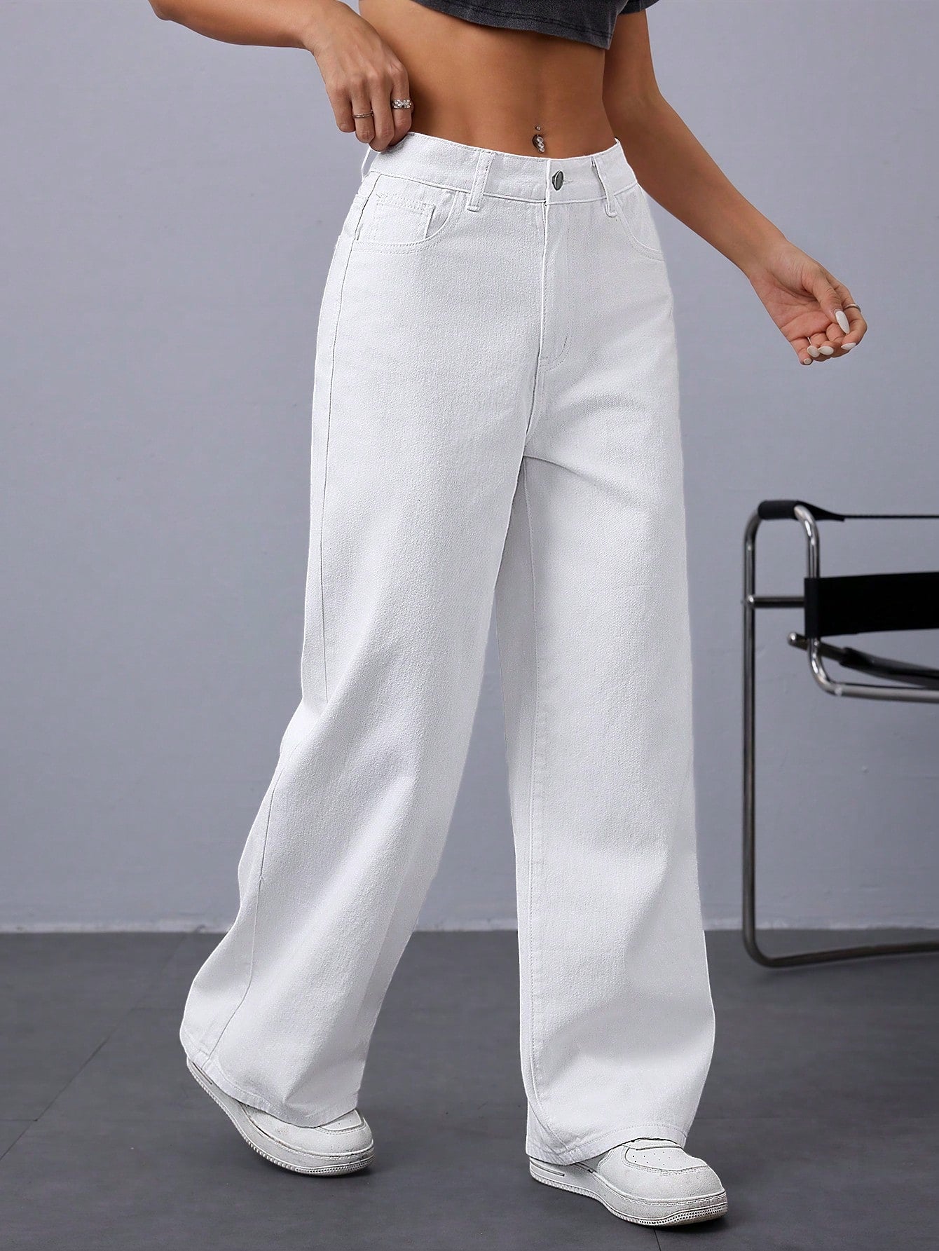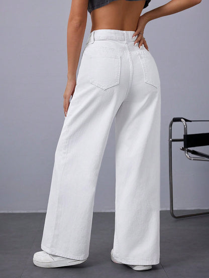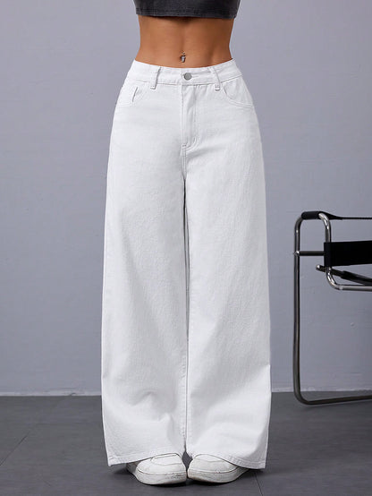 Women Casual Solid Color Loose Wide-Leg Denim Pants